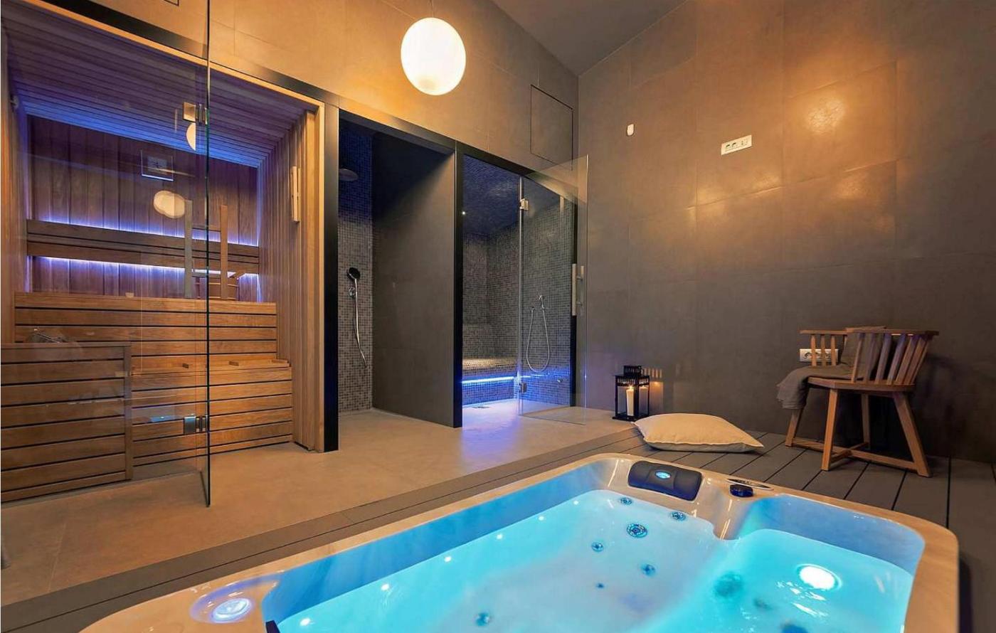 Four-Bedroom Holiday Home. This luxurious holiday home provides a private pool, a hot tub and a sauna. Boasting a private entrance, this spacious holiday home also includes 4 separate bedrooms and 4 bathrooms with a shower and a hairdryer. Guests will find a stovetop, a refrigerator, a dishwasher and kitchenware in the kitchen. The holiday home also features a barbecue. The holiday home offers air conditioning, a washing machine, a tea and coffee maker, a dining area and a TV. The unit has 5 beds.