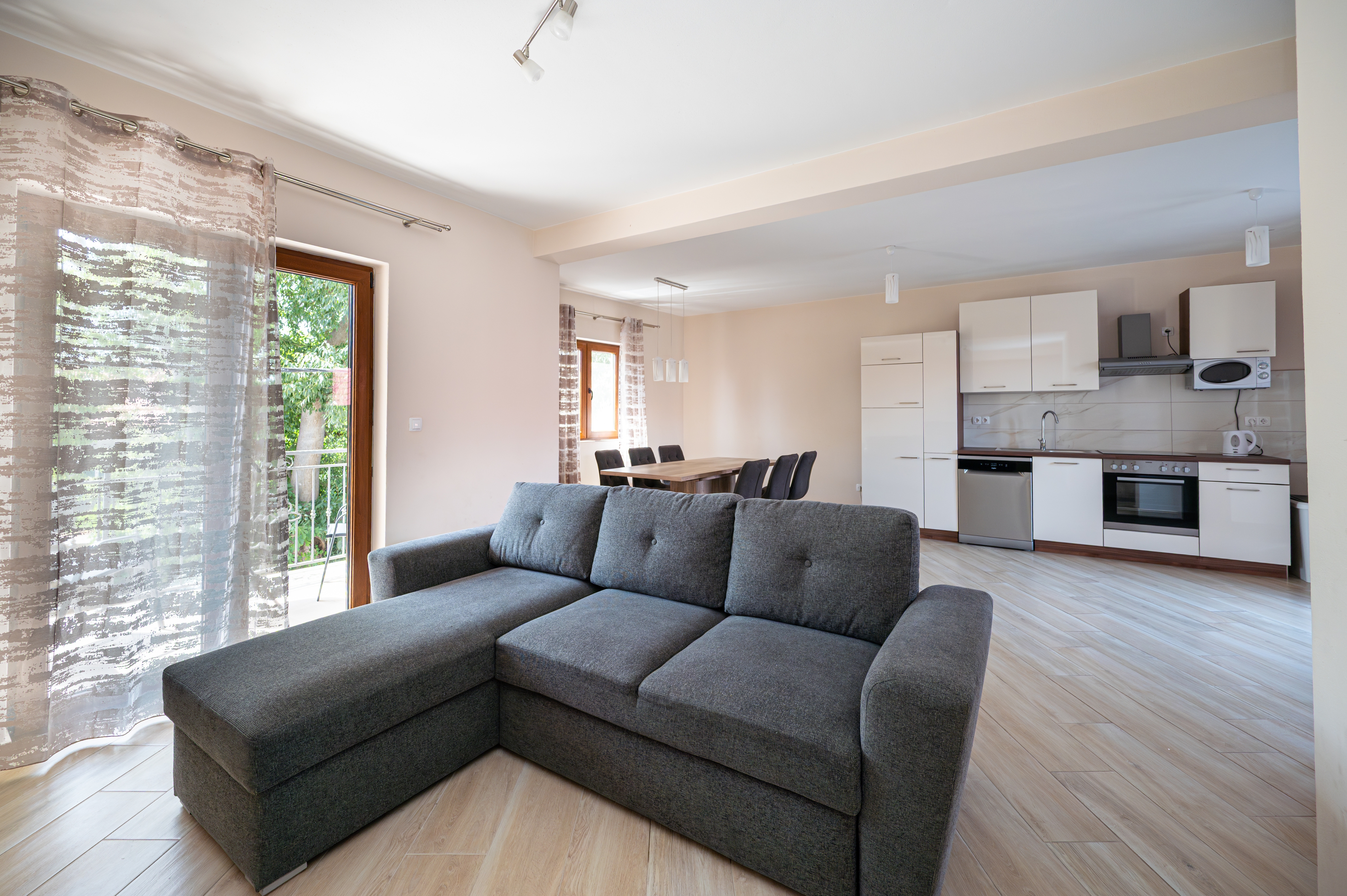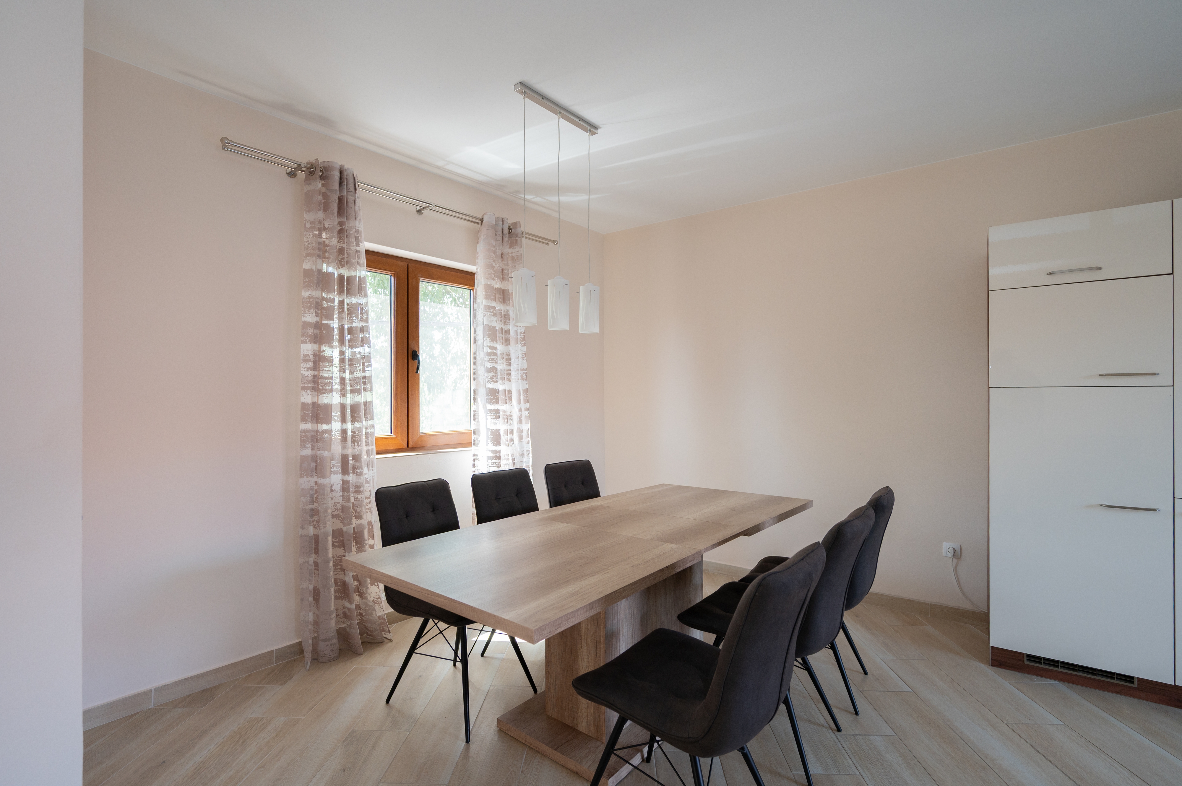 House can accommodate 10 guests. Beds are situated in 4 sleeping rooms, but also in the living room, within 119m2. Guests can use a private terrace to enjoy the warm summer evenings. The house offers the sea view. INCLUDED IN THE PRICE: tourist tax, final cleaning, air-conditioning, central heating, parking, internet. The availability of additional services for your chosen dates of stay, as well as their prices (if none are listed) must be checked ahead of time. Any additional services not shown in the price calculation are payable directly to the property owner and only if used by the visitor.