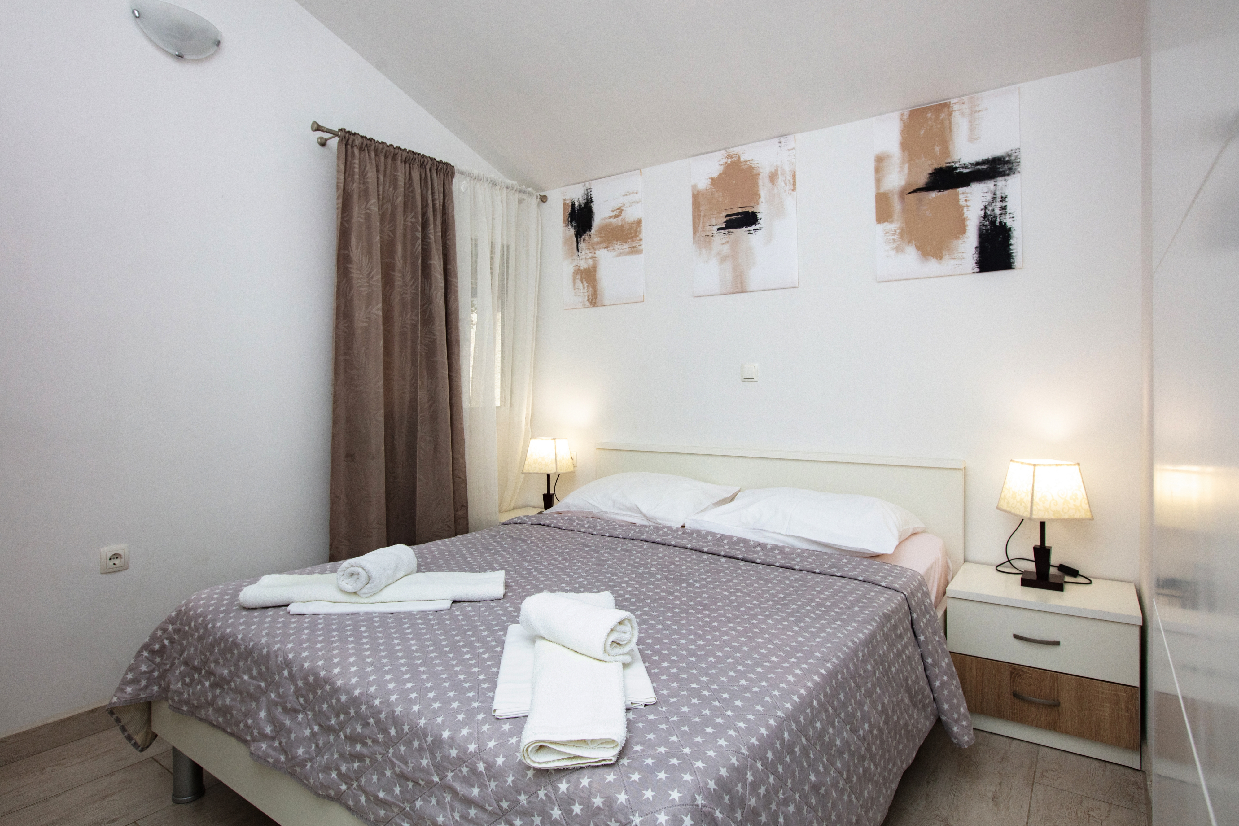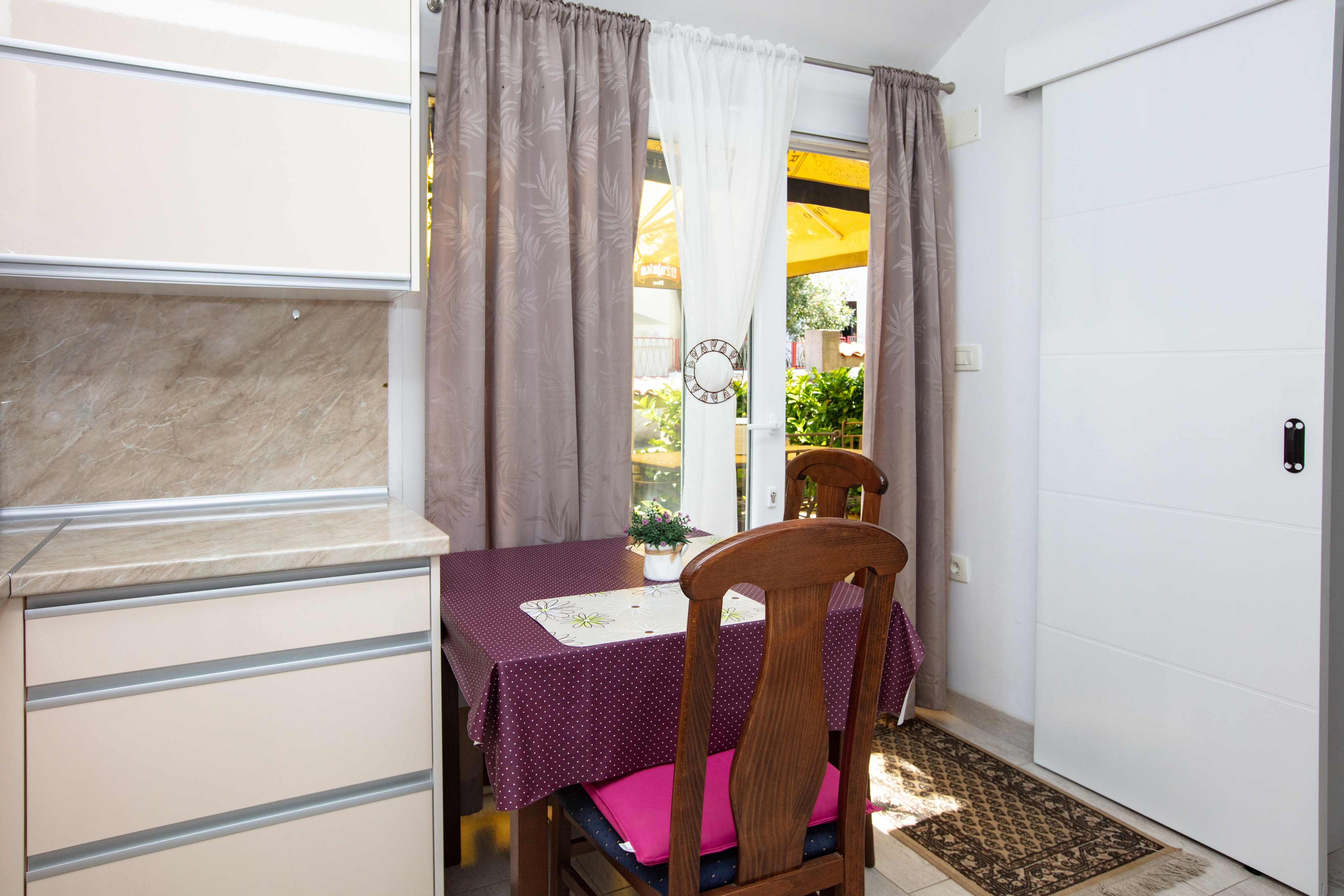 Apartment can accommodate 2 guests. Beds are situated in 1 sleeping rooms, within 35m2. Guests can use a private terrace to enjoy the warm summer evenings. Food can be prepared using barbecue which is shared with other guests too. INCLUDED IN THE PRICE: tourist tax, final cleaning, air-conditioning, parking, internet. OPTIONAL ADDITIONAL COSTS: breakfast (€17.00, a 50% discount for children aged 4 to 12 years, Children up to age 4 free of charge), half-board (€36.00, a 50% discount for children aged 4 to 12 years, Children up to age 4 free of charge). The availability of additional services for your chosen dates of stay, as well as their prices (if none are listed) must be checked ahead of time. Any additional services not shown in the price calculation are payable directly to the property owner and only if used by the visitor.