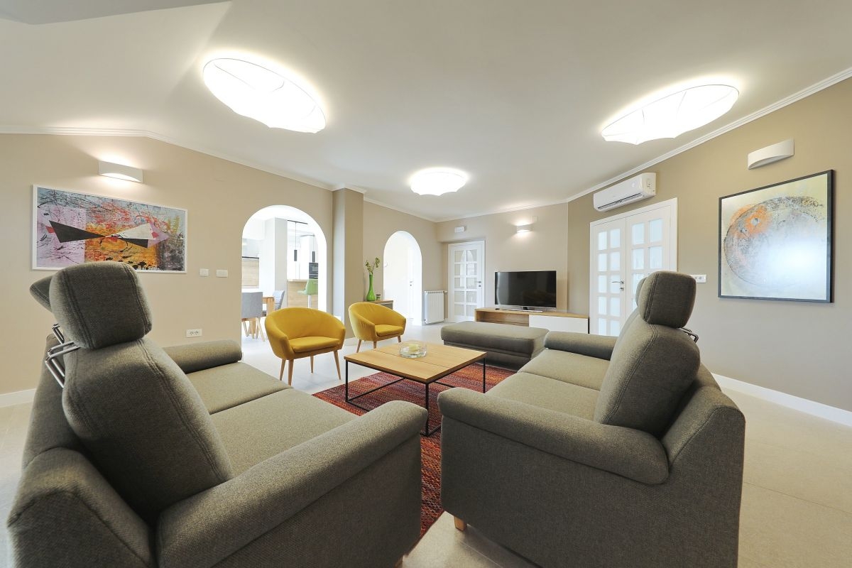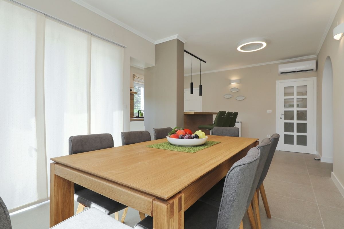 House can accommodate 12 guests. Beds are situated in 6 sleeping rooms, within 221m2. Guests can use a private terrace to enjoy the warm summer evenings. For full enjoyment and relaxation there is a private barbecue for this accommodation guests only. During stay, there is a private pool for relaxation and pleasure. Notthe rooms of the booked accommodation unit are connectedone whole. INCLUDED IN THE PRICE: tourist tax, final cleaning, air-conditioning, central heating, pool, parking, internet, baby cot, iron, ironing board, hairdryer. OBLIGATORY ADDITIONAL COSTS: short stay fee (surcharge depending on a number of booked nights: 30% - 1, 20% - 2, 10% - 3). The availability of additional services for your chosen dates of stay, as well as their prices (if none are listed) must be checked ahead of time. Any additional services not shown in the price calculation are payable directly to the property owner and only if used by the visitor. Discounts to the base price: free day 14=13 (for reservations of 14 or more days you get one free day for the stay until 31122026).