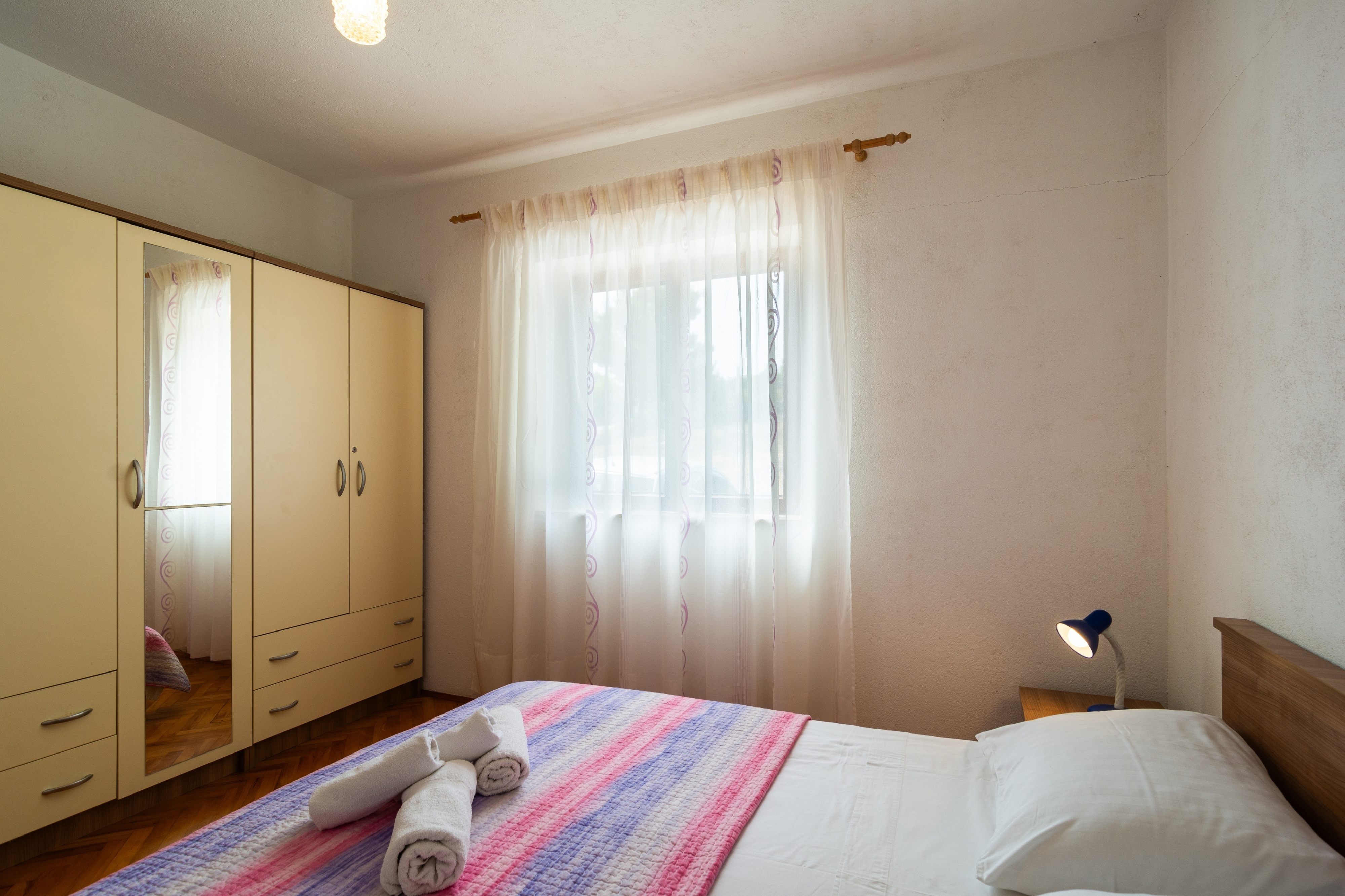 Apartment can accommodate 8 guests. Beds are situated in 3 sleeping rooms, but also in the living room, within 93m2. Guests can use a private terrace to enjoy the warm summer evenings. The apartment offers the sea view. Food can be prepared using barbecue which is shared with other guests too. This accommodation unit welcomes pets at an additional charge. INCLUDED IN THE PRICE: tourist tax, final cleaning, air-conditioning, parking, internet, iron, ironing board, portable barbecue. OBLIGATORY ADDITIONAL COSTS: short stay fee (surcharge depending on a number of booked nights: 30% - 1, 20% - 2, 10% - 3). OPTIONAL ADDITIONAL COSTS: pets (€5.00 per night). The availability of additional services for your chosen dates of stay, as well as their prices (if none are listed) must be checked ahead of time. Any additional services not shown in the price calculation are payable directly to the property owner and only if used by the visitor. Discounts to the base price: free day 14=13 (for reservations of 14 or more days you get one free day for the stay until 31122026).