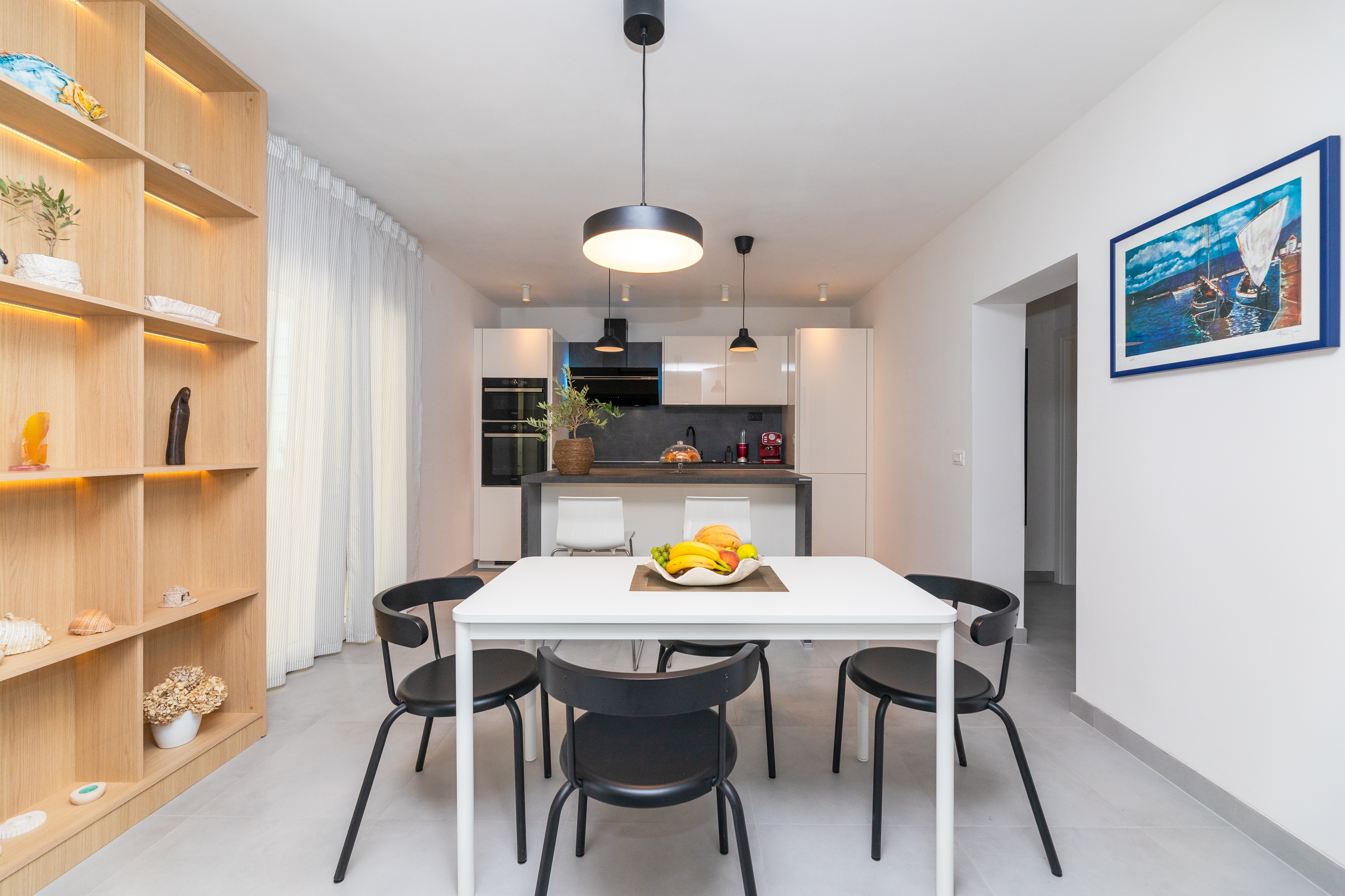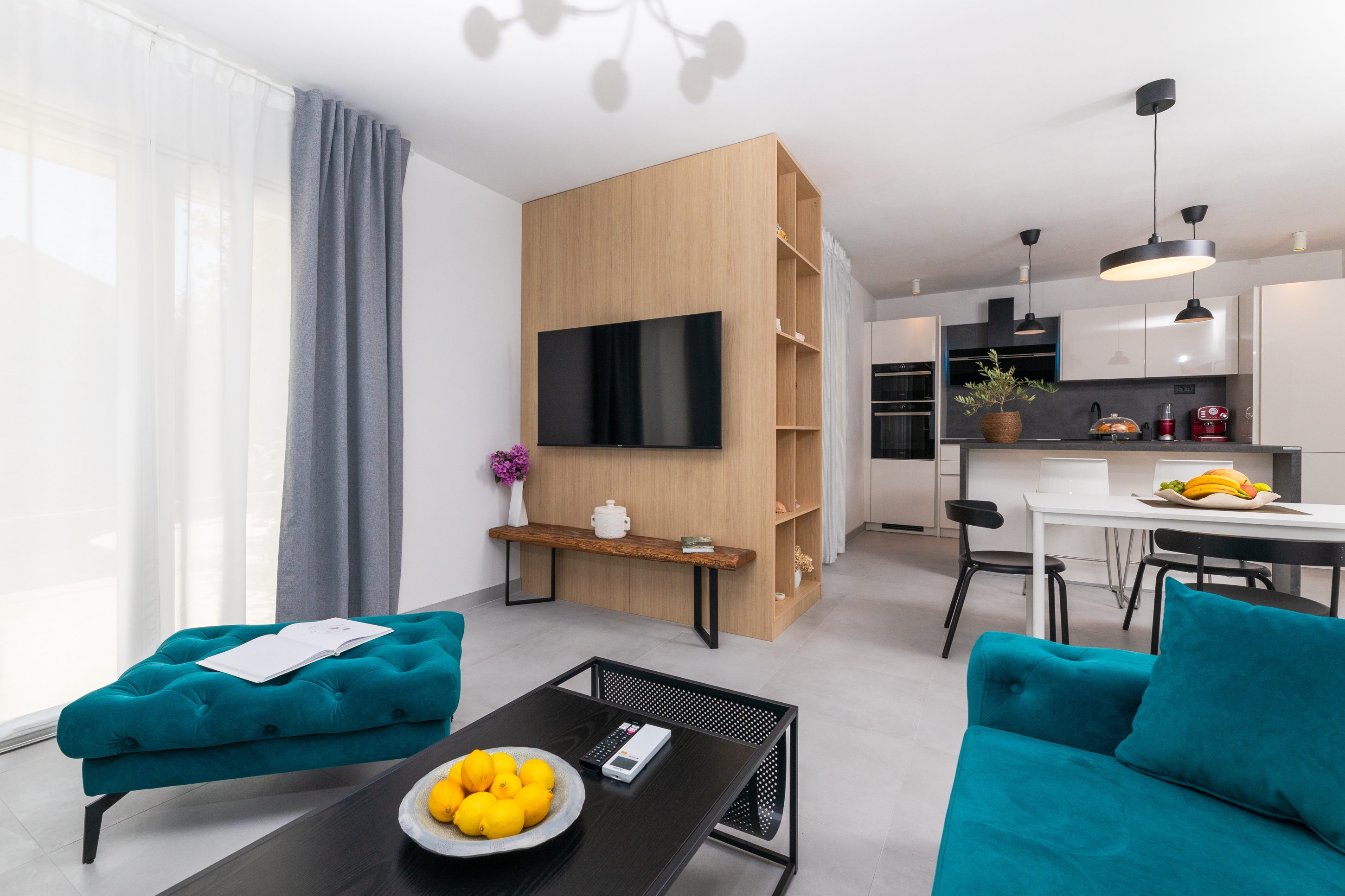 Apartment can accommodate 4 guests. Beds are situated in 2 sleeping rooms, within 71m2. Guests can use a private terrace to enjoy the warm summer evenings. During stay, there is a private pool for relaxation and pleasure. For the booked accommodation unit the deposit is paid directly to the owner upon check-in (deposit amount is displayed on the website) INCLUDED IN THE PRICE: tourist tax, final cleaning, air-conditioning, pool, parking, internet, iron, ironing board, hairdryer. OBLIGATORY ADDITIONAL COSTS: deposit (€200.00 one-time payment). The availability of additional services for your chosen dates of stay, as well as their prices (if none are listed) must be checked ahead of time. Any additional services not shown in the price calculation are payable directly to the property owner and only if used by the visitor. Discounts to the base price: free day 14=13 (for reservations of 14 or more days you get one free day for the stay until 31122026).