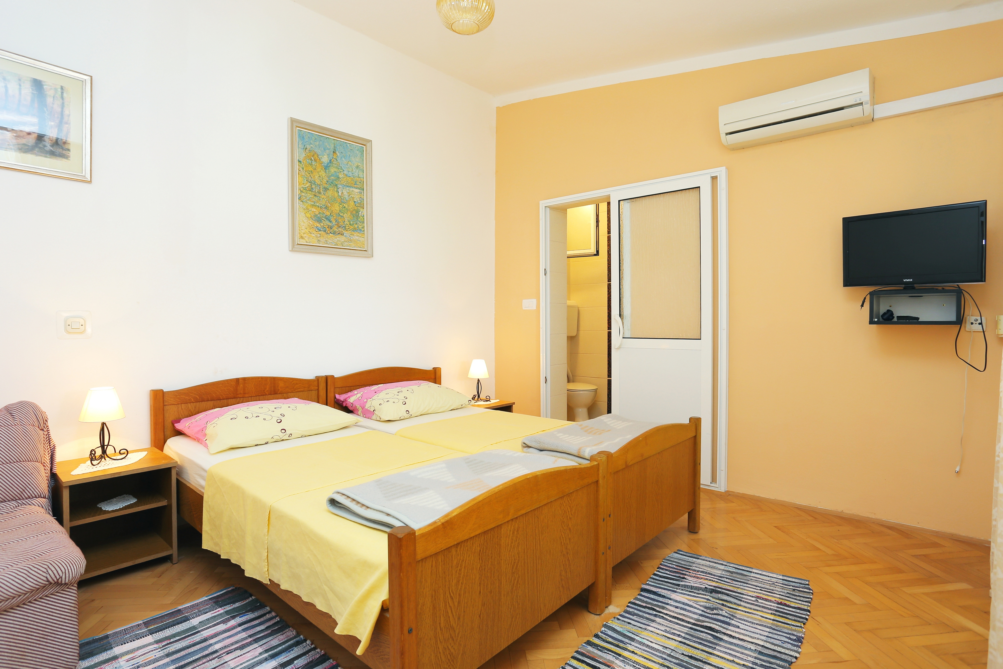 House 18797 in the town of Arbanija, Čiovo - Central Dalmatia has accommodation units of type Apartment (2) and is 100 m away from the sea. The nearest beach to this accommodation is a pebble beach. Other guests will most likely be staying in the houses other apartments. Your hosts will be staying in the house during your stay. The house owner is under no obligation to accept additional persons and pets that were not stated in the reservation request and it is necessary to report them in advance.AMENITIES Infield (Well-kept), Courtyard (100m2, Sitting area), Parking lot (Number of parking spaces: 2, Distance from the house: In the courtyard), Barbecue: shared, WiFi Internet, Laundry service, Hairdryer, Iron, Ironing board LOCATION AND ACCESS Facility is situated near a local road Main road between the property and the beach Car access possible: Yes, Narrow street: 50 m The facility is situated in relatively quiet surroundings The facility is partly surrounded by vegetation DISTANCES Sea: 100 m Beach: 110 m Center: 6 km Shop: 300 m Urgent medical care: 6.5 km Pharmacy: 7 km Exchange office: 5 km ATMBank machine: 300 m Tourist info: 2.5 km Airport: 8.5 km Ferry port: 6.5 km Bus station: 6 km Gas station: 5 km Farmers market: 5.5 km