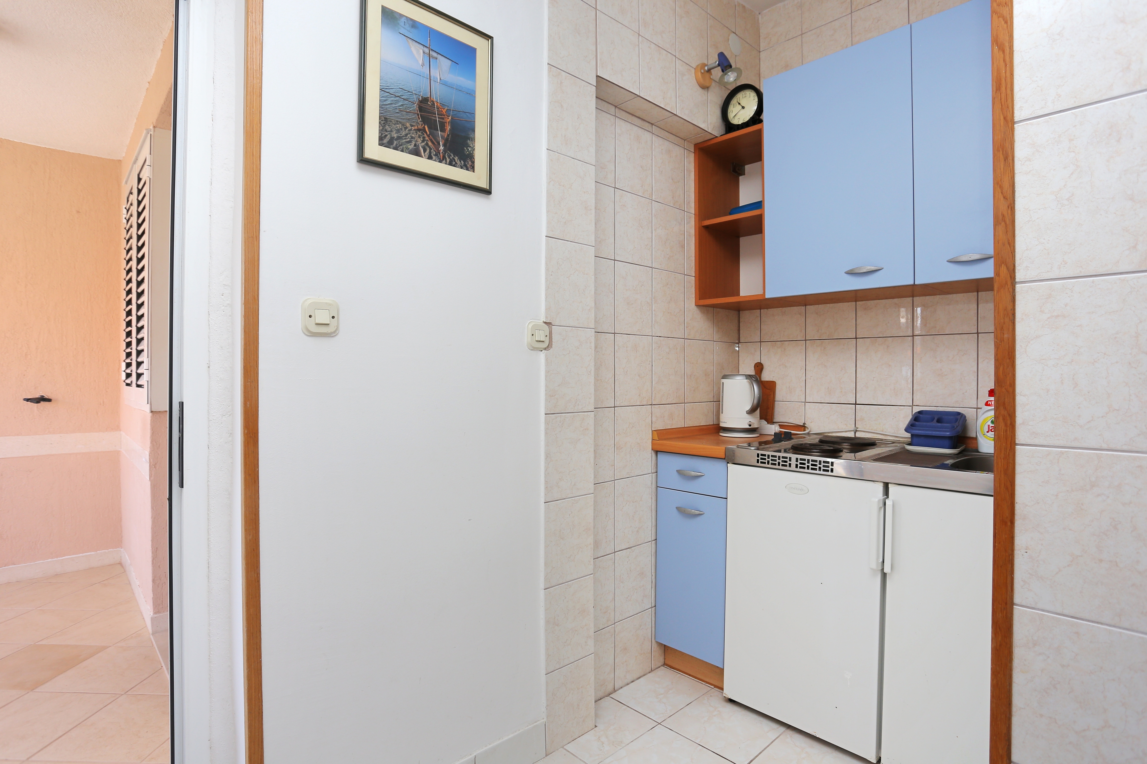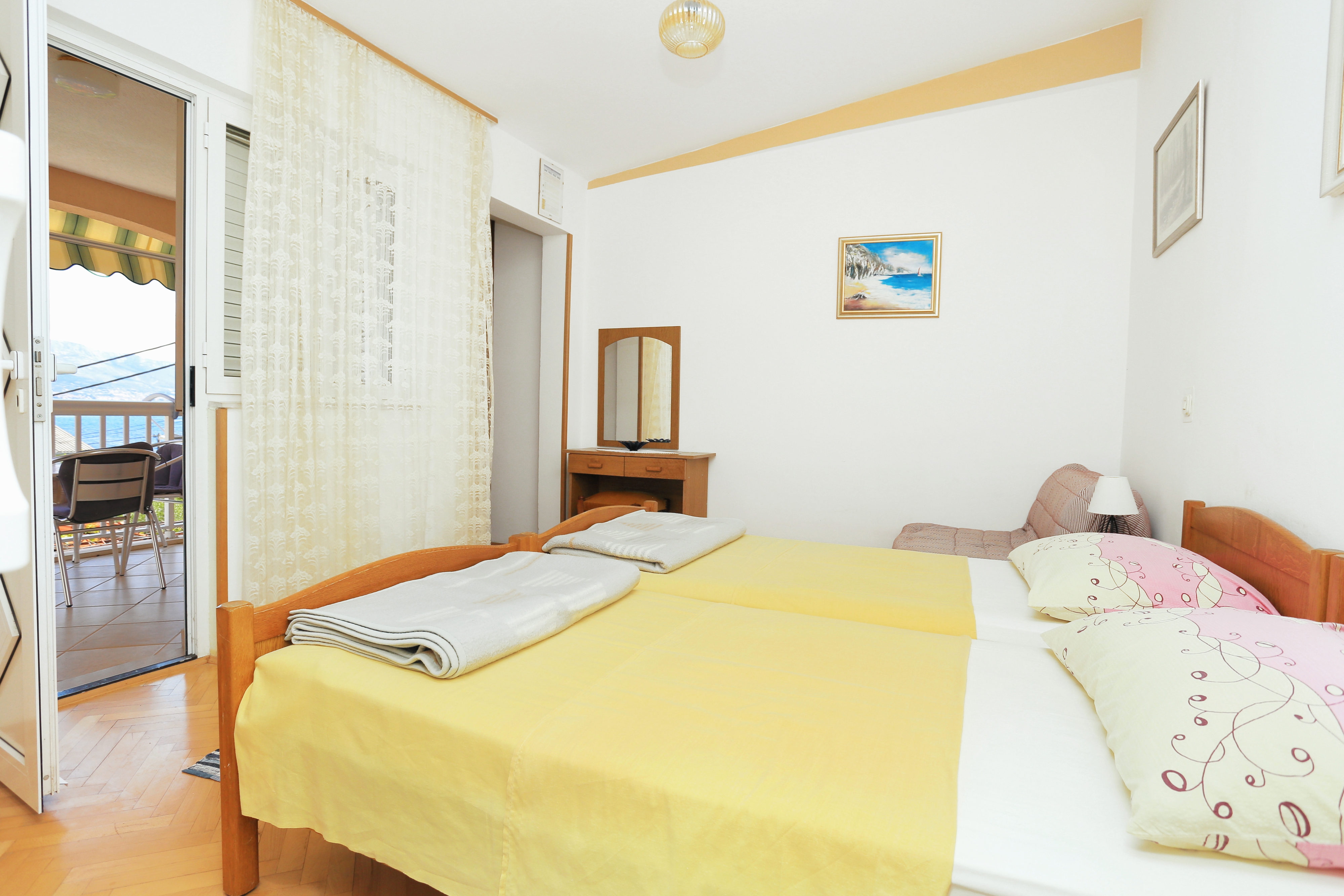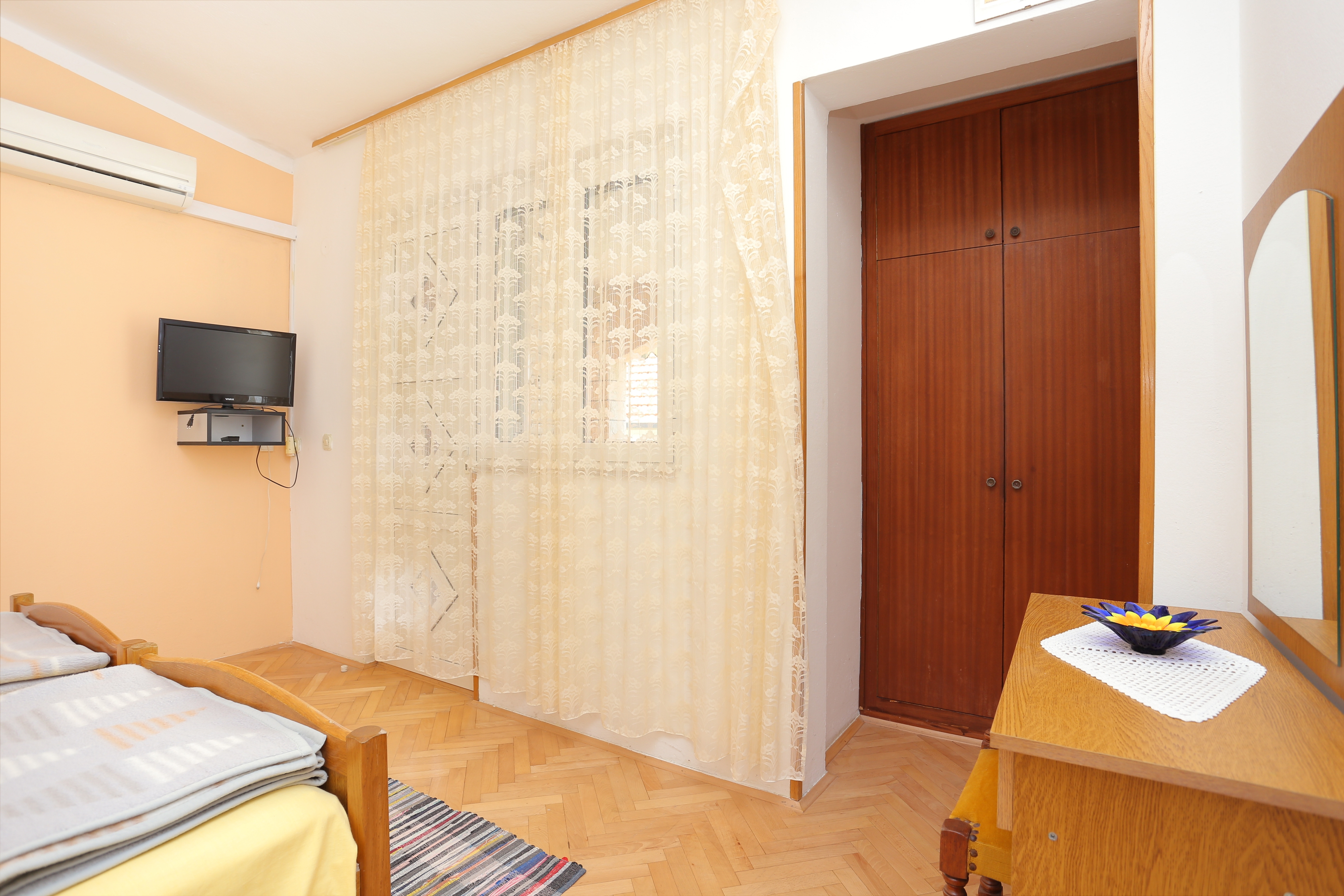 Apartment can accommodate 2 guests. Beds are situated in 1 sleeping rooms, within 22m2. Guests can use a private terrace to enjoy the warm summer evenings. The apartment offers the sea view. Food can be prepared using barbecue which is shared with other guests too. INCLUDED IN THE PRICE: tourist tax, final cleaning, air-conditioning, parking, internet, laundry, iron, ironing board, hairdryer. OBLIGATORY ADDITIONAL COSTS: short stay fee (surcharge depending on a number of booked nights: 30% - 1, 20% - 2, 10% - 3). OPTIONAL ADDITIONAL COSTS: additional bed (€10.00 per night). The availability of additional services for your chosen dates of stay, as well as their prices (if none are listed) must be checked ahead of time. Any additional services not shown in the price calculation are payable directly to the property owner and only if used by the visitor.