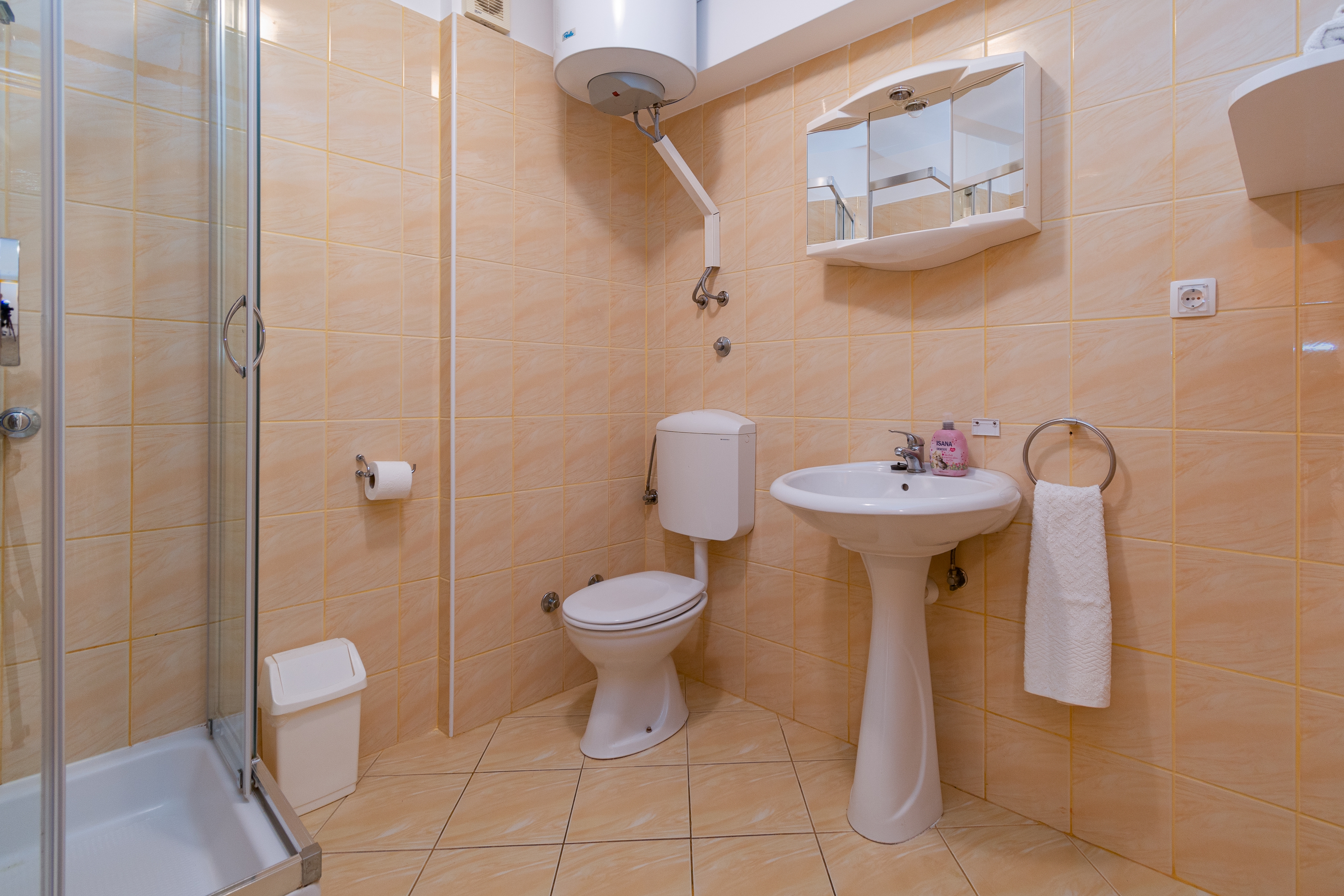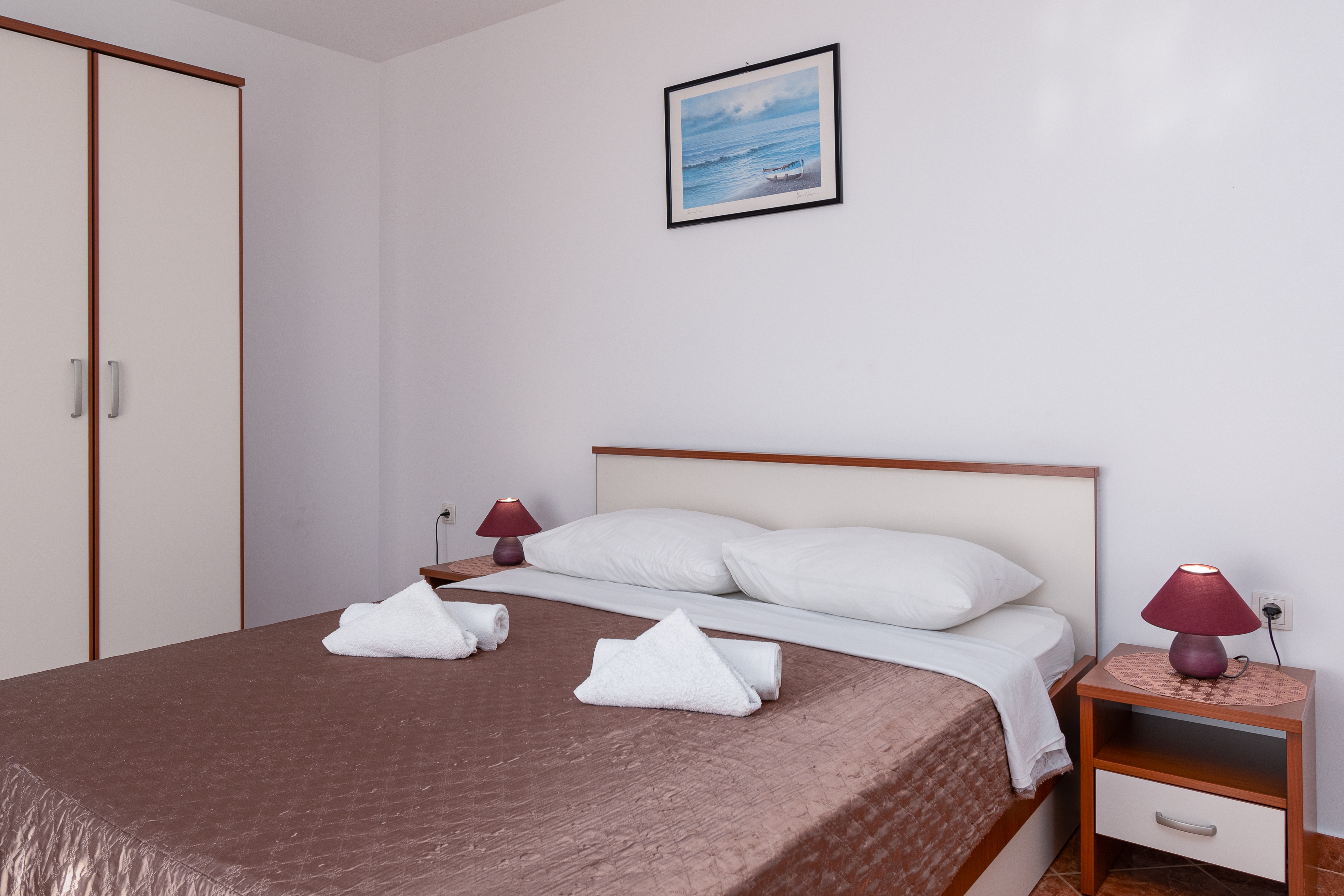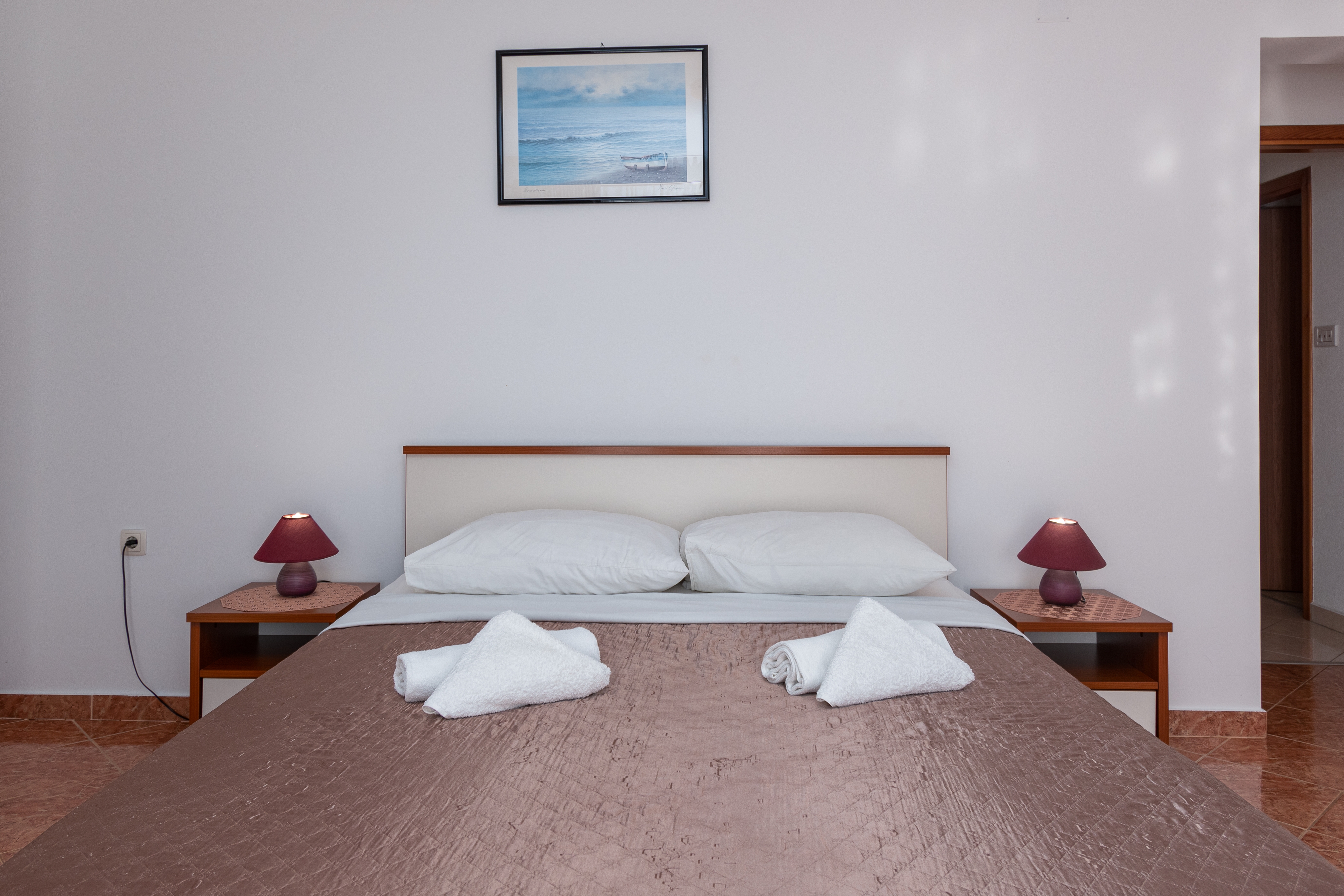 Apartment can accommodate 5 guests. Beds are situated in 2 sleeping rooms, but also in the living room, within 68m2. Guests can use a private balcony to enjoy the warm summer evenings. The apartment offers the sea view. Food can be prepared using barbecue which is shared with other guests too. Shared pool is on disposal during stay. This accommodation unit welcomes pets at an additional charge. INCLUDED IN THE PRICE: tourist tax, final cleaning, air-conditioning, pool, parking, internet, hairdryer. OPTIONAL ADDITIONAL COSTS: pets (€10.00 per night). The availability of additional services for your chosen dates of stay, as well as their prices (if none are listed) must be checked ahead of time. Any additional services not shown in the price calculation are payable directly to the property owner and only if used by the visitor.