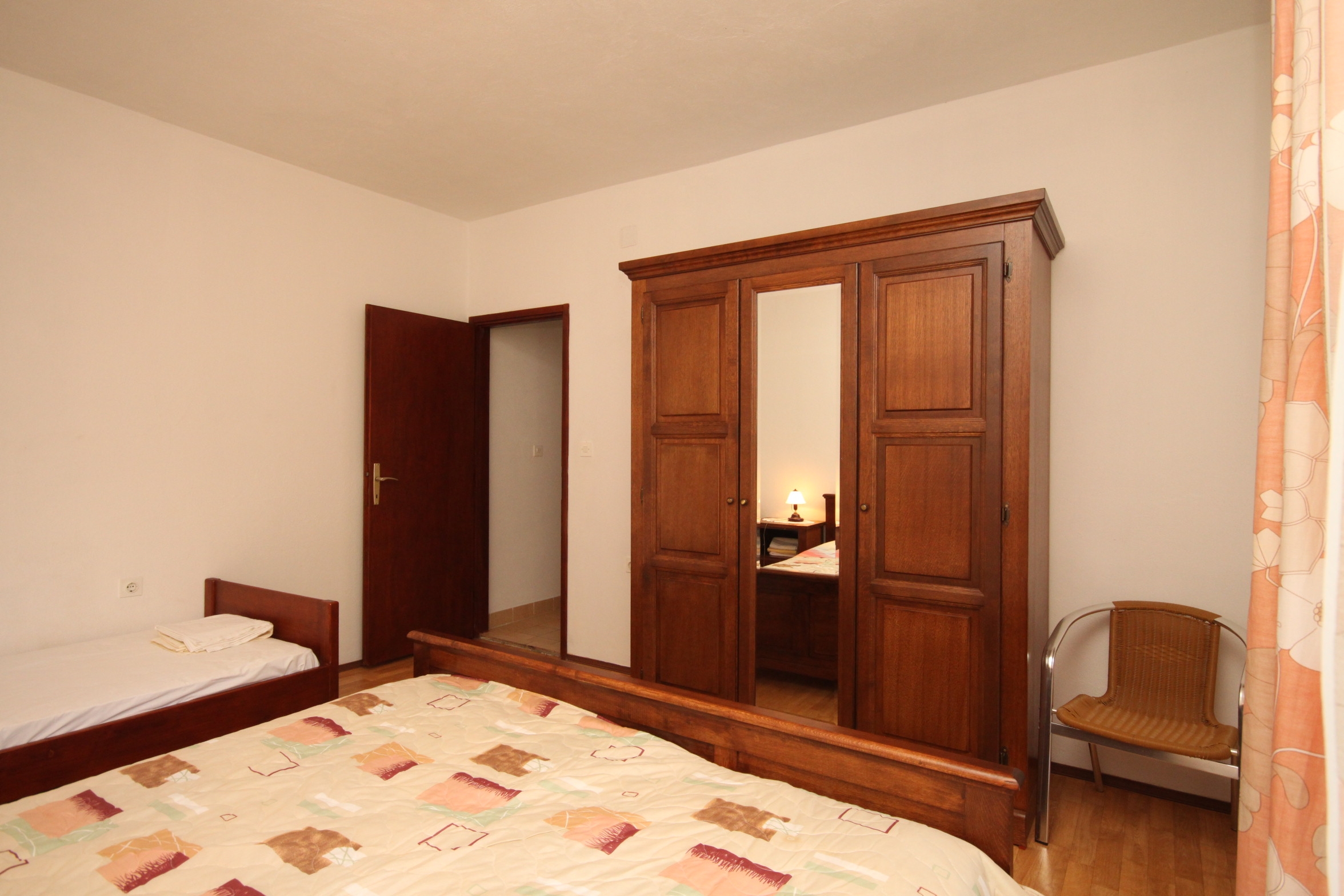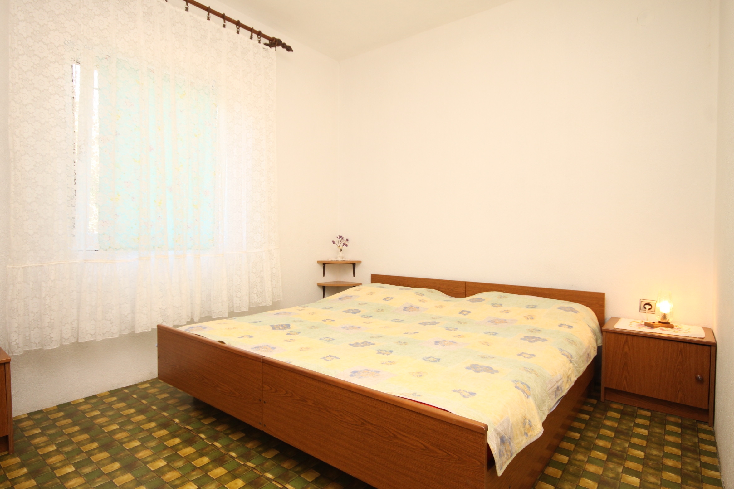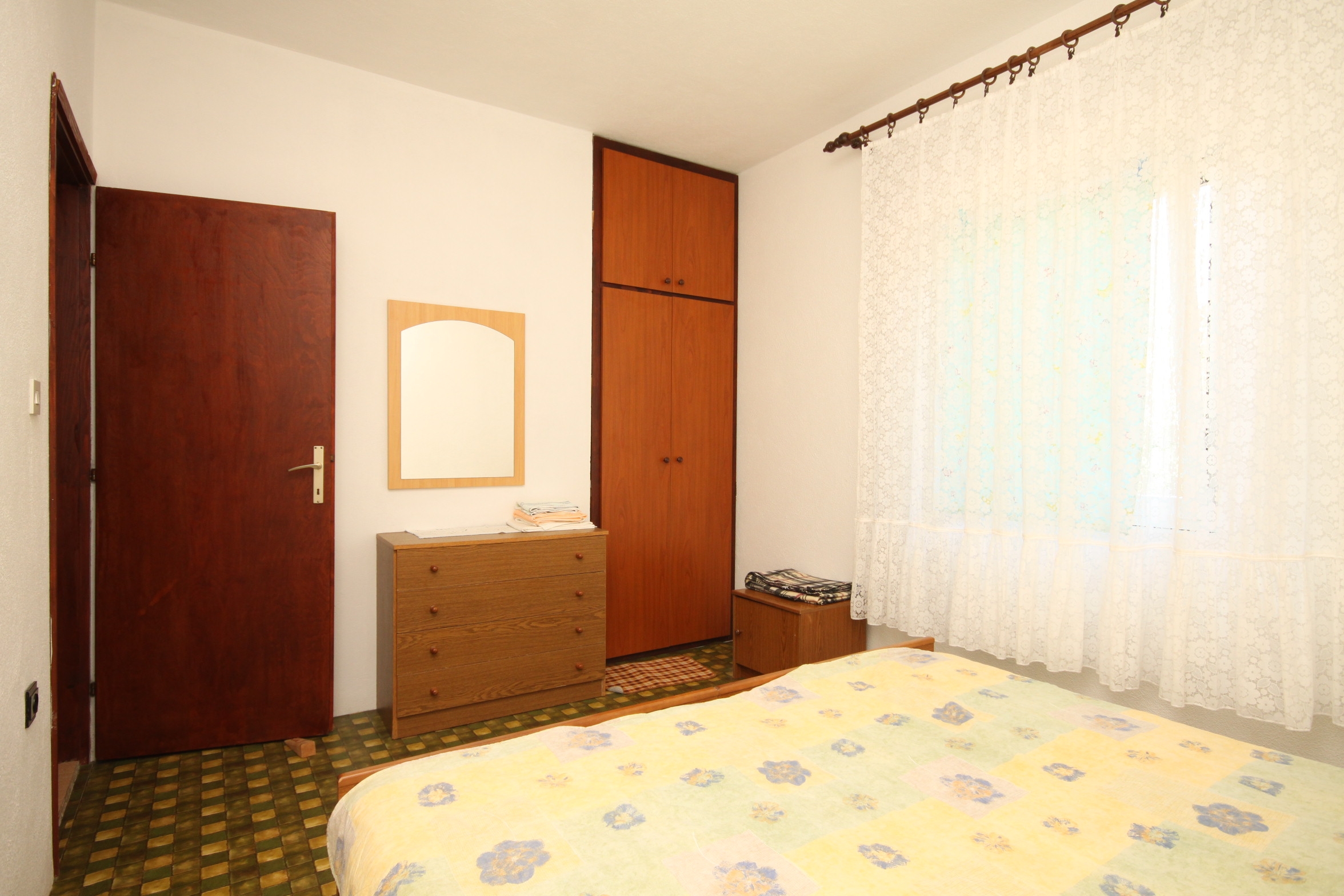 Apartment can accommodate 5 guests. Beds are situated in 2 sleeping rooms, within 46m2. Guests can use a private terrace to enjoy the warm summer evenings. The apartment offers the sea view. Food can be prepared using barbecue which is shared with other guests too. This accommodation unit welcomes pets at an additional charge. Other guests or hosts pass through the terrace of the booked accommodation unit. Some of the rooms of the accommodation unit are not connected with the rest of the unit. INCLUDED IN THE PRICE: tourist tax, final cleaning, air-conditioning, parking, internet, boat mooring, iron, portable barbecue. OBLIGATORY ADDITIONAL COSTS: short stay fee (surcharge depending on a number of booked nights: 30% - 1, 20% - 2, 10% - 3). OPTIONAL ADDITIONAL COSTS: pets (€5.00 per night). The availability of additional services for your chosen dates of stay, as well as their prices (if none are listed) must be checked ahead of time. Any additional services not shown in the price calculation are payable directly to the property owner and only if used by the visitor.