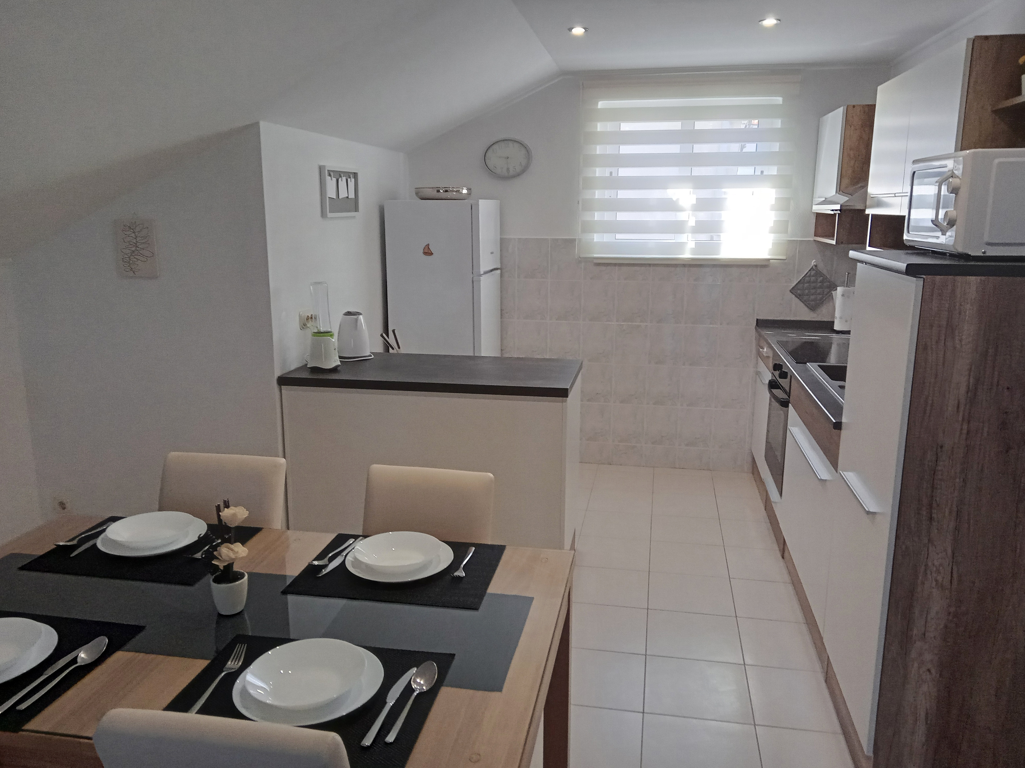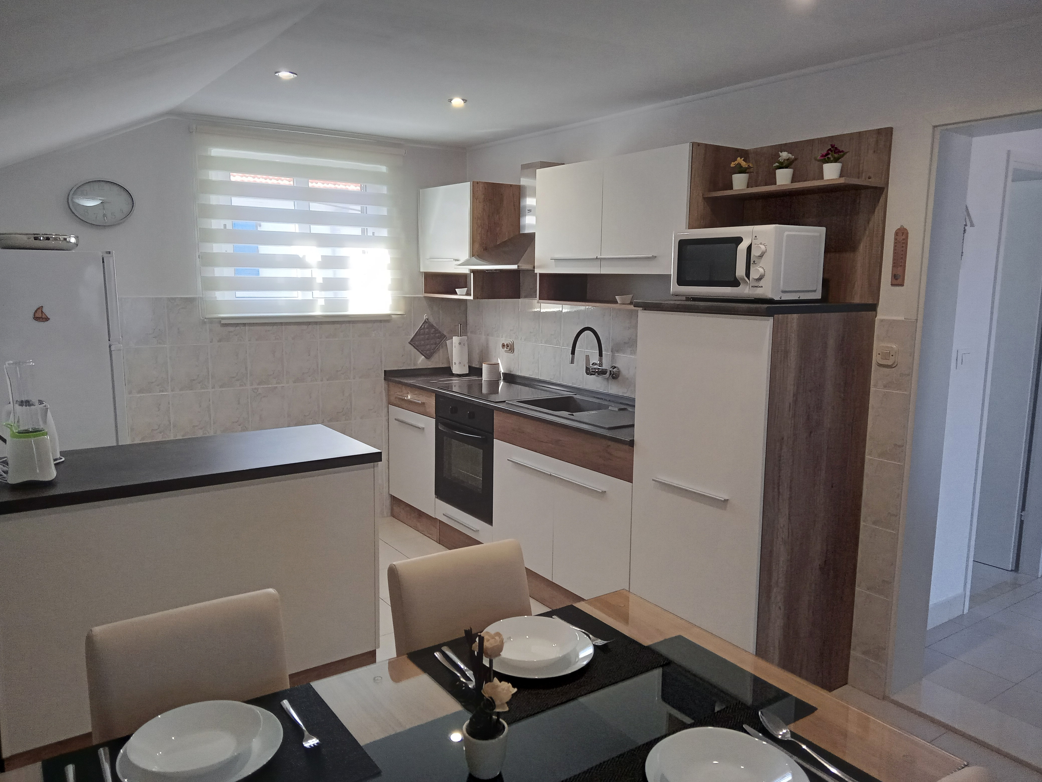 Apartment can accommodate 4 guests. Beds are situated in 2 sleeping rooms, within 77m2. Guests can use a private terrace to enjoy the warm summer evenings. The apartment offers the sea view. Food can be prepared using barbecue which is shared with other guests too. INCLUDED IN THE PRICE: tourist tax, final cleaning, air-conditioning, parking, internet, iron, ironing board, hairdryer. OBLIGATORY ADDITIONAL COSTS: short stay fee (surcharge depending on a number of booked nights: 30% - 1, 20% - 2, 10% - 3). The availability of additional services for your chosen dates of stay, as well as their prices (if none are listed) must be checked ahead of time. Any additional services not shown in the price calculation are payable directly to the property owner and only if used by the visitor.