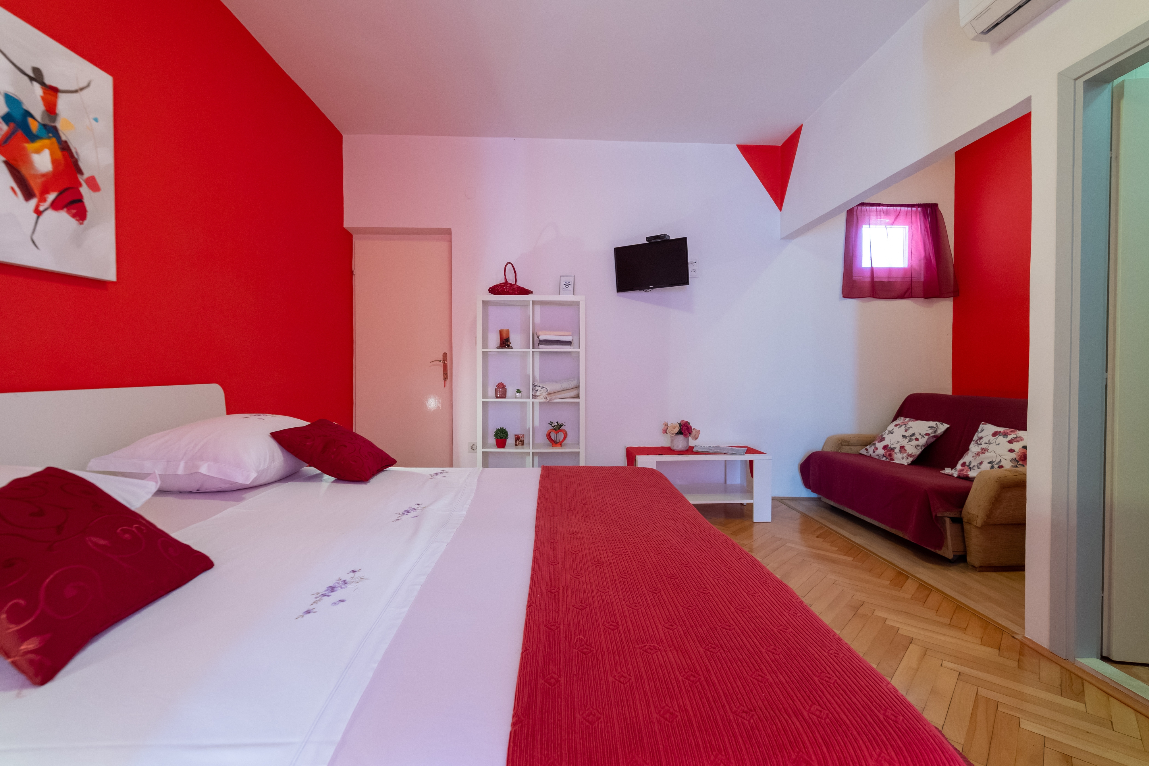Studio flat can accommodate 3 guests. Beds are situated in 1 sleeping rooms, within 32m2. Guests can use a private terrace to enjoy the warm summer evenings. Food can be prepared using barbecue which is shared with other guests too. INCLUDED IN THE PRICE: tourist tax, final cleaning, air-conditioning, parking, internet, baby cot, iron, ironing board, hairdryer. OBLIGATORY ADDITIONAL COSTS: short stay fee (surcharge depending on a number of booked nights: 30% - 1, 20% - 2, 10% - 3). OPTIONAL ADDITIONAL COSTS: laundry (€5.00 washing). The availability of additional services for your chosen dates of stay, as well as their prices (if none are listed) must be checked ahead of time. Any additional services not shown in the price calculation are payable directly to the property owner and only if used by the visitor.