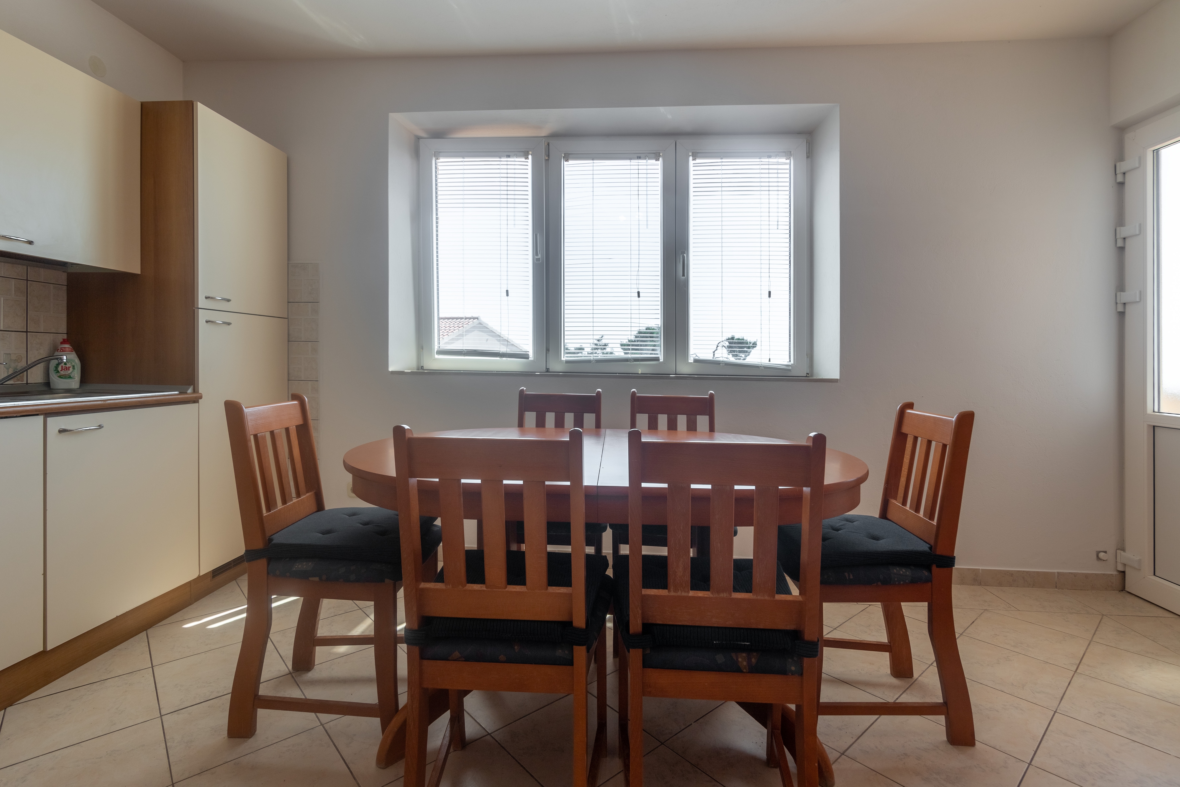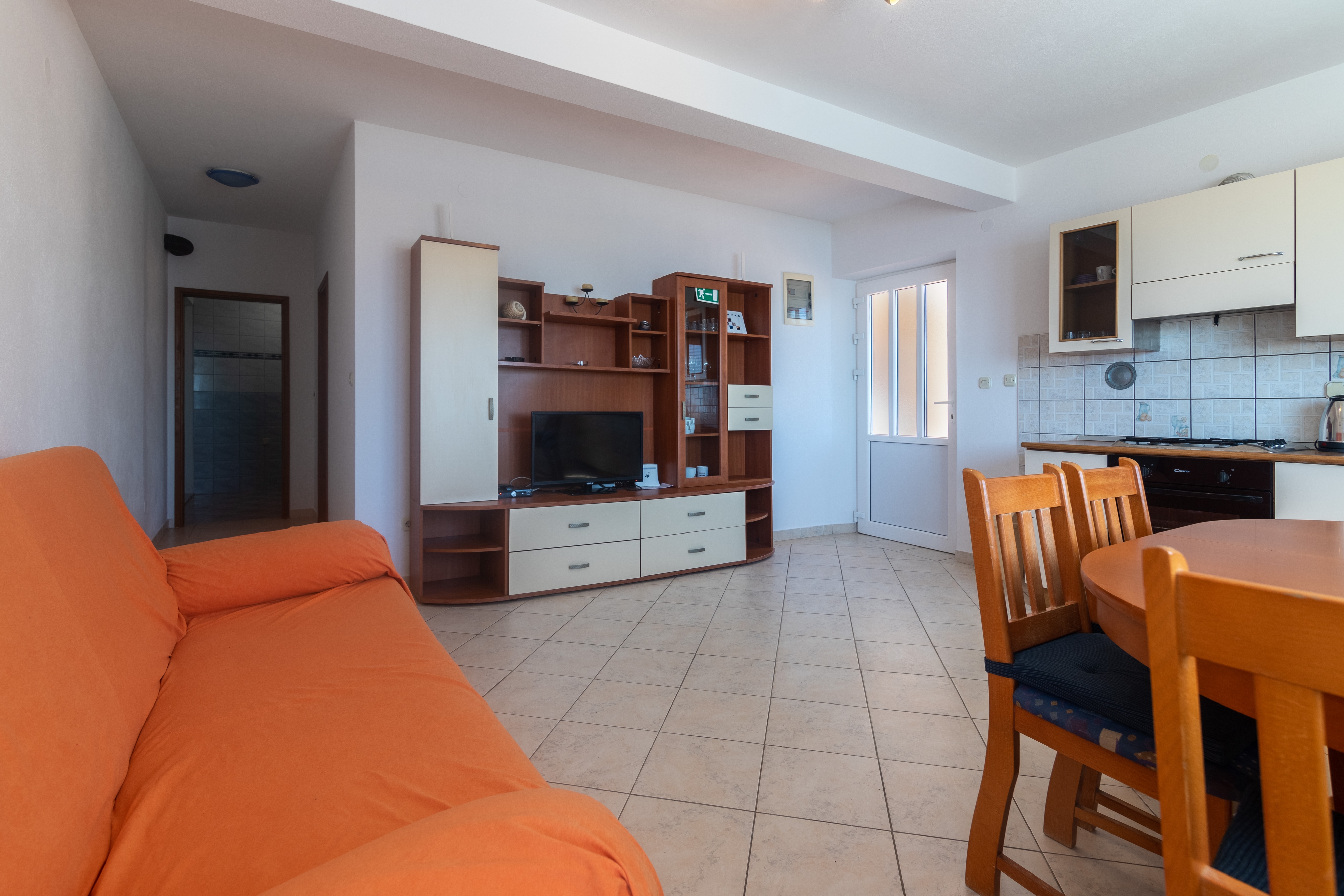 Apartment can accommodate 5 guests. Beds are situated in 2 sleeping rooms, but also in the living room, within 65m2. Guests can use a private terrace to enjoy the warm summer evenings. The apartment offers the sea view. For full enjoyment and relaxation there is a private barbecue for this accommodation guests only. This accommodation unit welcomes pets at an additional charge. Some of the rooms of the accommodation unit are not connected with the rest of the unit. INCLUDED IN THE PRICE: tourist tax, final cleaning, air-conditioning, parking, internet, iron, ironing board, hairdryer. OBLIGATORY ADDITIONAL COSTS: short stay fee (surcharge depending on a number of booked nights: 30% - 1, 20% - 2, 10% - 3). OPTIONAL ADDITIONAL COSTS: garage (€3.00 per night), laundry (€15.00 washing), pets (€5.00 per night). The availability of additional services for your chosen dates of stay, as well as their prices (if none are listed) must be checked ahead of time. Any additional services not shown in the price calculation are payable directly to the property owner and only if used by the visitor. Discounts to the base price: free day 28=25 (for stays of 28 days or more, we give you 3 days free of charge for the stay until 31122026).