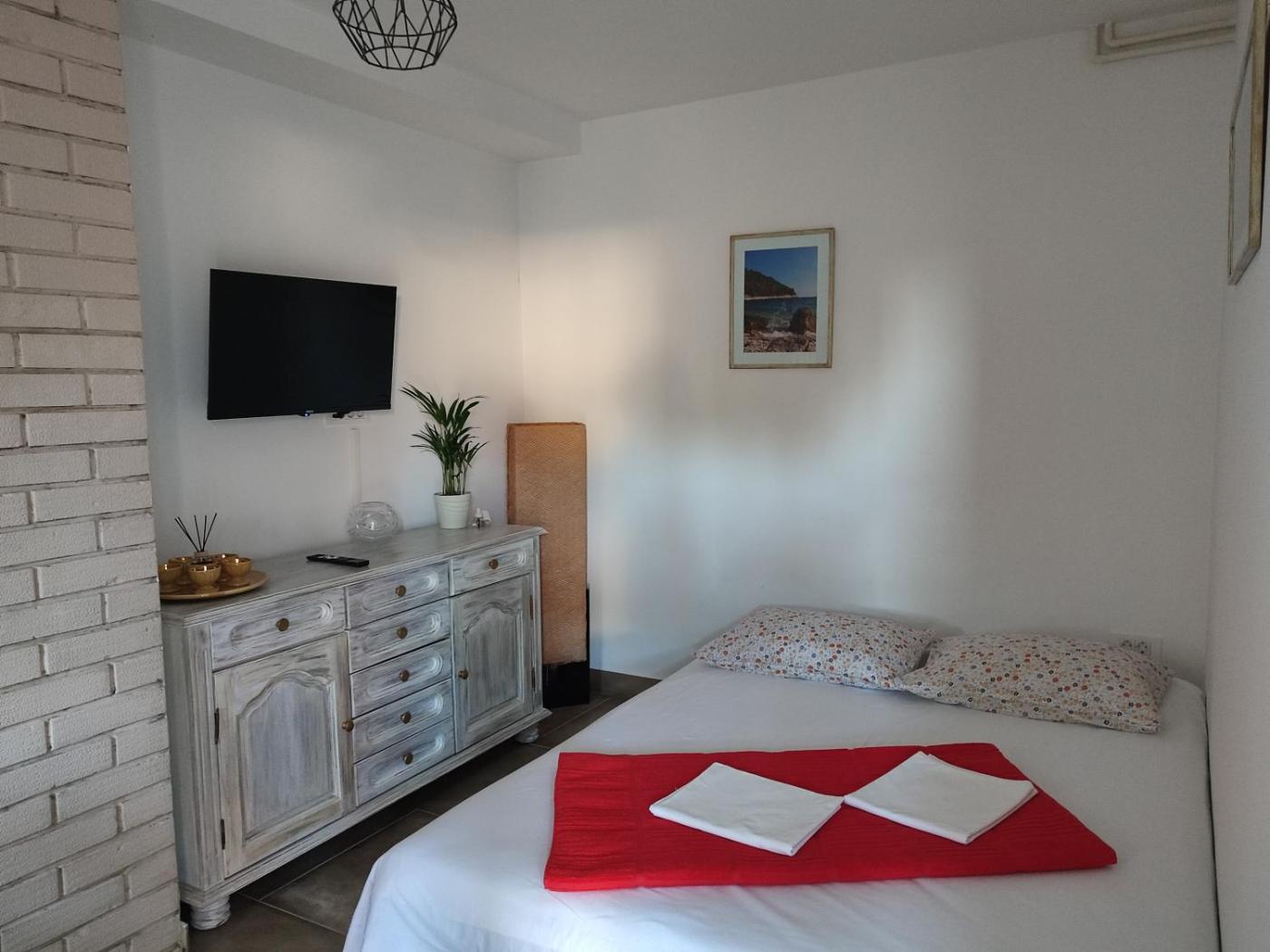 One-Bedroom Apartment. Featuring a private entrance, this air-conditioned apartment is comprised of 1 living room, 1 separate bedroom and 1 bathroom with a shower and a hairdryer. The well-fitted kitchen features a stovetop, a refrigerator, kitchenware and an oven. Boasting a terrace with garden views, this apartment also offers a washing machine and a flat-screen TV with satellite channels. The unit offers 2 beds.
