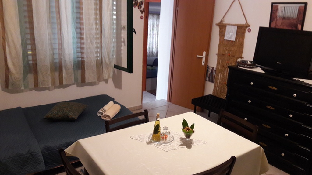 Apartment can accommodate 4 guests. Beds are situated in 1 sleeping rooms, but also in the living room, within 33m2. Guests can use a private terrace to enjoy the warm summer evenings. The apartment offers the sea view. Food can be prepared using barbecue which is shared with other guests too. This accommodation unit welcomes pets at an additional charge. INCLUDED IN THE PRICE: tourist tax, final cleaning, air-conditioning, parking, internet, laundry, boat mooring, baby cot, iron, hairdryer. OPTIONAL ADDITIONAL COSTS: pets (€7.00 per night). The availability of additional services for your chosen dates of stay, as well as their prices (if none are listed) must be checked ahead of time. Any additional services not shown in the price calculation are payable directly to the property owner and only if used by the visitor.