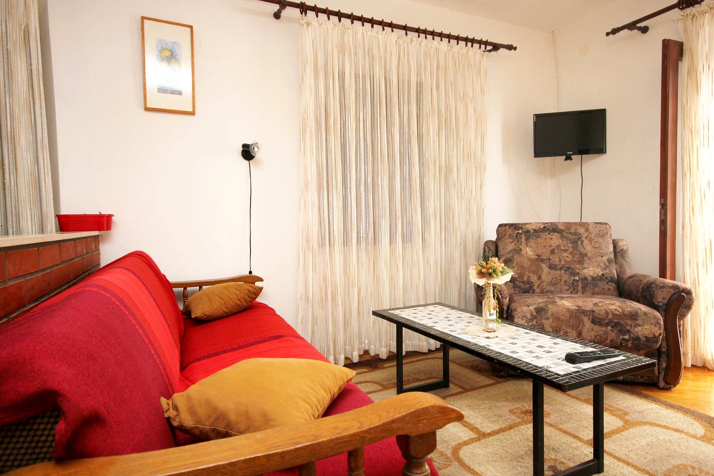 Studio flat can accommodate 3 guests. Beds are situated in 1 sleeping rooms, but also in the living room, within 31m2. Guests can use a private balcony to enjoy the warm summer evenings. The studio offers the sea view. Food can be prepared using barbecue which is shared with other guests too. INCLUDED IN THE PRICE: tourist tax, final cleaning, air-conditioning, internet, iron, ironing board, hairdryer. OPTIONAL ADDITIONAL COSTS: laundry (€10.00 washing). The availability of additional services for your chosen dates of stay, as well as their prices (if none are listed) must be checked ahead of time. Any additional services not shown in the price calculation are payable directly to the property owner and only if used by the visitor.