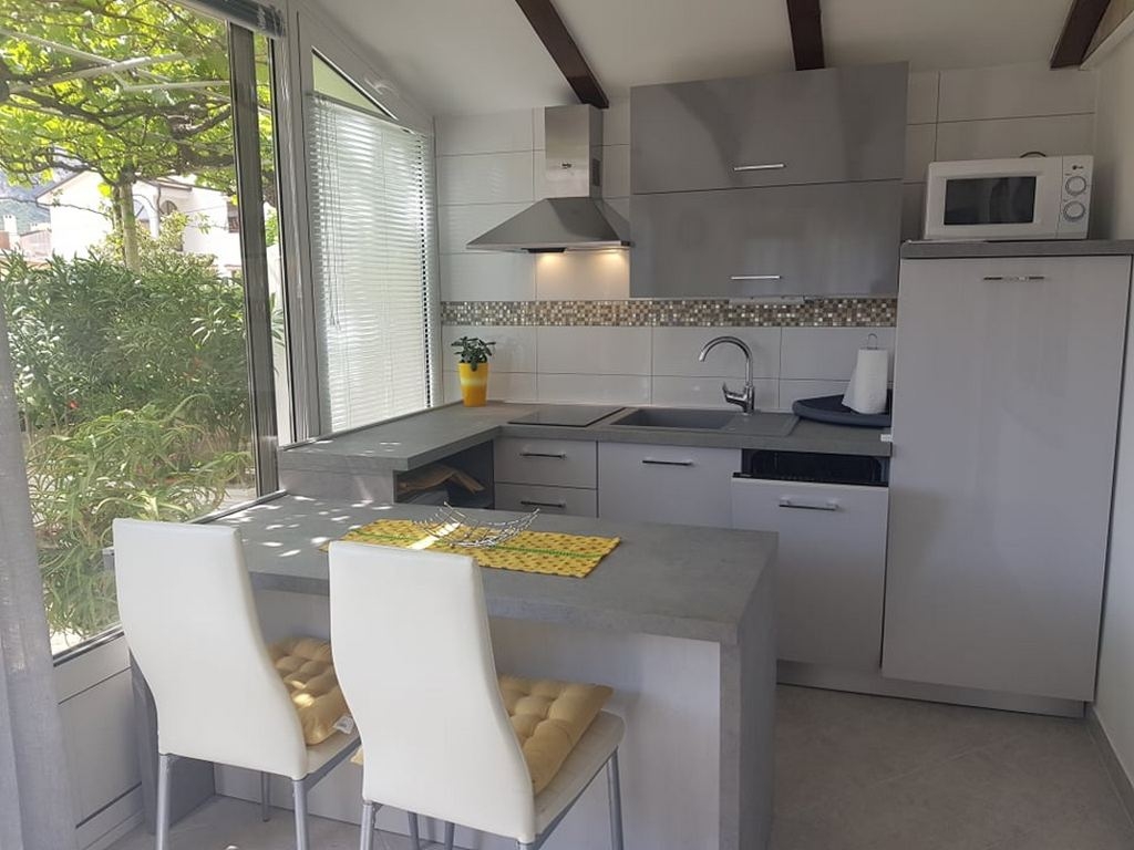 Studio flat can accommodate 3 guests. Beds are situated in 1 sleeping rooms, but also in the living room, within 34m2. Guests can use a private terrace to enjoy the warm summer evenings. Food can be prepared using barbecue which is shared with other guests too. INCLUDED IN THE PRICE: tourist tax, final cleaning, air-conditioning, central heating, parking, internet, iron, ironing board, hairdryer. OBLIGATORY ADDITIONAL COSTS: short stay fee (surcharge depending on a number of booked nights: 30% - 1, 20% - 2, 10% - 3). The availability of additional services for your chosen dates of stay, as well as their prices (if none are listed) must be checked ahead of time. Any additional services not shown in the price calculation are payable directly to the property owner and only if used by the visitor.