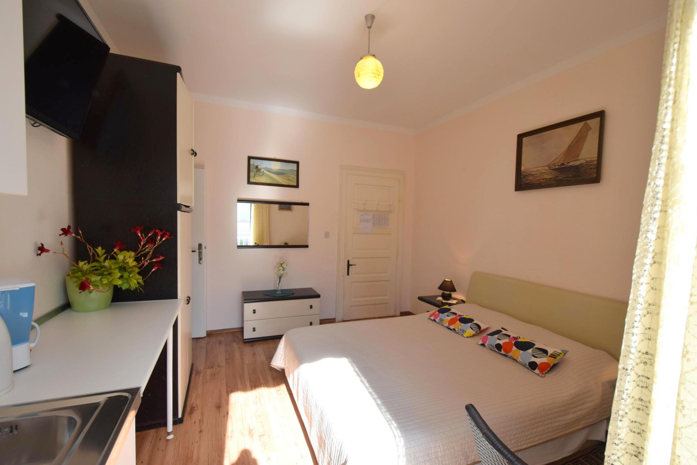 Studio flat can accommodate 2 guests. Beds are situated in 1 sleeping rooms, within 20m2. Guests can use a private balcony to enjoy the warm summer evenings. The studio offers the sea view. INCLUDED IN THE PRICE: tourist tax, final cleaning, air-conditioning, parking, internet. The availability of additional services for your chosen dates of stay, as well as their prices (if none are listed) must be checked ahead of time. Any additional services not shown in the price calculation are payable directly to the property owner and only if used by the visitor.