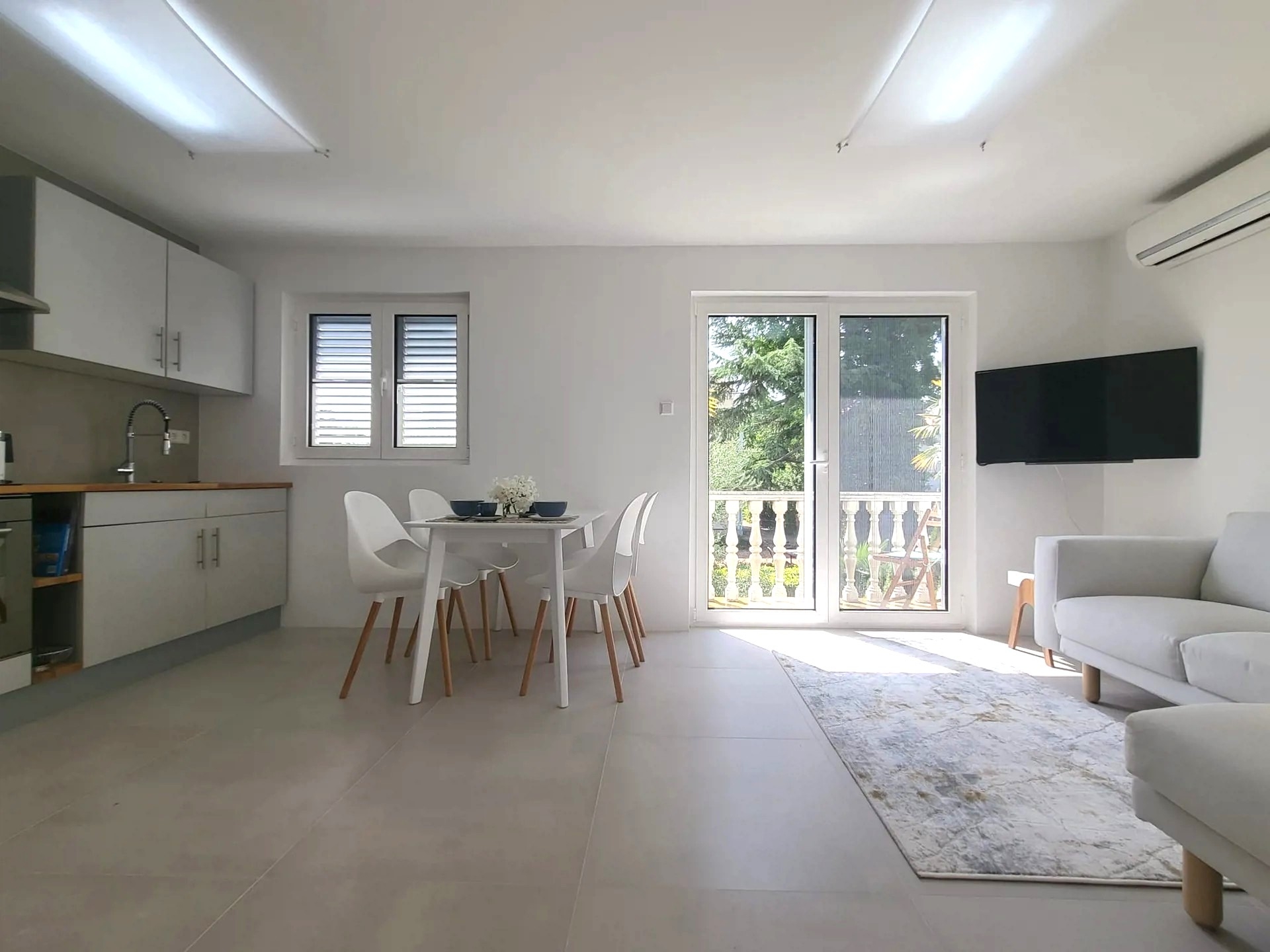 Apartment can accommodate 5 guests. Beds are situated in 2 sleeping rooms, within 62m2. Guests can use a private balcony to enjoy the warm summer evenings. Food can be prepared using barbecue which is shared with other guests too. INCLUDED IN THE PRICE: tourist tax, final cleaning, air-conditioning, parking, internet, hairdryer. OBLIGATORY ADDITIONAL COSTS: short stay fee (surcharge depending on a number of booked nights: 30% - 1, 20% - 2, 10% - 3). The availability of additional services for your chosen dates of stay, as well as their prices (if none are listed) must be checked ahead of time. Any additional services not shown in the price calculation are payable directly to the property owner and only if used by the visitor.