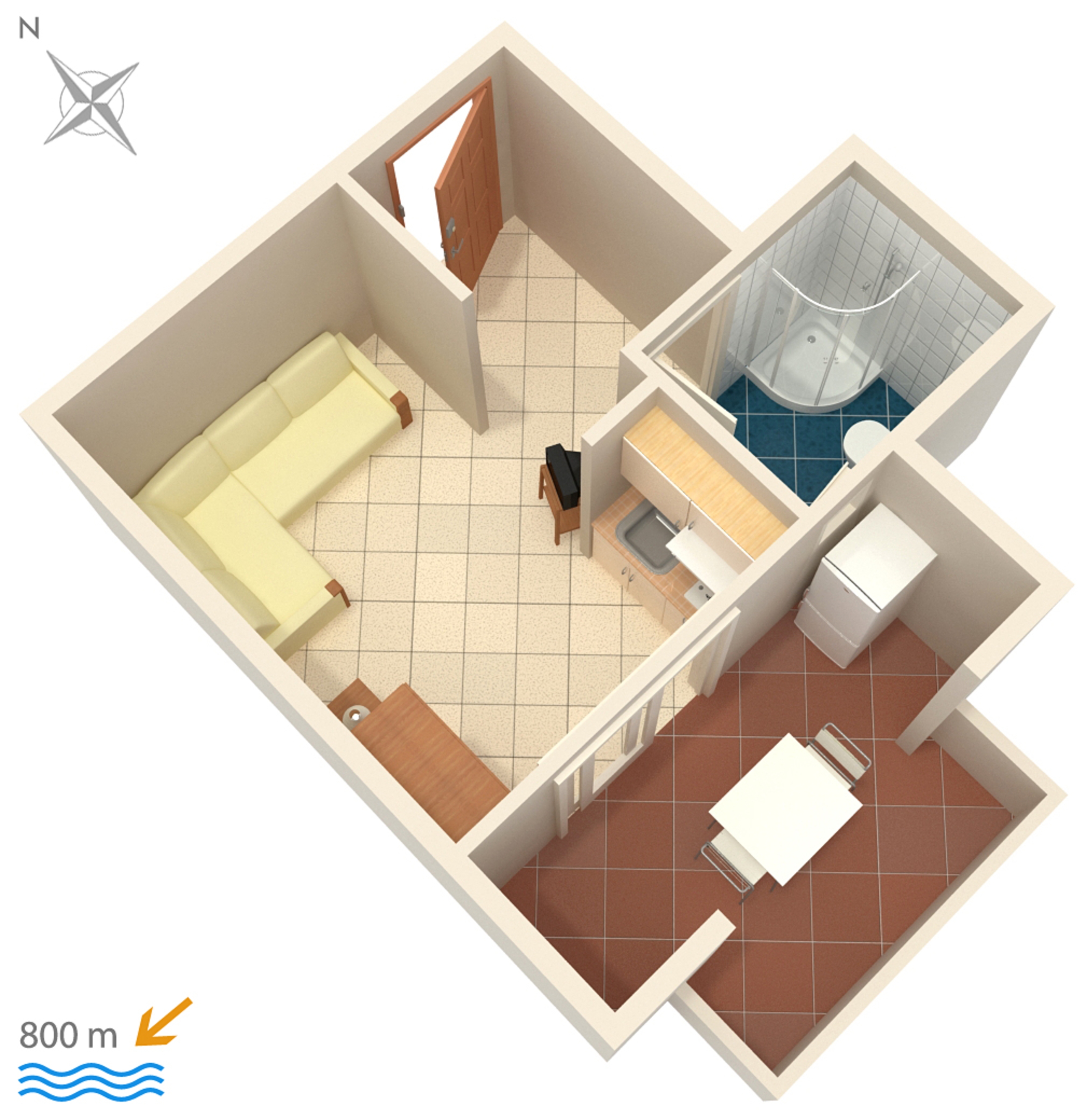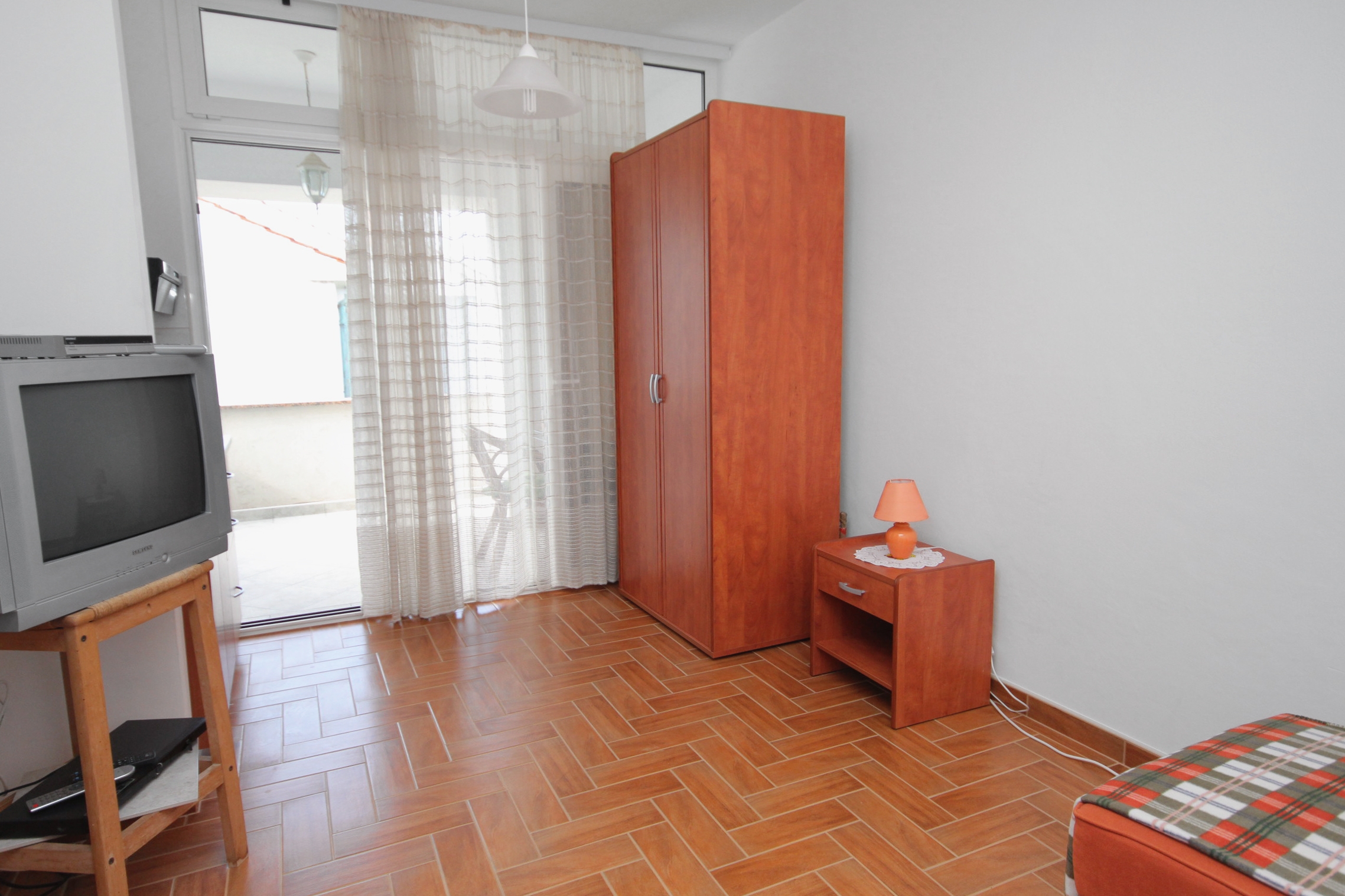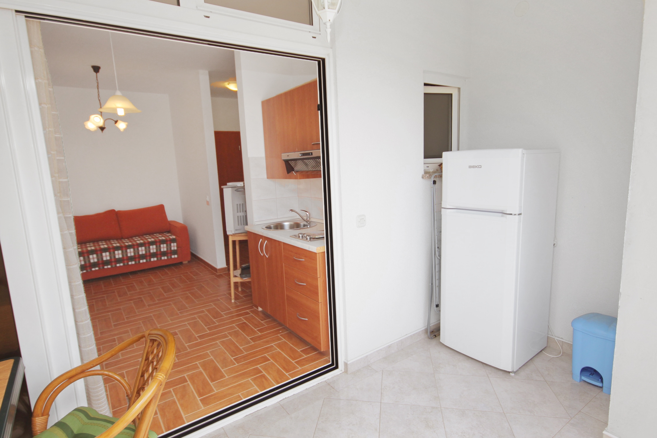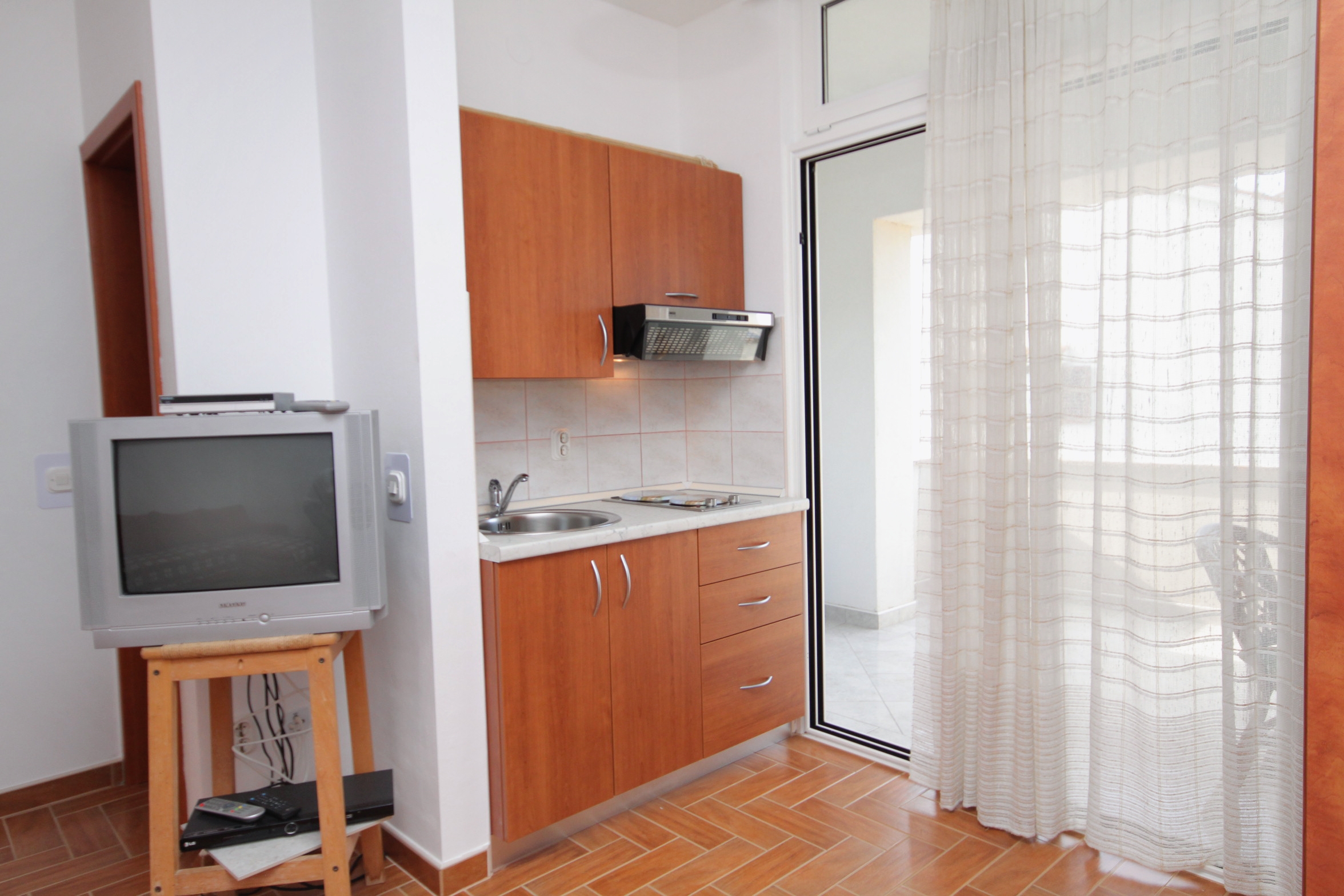Studio flat can accommodate 2 guests. Beds are situated in living room, within 19m2. Guests can use a private terrace to enjoy the warm summer evenings. The studio offers the sea view. Food can be prepared using barbecue which is shared with other guests too. INCLUDED IN THE PRICE: tourist tax, final cleaning, air-conditioning, parking, internet. OBLIGATORY ADDITIONAL COSTS: short stay fee (surcharge depending on a number of booked nights: 30% - 1, 20% - 2, 10% - 3). OPTIONAL ADDITIONAL COSTS: additional bed (€5.00 per night). The availability of additional services for your chosen dates of stay, as well as their prices (if none are listed) must be checked ahead of time. Any additional services not shown in the price calculation are payable directly to the property owner and only if used by the visitor.