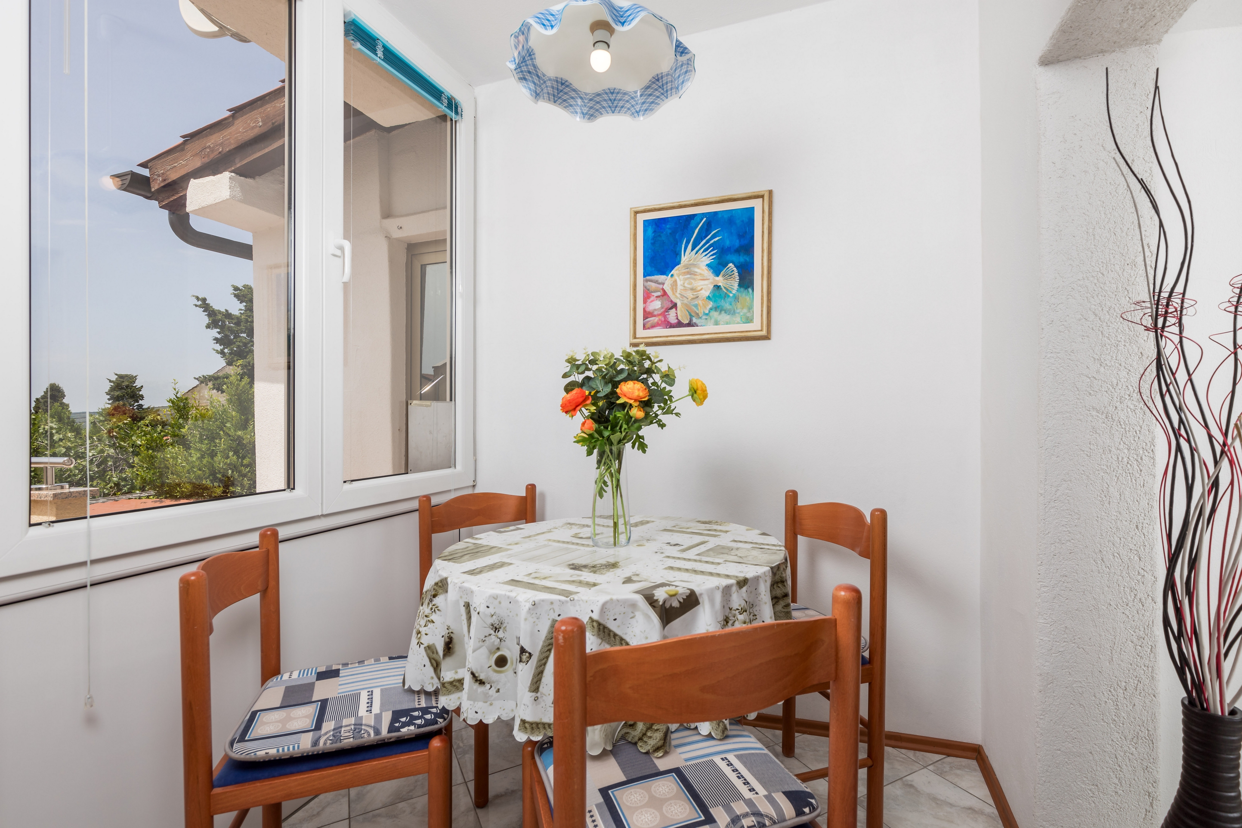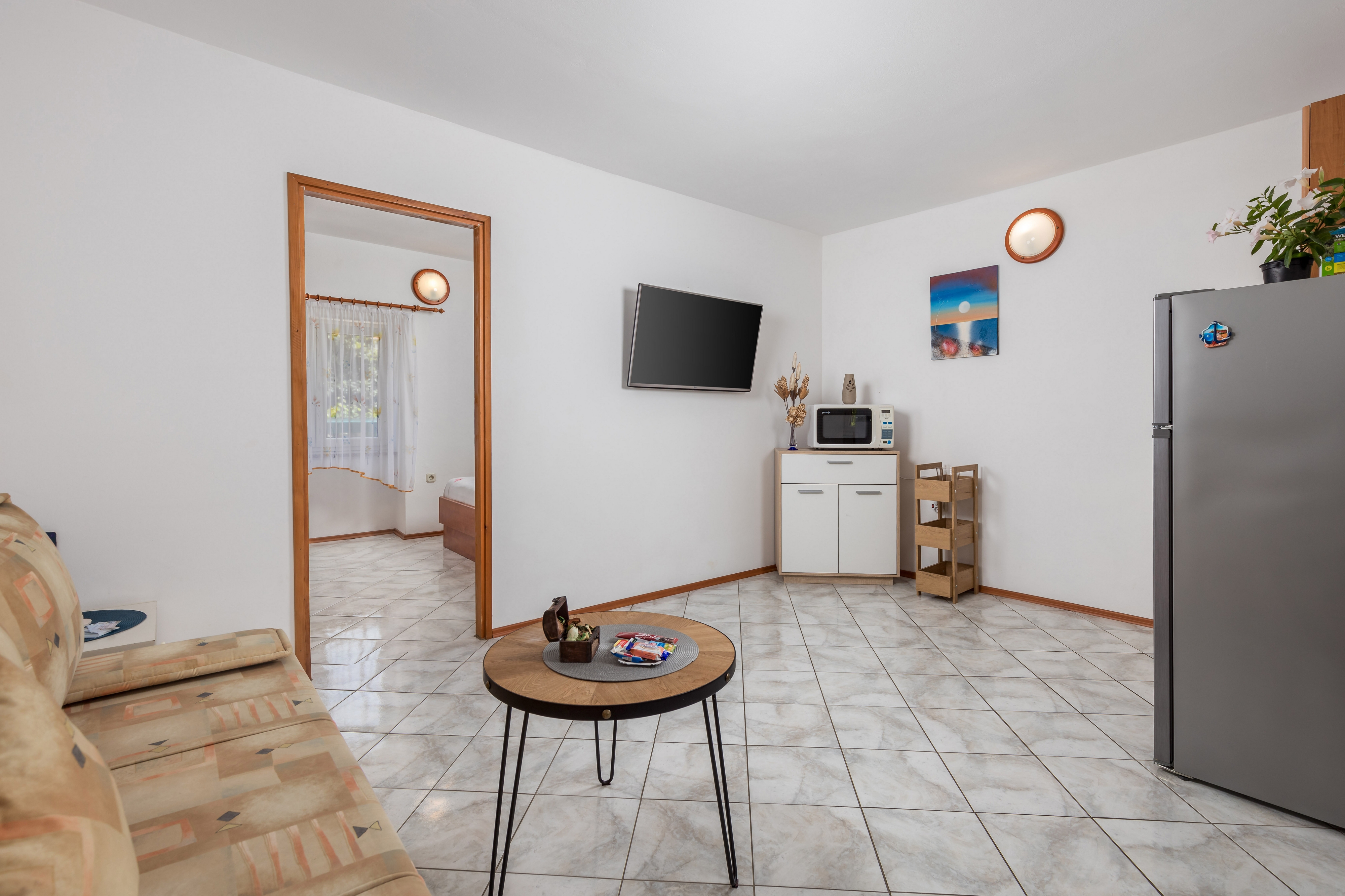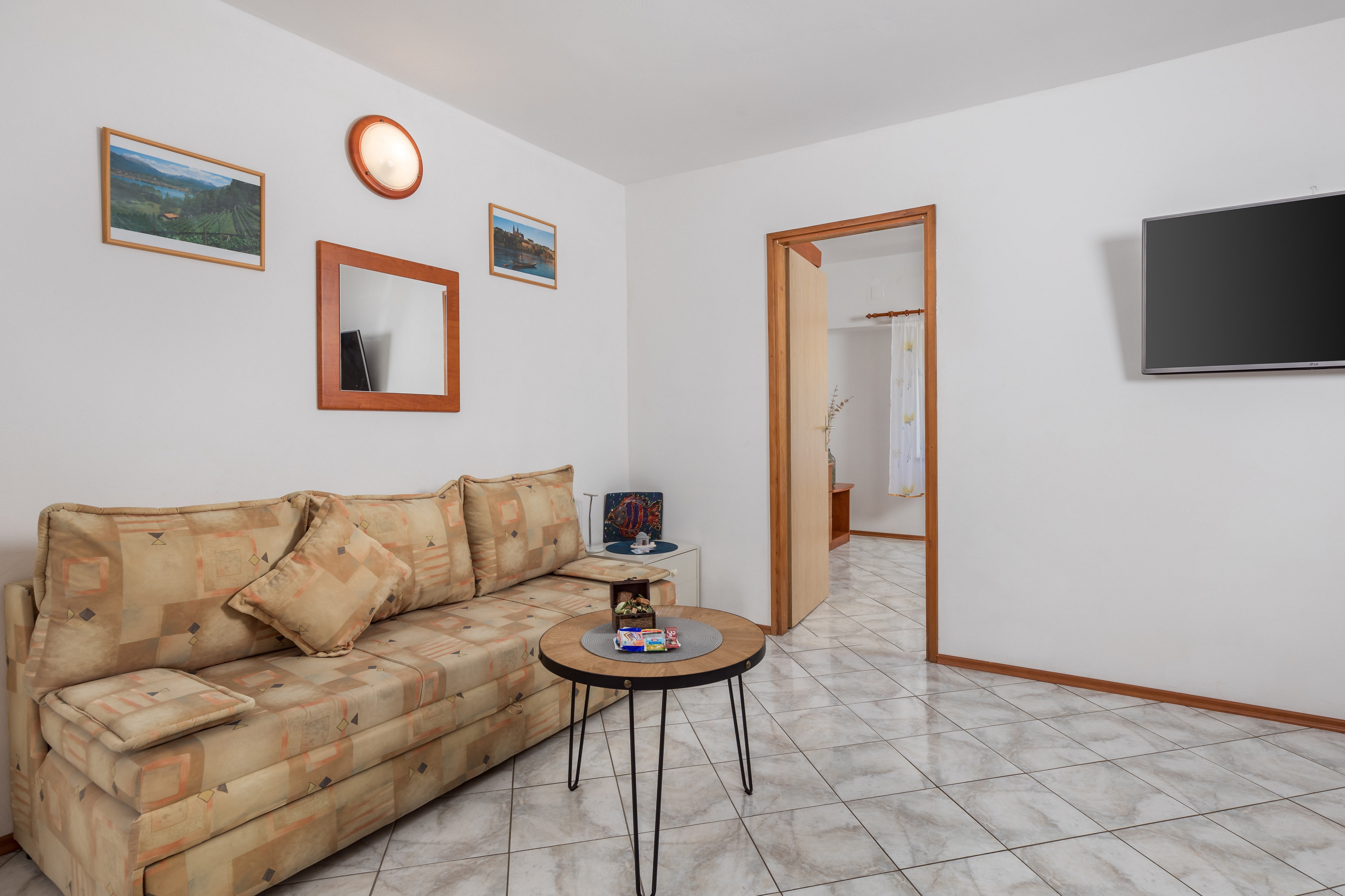 Apartment can accommodate 4 guests. Beds are situated in 1 sleeping rooms, but also in the living room, within 39m2. Guests can use a private terrace to enjoy the warm summer evenings. Food can be prepared using barbecue which is shared with other guests too. This accommodation unit welcomes pets at an additional charge. Other guests or hosts pass through the terrace of the booked accommodation unit. INCLUDED IN THE PRICE: tourist tax, final cleaning, air-conditioning, parking, internet, baby cot, iron, hairdryer, portable barbecue. OBLIGATORY ADDITIONAL COSTS: short stay fee (surcharge depending on a number of booked nights: 30% - 1, 20% - 2, 10% - 3). OPTIONAL ADDITIONAL COSTS: pets (€5.00 per night), bicycle (€5.00 daily (per piece)). The availability of additional services for your chosen dates of stay, as well as their prices (if none are listed) must be checked ahead of time. Any additional services not shown in the price calculation are payable directly to the property owner and only if used by the visitor. Discounts to the base price: free day 14=13 (for reservations of 14 or more days you get one free day for the stay until 31122026).