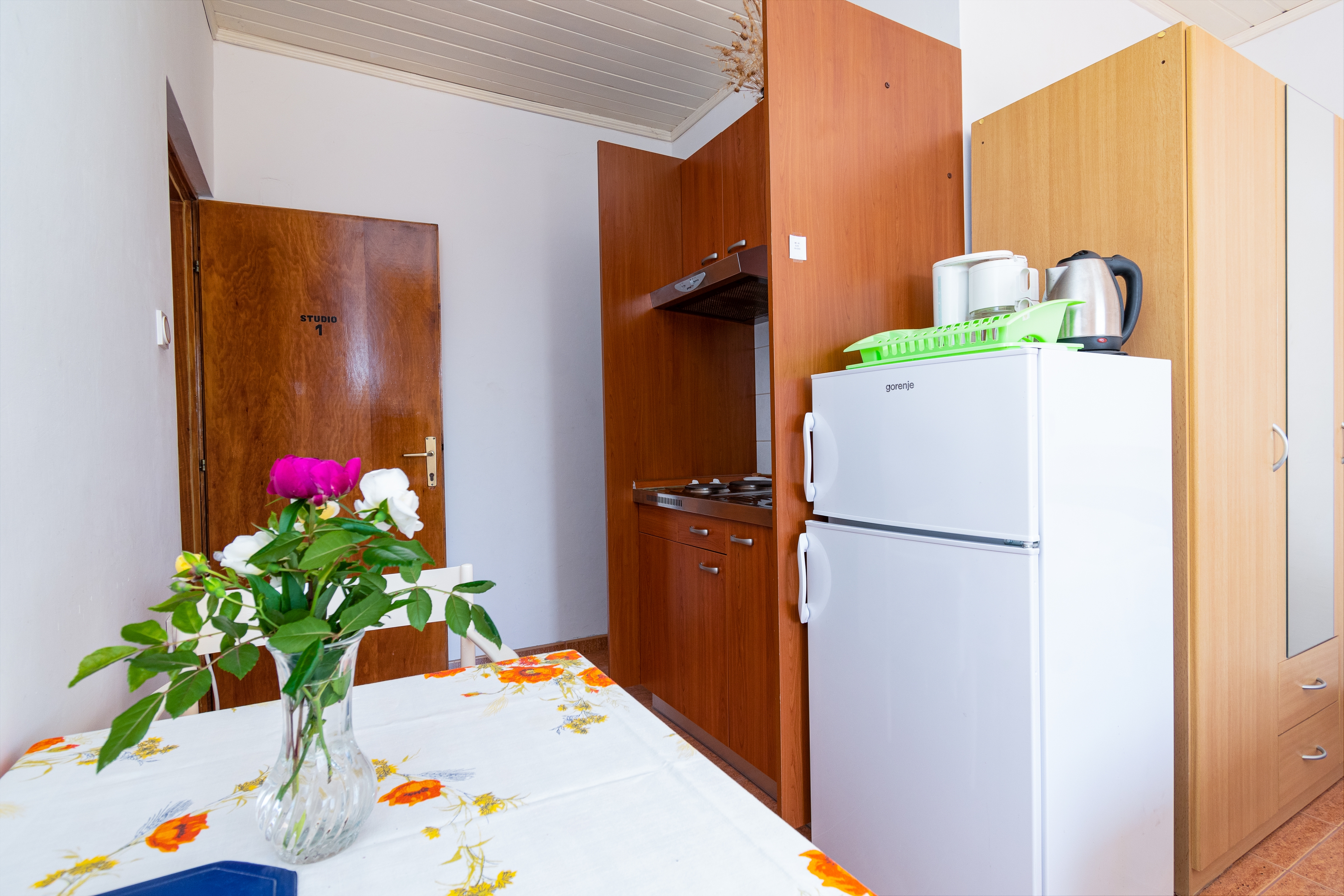 Studio flat can accommodate 2 guests. Beds are situated in 1 sleeping rooms, within 22m2. Guests can use a private terrace to enjoy the warm summer evenings. Food can be prepared using barbecue which is shared with other guests too. INCLUDED IN THE PRICE: tourist tax, final cleaning, air-conditioning, parking, internet, iron, ironing board. OBLIGATORY ADDITIONAL COSTS: short stay fee (surcharge depending on a number of booked nights: 30% - 1, 20% - 2, 10% - 3). OPTIONAL ADDITIONAL COSTS: additional bed (€10.00 per night). The availability of additional services for your chosen dates of stay, as well as their prices (if none are listed) must be checked ahead of time. Any additional services not shown in the price calculation are payable directly to the property owner and only if used by the visitor. Discounts to the base price: free day 14=13 (for reservations of 14 or more days you get one free day for the stay until 31122026).
