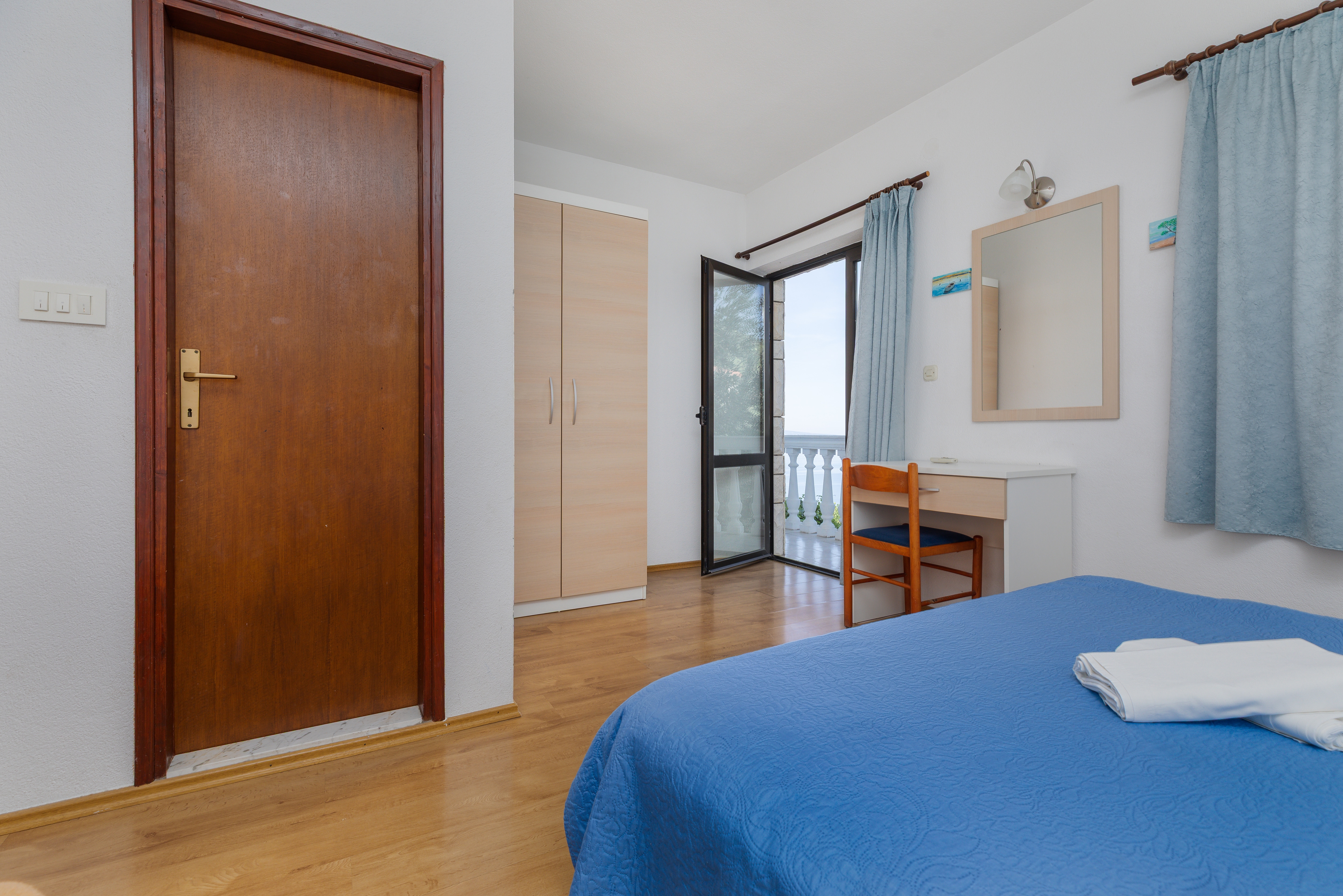 Room can accommodate 3 guests. Beds are situated in 1 sleeping rooms, within 18m2. Use of shared kitchen is possible. Guests can use a private balcony to enjoy the warm summer evenings. The room offers the sea view. Food can be prepared using barbecue which is shared with other guests too. Reserved accommodation unit is a room with its own bathroom and shared kitchen at no additional charge. INCLUDED IN THE PRICE: tourist tax, final cleaning, air-conditioning, shared kitchen, parking, internet, iron, ironing board, hairdryer. OPTIONAL ADDITIONAL COSTS: laundry (€5.00 washing). The availability of additional services for your chosen dates of stay, as well as their prices (if none are listed) must be checked ahead of time. Any additional services not shown in the price calculation are payable directly to the property owner and only if used by the visitor.