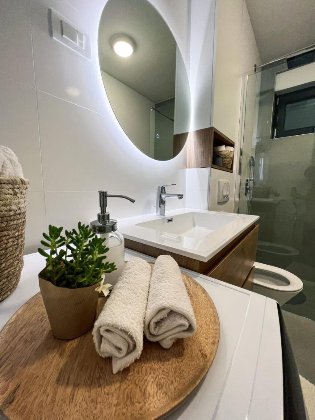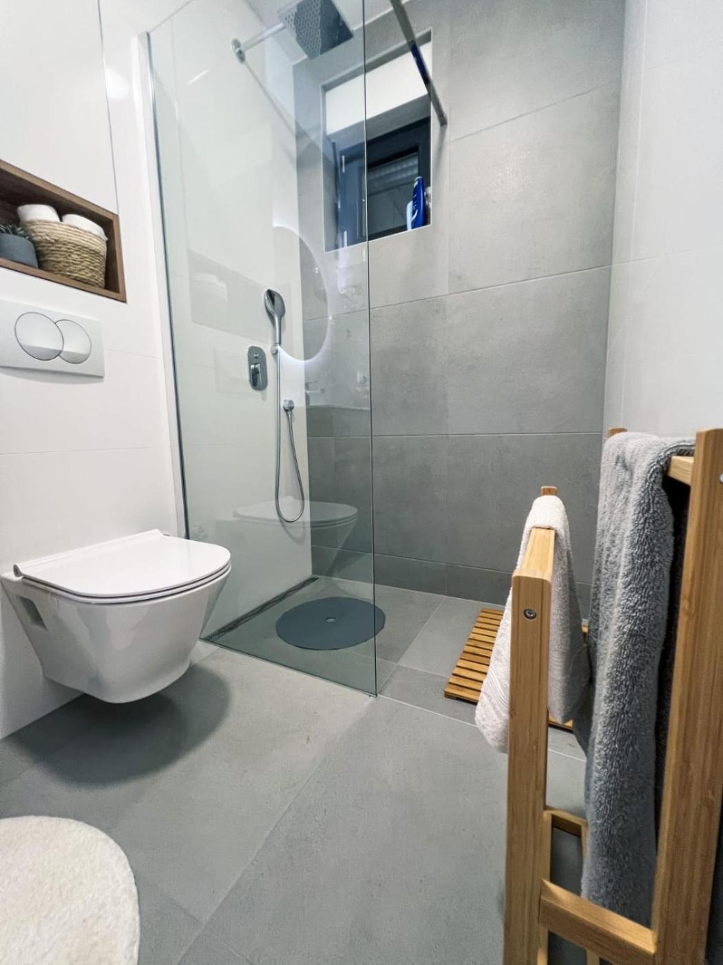 Two-Bedroom Apartment. Featuring a private entrance, this air-conditioned apartment comprises 1 living room, 2 separate bedrooms and 1 bathroom with a walk-in shower and a hairdryer. In the well-equipped kitchen, guests will find a stovetop, a refrigerator, a dishwasher and kitchenware. The spacious apartment provides a flat-screen TV with streaming services, a washing machine, a coffee machine, a seating area as well as sea views. The unit offers 4 beds.