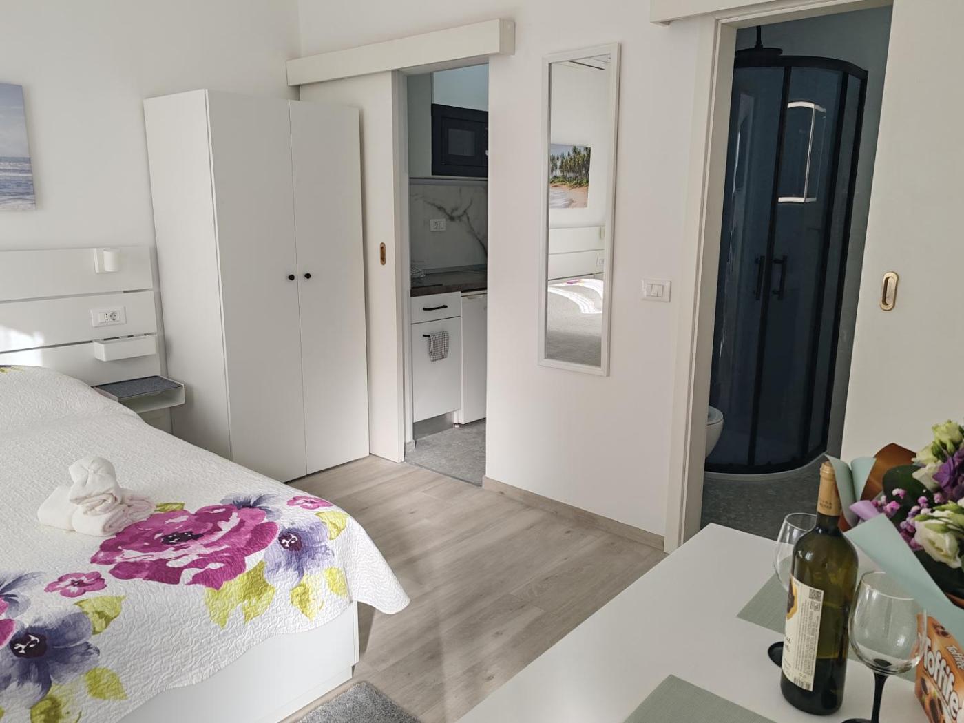Studio Apartment. Featuring a private entrance, this air-conditioned apartment comprises a kitchenette, 1 bedroom and 1 bathroom with a shower and a hairdryer. Guests can make meals in the kitchenette that is equipped with a stovetop, a refrigerator, kitchenware and a toaster. Boasting a terrace with garden views, this apartment also provides a seating area and a flat-screen TV with cable channels. The unit offers 1 bed.