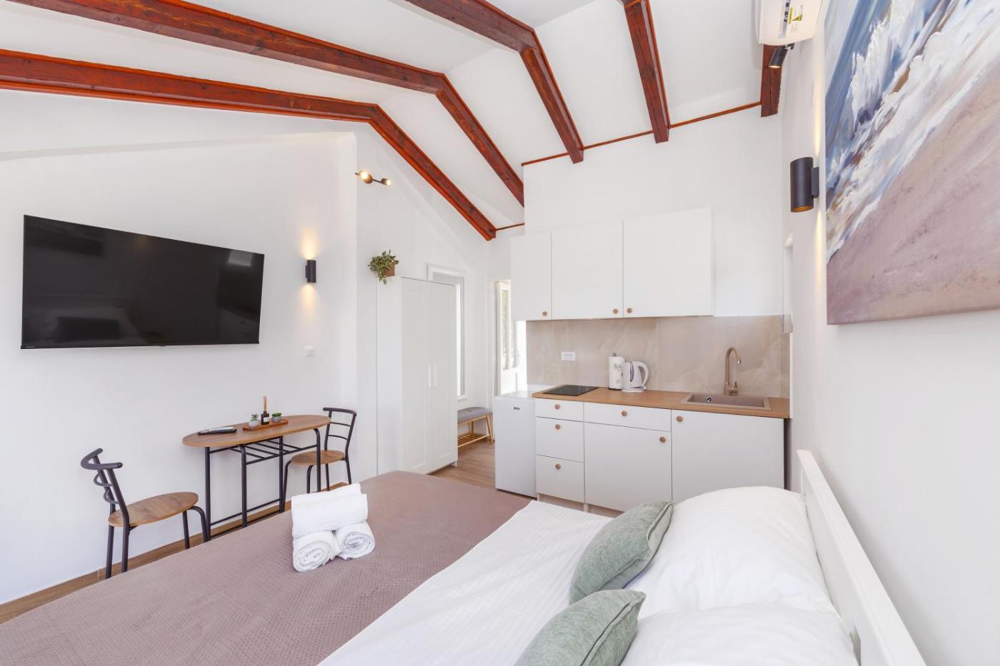 Situated in Mlini, 500 metres from Srebreno Beach and less than 1 km from Sub City Shopping Centre, Studio Petrunjela-Mlini offers a terrace and air conditioning. This property offers access to a balcony and free private parking. The property is non-smoking and is10 km from Orlando Column.