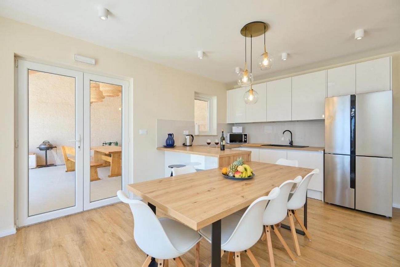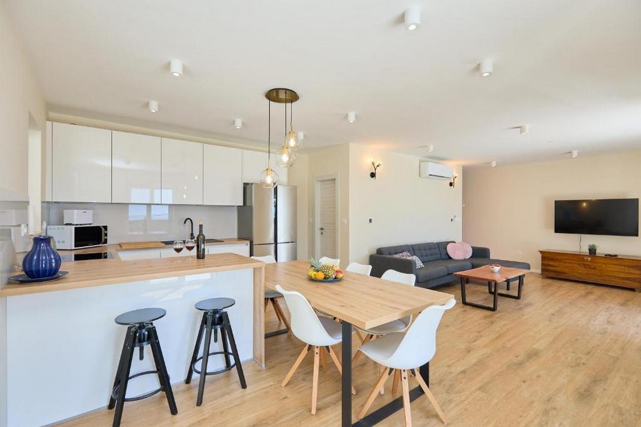 House can accommodate 6 guests. Beds are situated in 3 sleeping rooms, within 123m2. Guests can use a private terrace to enjoy the warm summer evenings. The house offers the sea view. For full enjoyment and relaxation there is a private barbecue for this accommodation guests only. During stay, there is a private pool for relaxation and pleasure. INCLUDED IN THE PRICE: tourist tax, final cleaning, air-conditioning, pool, parking, internet, baby cot, iron, ironing board, hairdryer. The availability of additional services for your chosen dates of stay, as well as their prices (if none are listed) must be checked ahead of time. Any additional services not shown in the price calculation are payable directly to the property owner and only if used by the visitor.