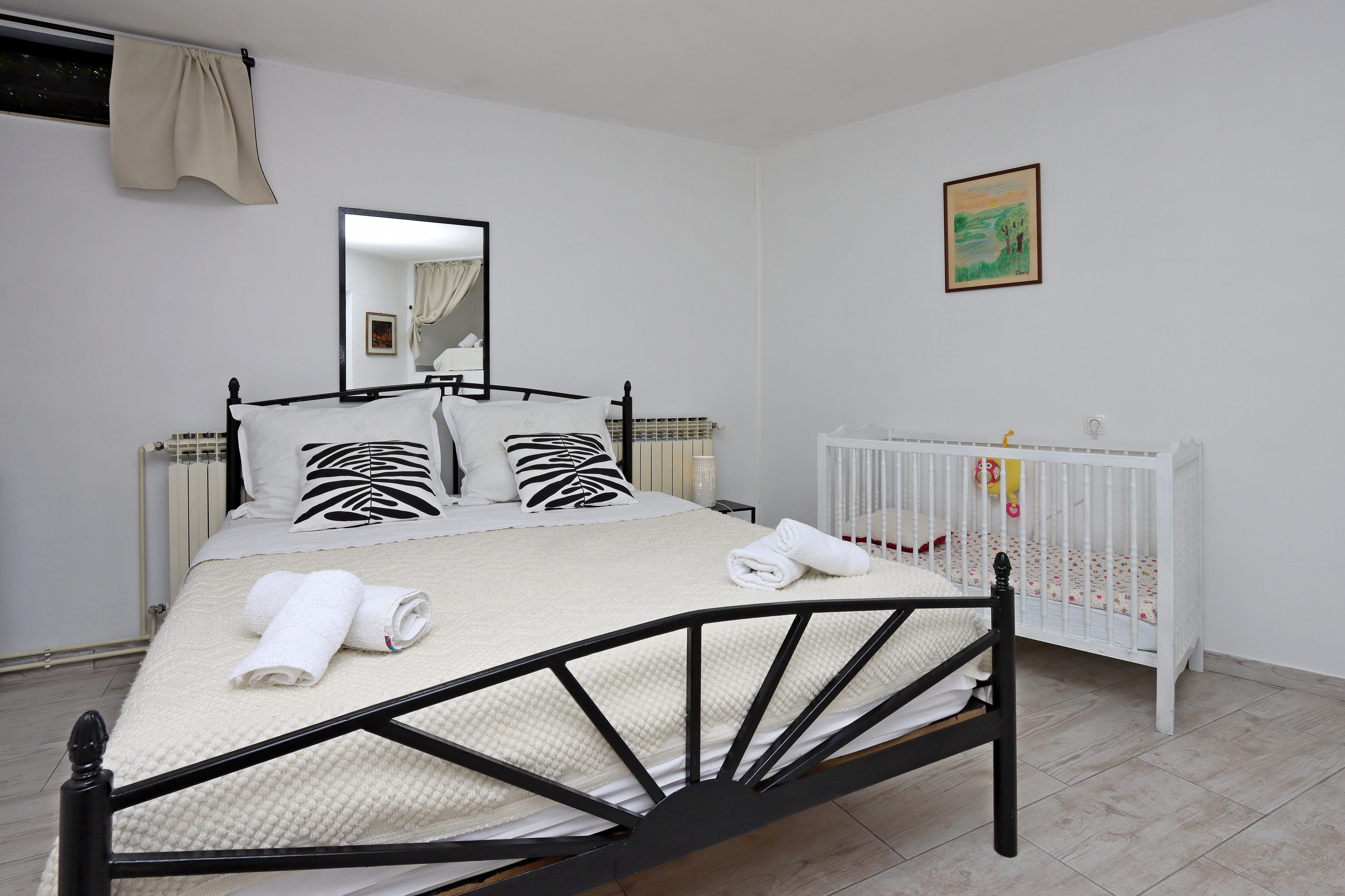 House can accommodate 2 guests. Beds are situated in 1 sleeping rooms, within 65m2. Guests can use a private terrace to enjoy the warm summer evenings. For full enjoyment and relaxation there is a private barbecue for this accommodation guests only. This accommodation unit welcomes pets at an additional charge. INCLUDED IN THE PRICE: tourist tax, final cleaning, air-conditioning, central heating, parking, internet, baby cot, iron, ironing board, hairdryer, 1 bed for children (included in the price). OBLIGATORY ADDITIONAL COSTS: short stay fee (surcharge depending on a number of booked nights: 30% - 1, 20% - 2, 10% - 3). OPTIONAL ADDITIONAL COSTS: pets (€7.00 per night). The availability of additional services for your chosen dates of stay, as well as their prices (if none are listed) must be checked ahead of time. Any additional services not shown in the price calculation are payable directly to the property owner and only if used by the visitor.