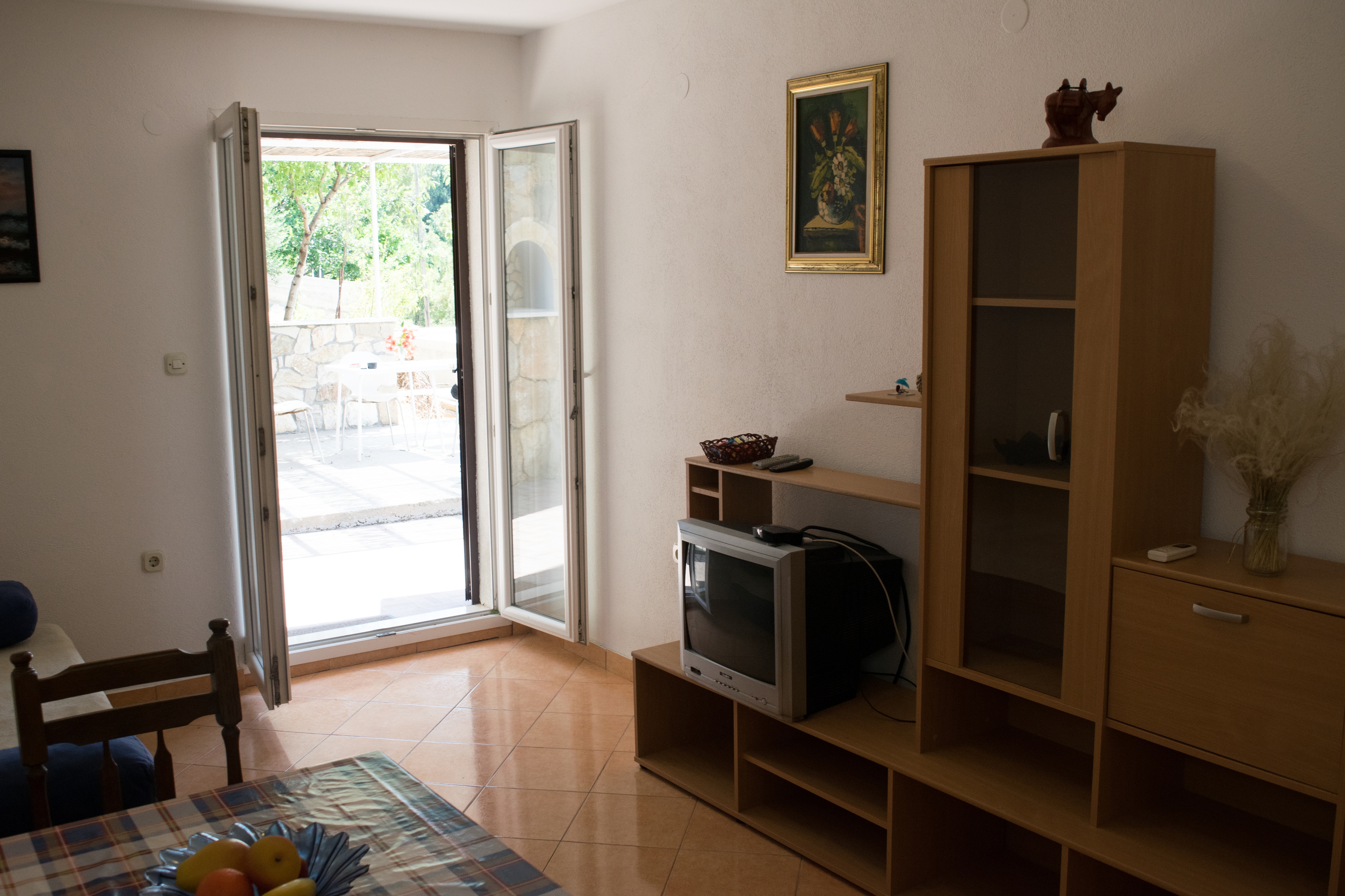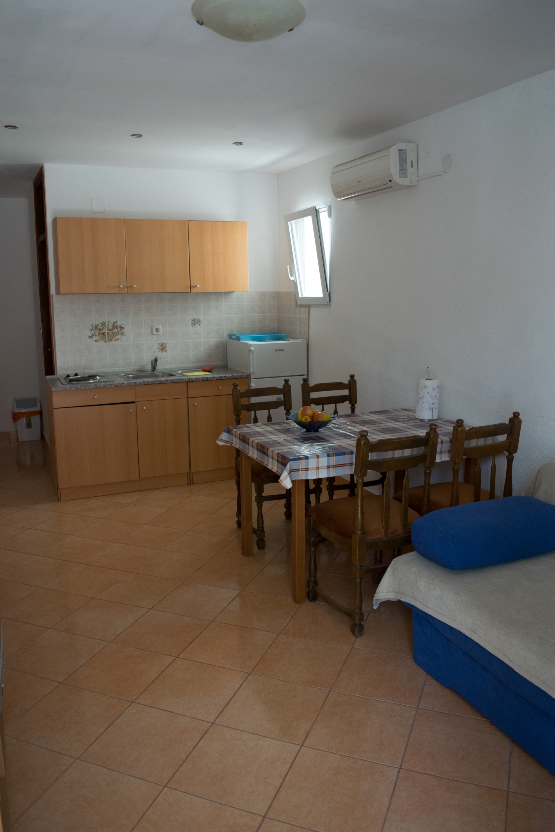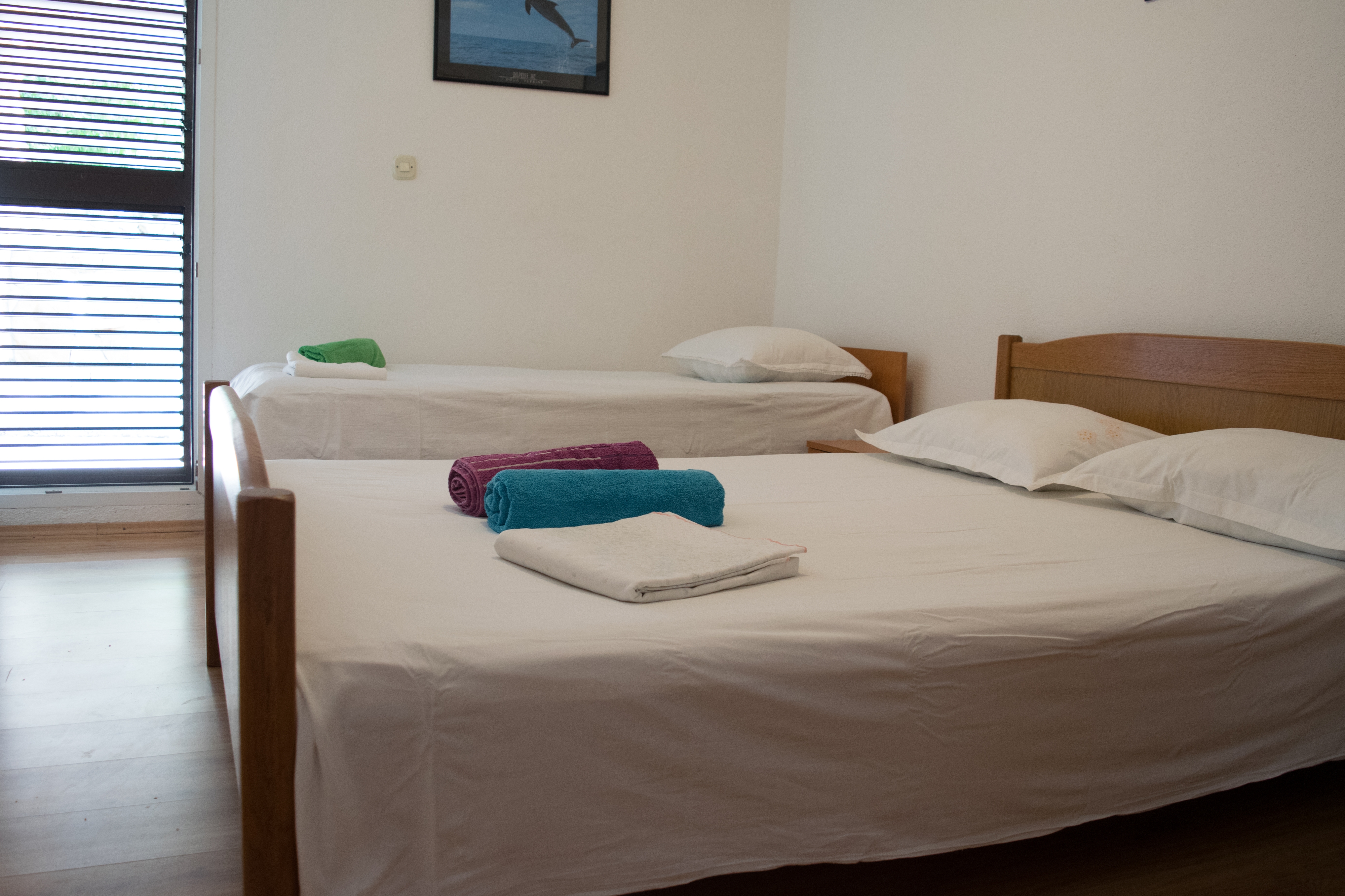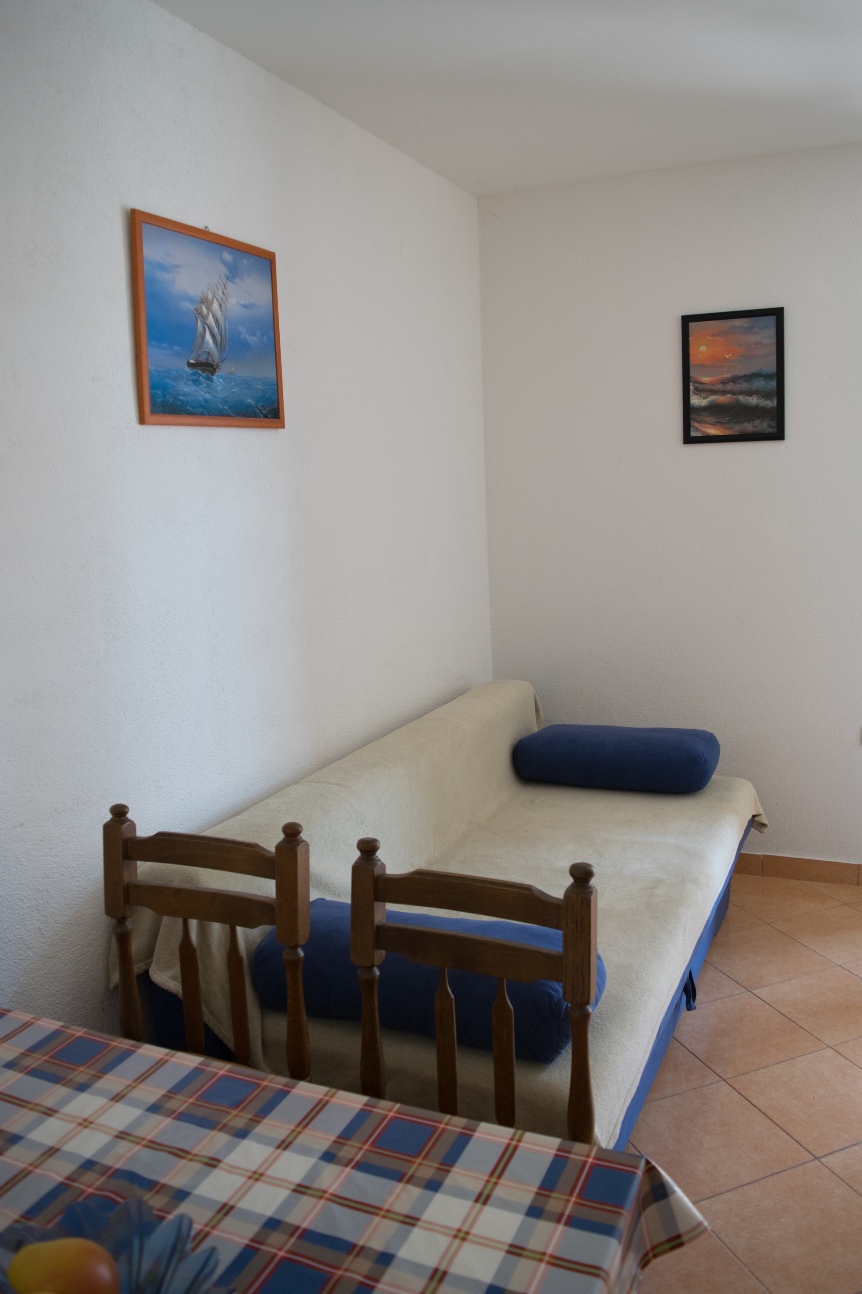 Apartment can accommodate 4 guests. Beds are situated in 1 sleeping rooms, but also in the dining room, within 34m2. Guests can use a private terrace to enjoy the warm summer evenings. The apartment offers the sea view. Food can be prepared using barbecue which is shared with other guests too. This accommodation unit welcomes pets at an additional charge. INCLUDED IN THE PRICE: tourist tax, final cleaning, air-conditioning, parking, internet, additional bed, iron, ironing board. OBLIGATORY ADDITIONAL COSTS: short stay fee (surcharge depending on a number of booked nights: 30% - 1, 20% - 2, 10% - 3). OPTIONAL ADDITIONAL COSTS: pets (€5.00 per night). The availability of additional services for your chosen dates of stay, as well as their prices (if none are listed) must be checked ahead of time. Any additional services not shown in the price calculation are payable directly to the property owner and only if used by the visitor.