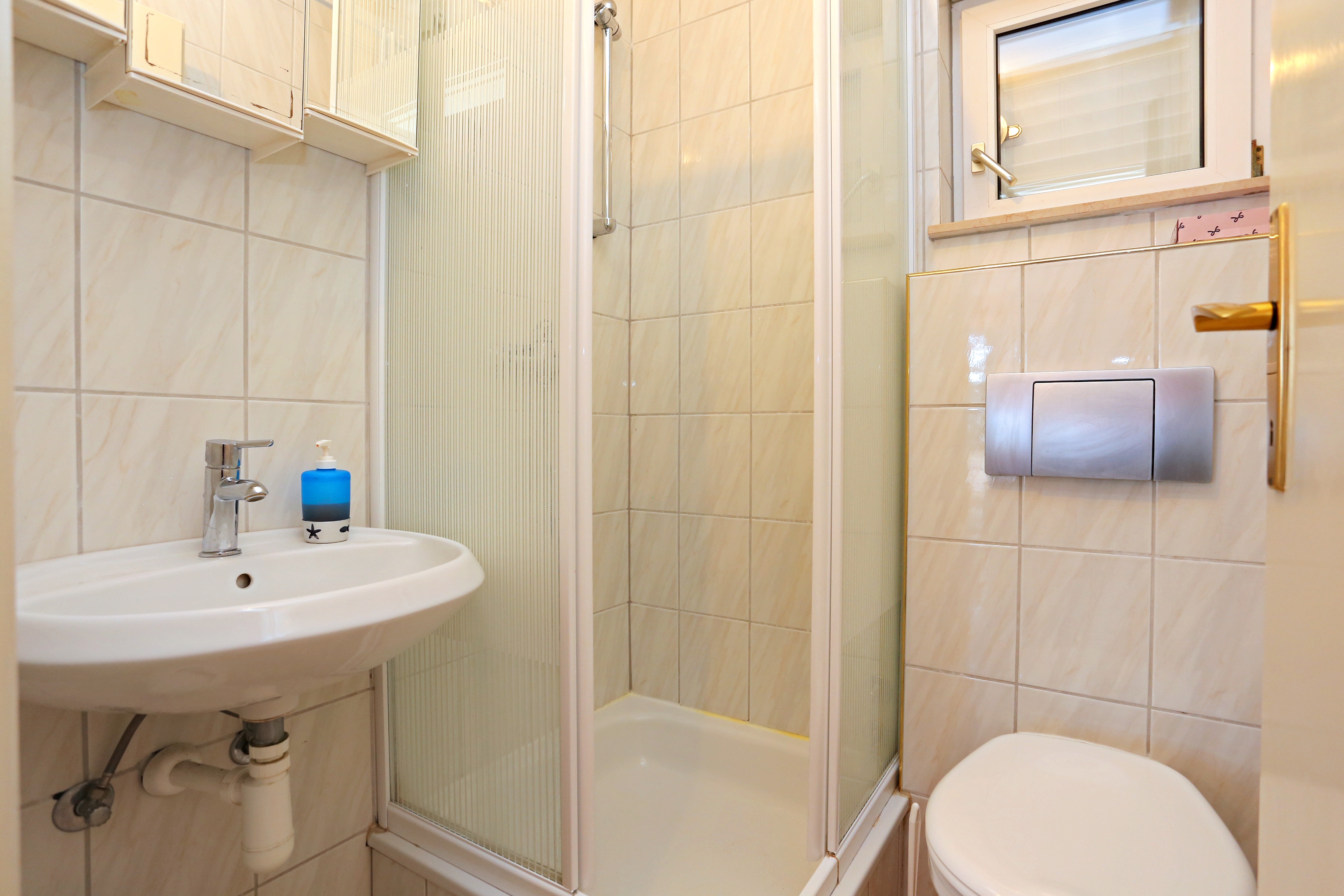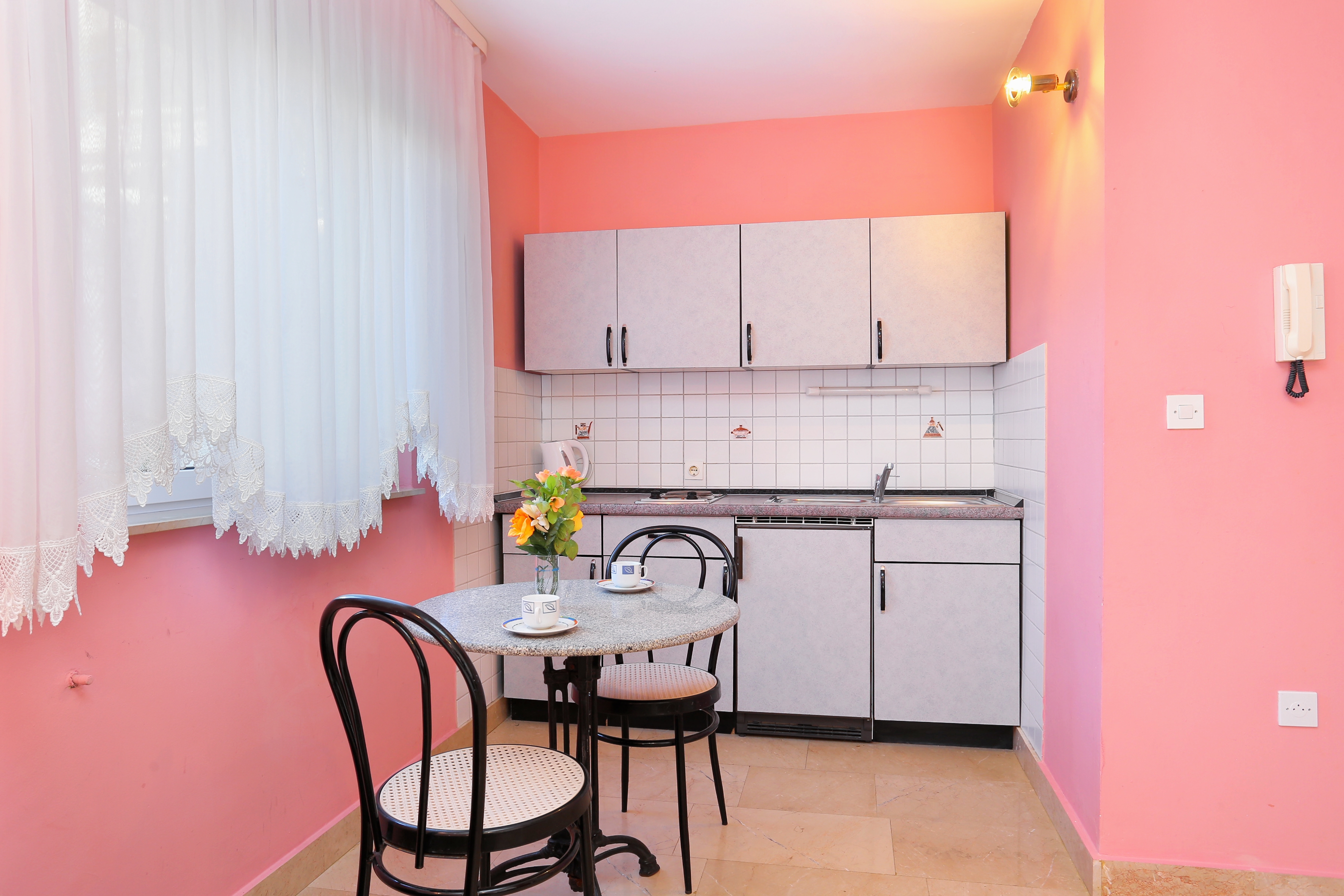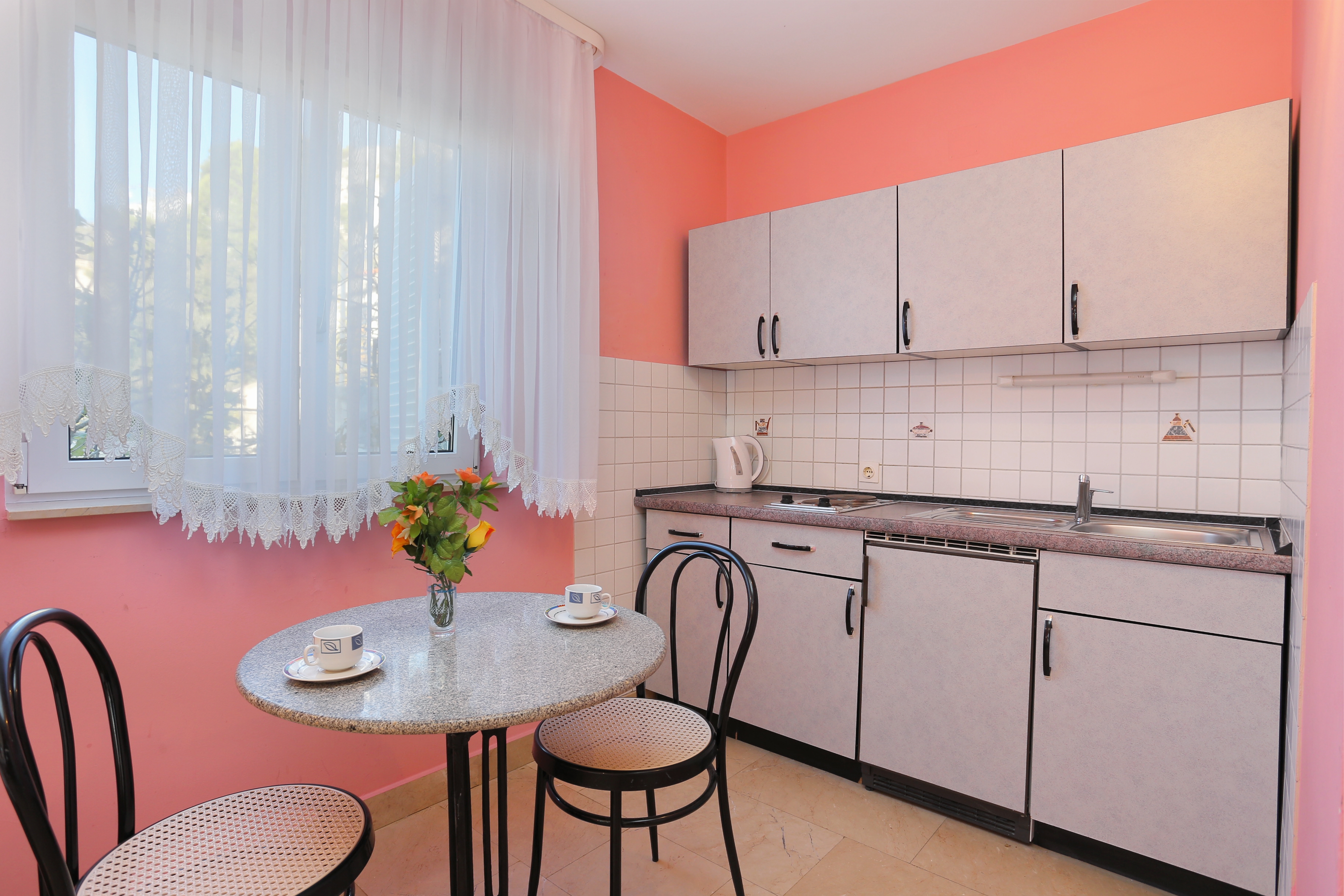 Studio flat can accommodate 3 guests. Beds are situated in 1 sleeping rooms, within 25m2. Guests can use a private terrace to enjoy the warm summer evenings. The studio offers the sea view. Food can be prepared using barbecue which is shared with other guests too. INCLUDED IN THE PRICE: tourist tax, final cleaning, air-conditioning, parking, internet, baby cot, iron, ironing board, hairdryer, portable barbecue. OBLIGATORY ADDITIONAL COSTS: short stay fee (surcharge depending on a number of booked nights: 30% - 1, 20% - 2, 10% - 3). OPTIONAL ADDITIONAL COSTS: laundry (€3.00 washing), additional bed (€5.00 per night). The availability of additional services for your chosen dates of stay, as well as their prices (if none are listed) must be checked ahead of time. Any additional services not shown in the price calculation are payable directly to the property owner and only if used by the visitor.