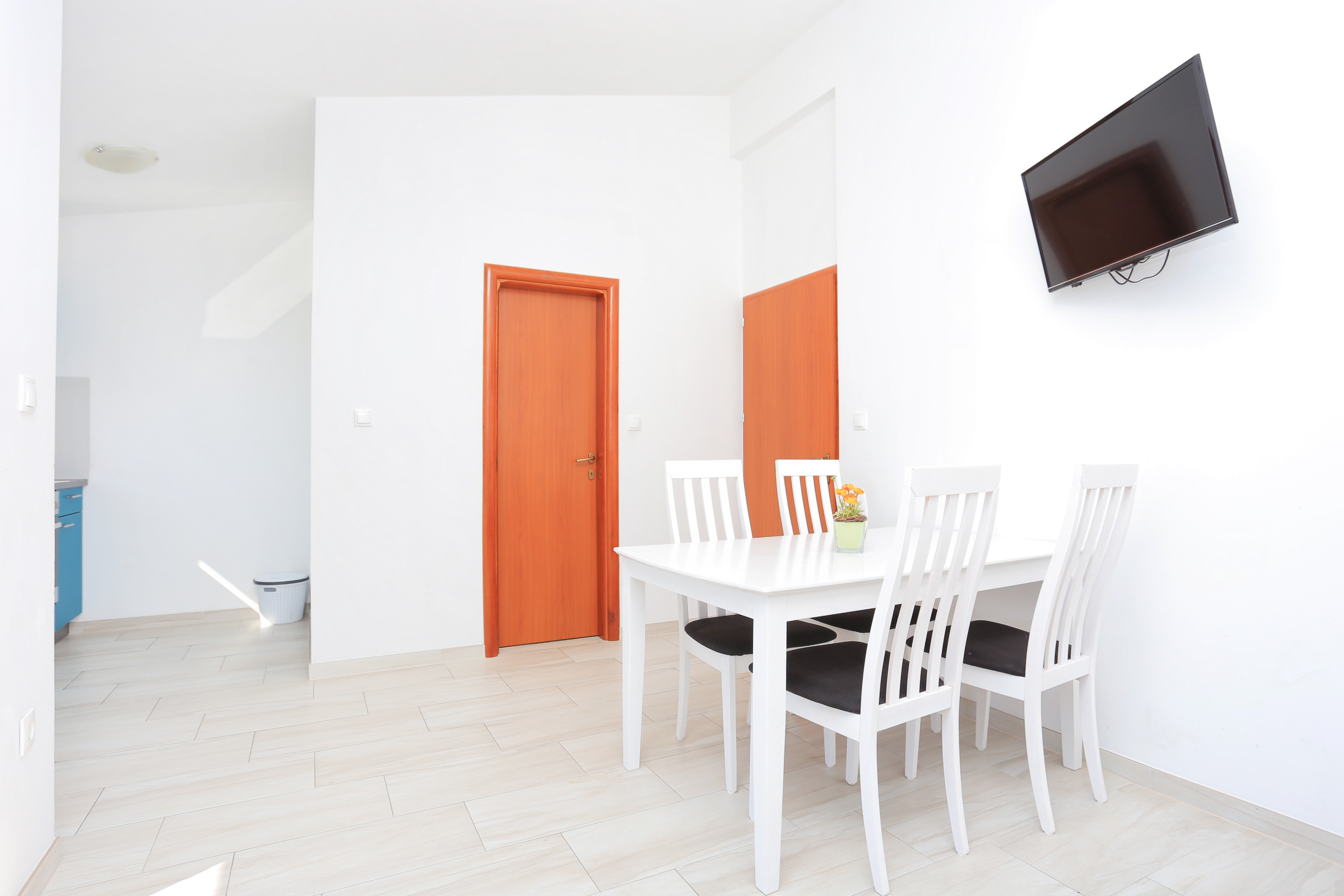Apartment can accommodate 6 guests. Beds are situated in 2 sleeping rooms, but also in the living room, within 51m2. Guests can use a private terrace to enjoy the warm summer evenings. The apartment offers the sea view. Food can be prepared using barbecue which is shared with other guests too. This accommodation unit welcomes pets at an additional charge. INCLUDED IN THE PRICE: tourist tax, final cleaning, air-conditioning, parking, internet, baby cot, iron, ironing board, hairdryer. OBLIGATORY ADDITIONAL COSTS: short stay fee (surcharge depending on a number of booked nights: 30% - 1, 20% - 2, 10% - 3). OPTIONAL ADDITIONAL COSTS: laundry (€5.00 washing), pets (€5.00 per night). The availability of additional services for your chosen dates of stay, as well as their prices (if none are listed) must be checked ahead of time. Any additional services not shown in the price calculation are payable directly to the property owner and only if used by the visitor.