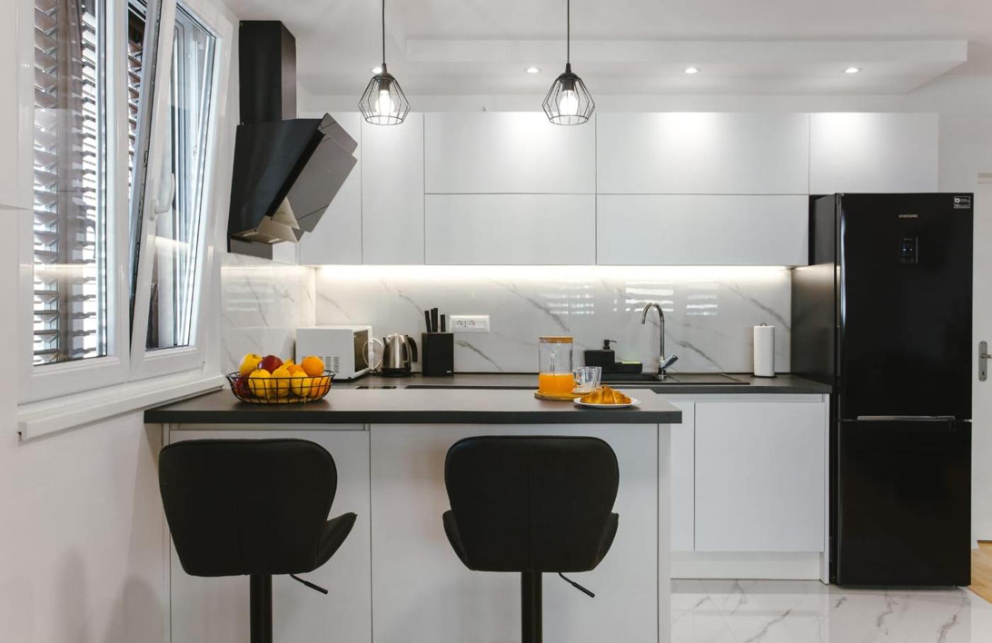 Two-Bedroom Apartment. This spacious apartment features 1 living room, 2 separate bedrooms and 1 bathroom with a walk-in shower and free toiletries. Meals can be prepared in the well-fitted kitchen, which features a stovetop, a refrigerator, a dishwasher and kitchenware. The air-conditioned apartment features a flat-screen TV with cable channels, a washing machine, soundproof walls, a seating area as well as sea views. The unit has 4 beds.