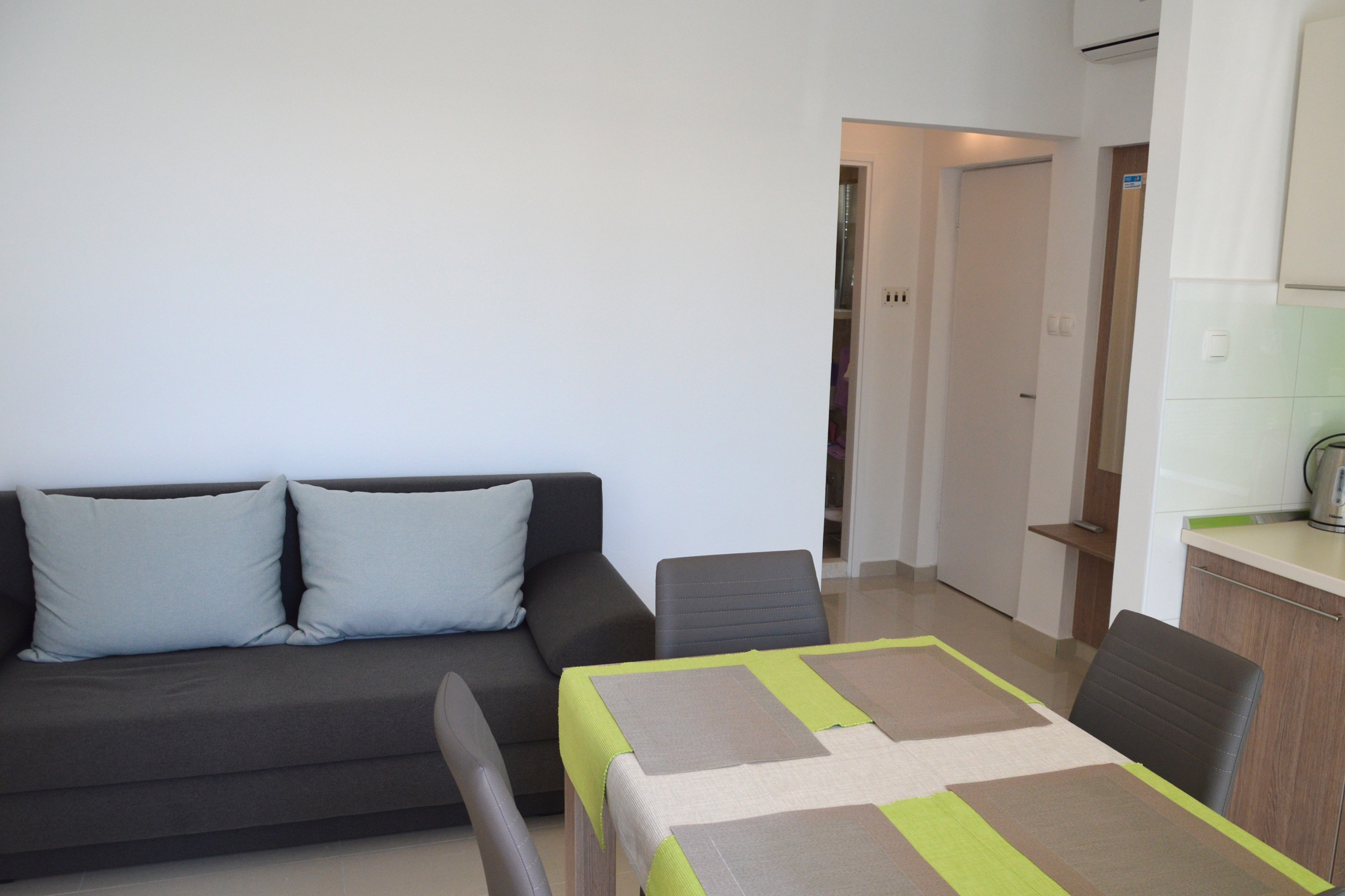 Apartment can accommodate 4 guests. Beds are situated in 1 sleeping rooms, but also in the dining room, within 33m2. Guests can use a private balcony to enjoy the warm summer evenings. The apartment offers the sea view. Food can be prepared using barbecue which is shared with other guests too. This accommodation unit welcomes pets at an additional charge. INCLUDED IN THE PRICE: tourist tax, final cleaning, parking, garage, internet, laundry, additional bed, iron, ironing board, hairdryer, sunshade. OBLIGATORY ADDITIONAL COSTS: short stay fee (surcharge depending on a number of booked nights: 30% - 1, 20% - 2, 10% - 3). OPTIONAL ADDITIONAL COSTS: air-conditioning (€5.00 per night), boat mooring (€20.00 per night), pets (€10.00 per night). The availability of additional services for your chosen dates of stay, as well as their prices (if none are listed) must be checked ahead of time. Any additional services not shown in the price calculation are payable directly to the property owner and only if used by the visitor. Discounts to the base price: free day 14=13 (for reservations of 14 or more days you get one free day for the stay until 31122026).