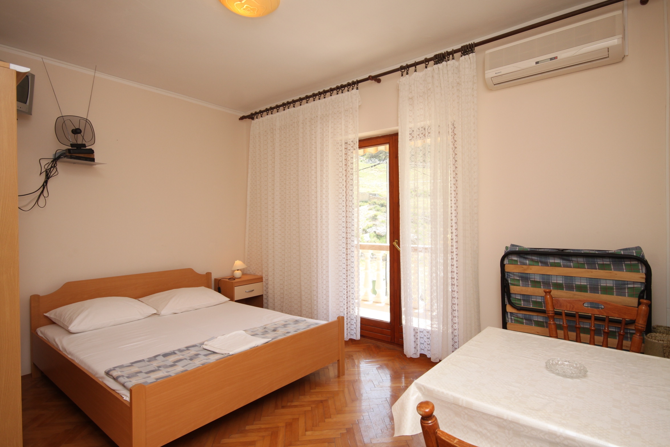 Studio flat can accommodate 2 guests. Beds are situated in 1 sleeping rooms, within 20m2. Guests can use a private balcony to enjoy the warm summer evenings. The studio offers the sea view. Food can be prepared using barbecue which is shared with other guests too. INCLUDED IN THE PRICE: tourist tax, final cleaning, air-conditioning, parking, internet, boat mooring. OBLIGATORY ADDITIONAL COSTS: short stay fee (surcharge depending on a number of booked nights: 30% - 1, 20% - 2, 10% - 3). The availability of additional services for your chosen dates of stay, as well as their prices (if none are listed) must be checked ahead of time. Any additional services not shown in the price calculation are payable directly to the property owner and only if used by the visitor. Discounts to the base price: free day 14=13 (for reservations of 14 or more days you get one free day for the stay until 31122026).