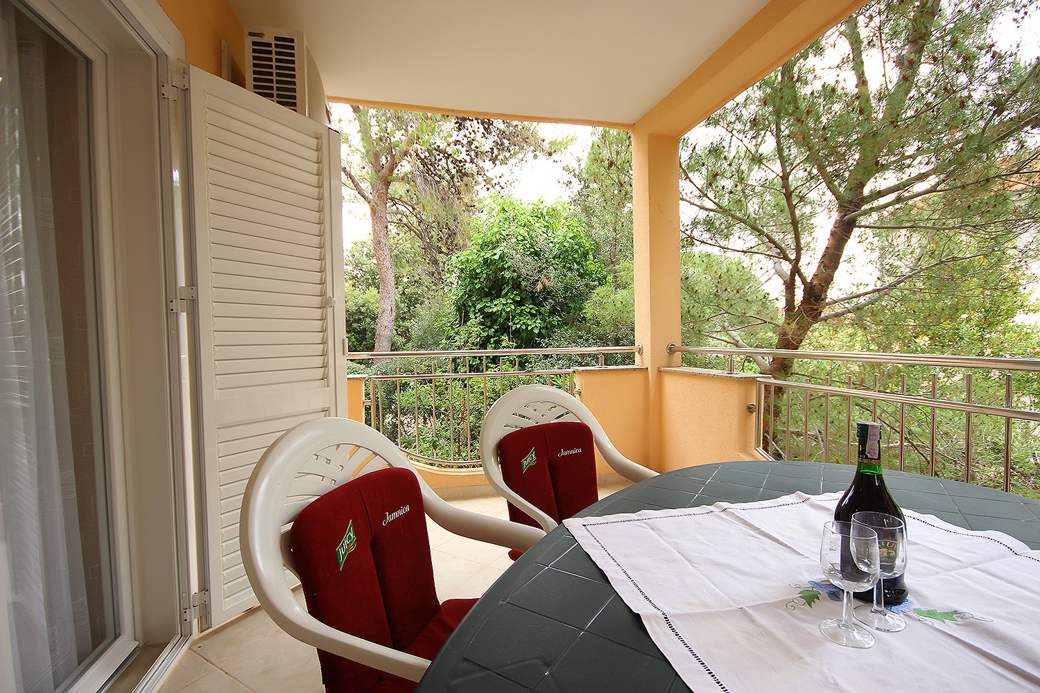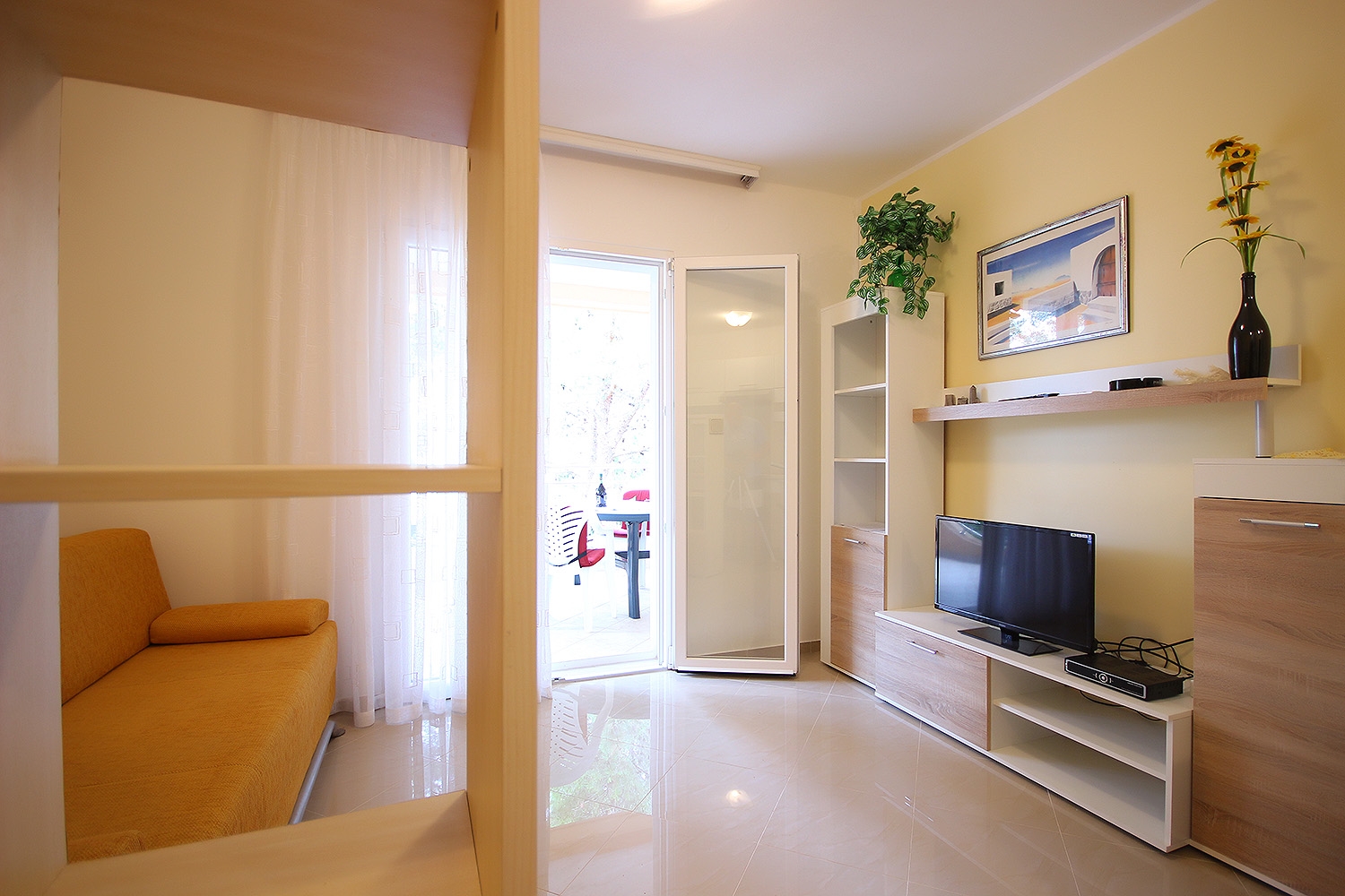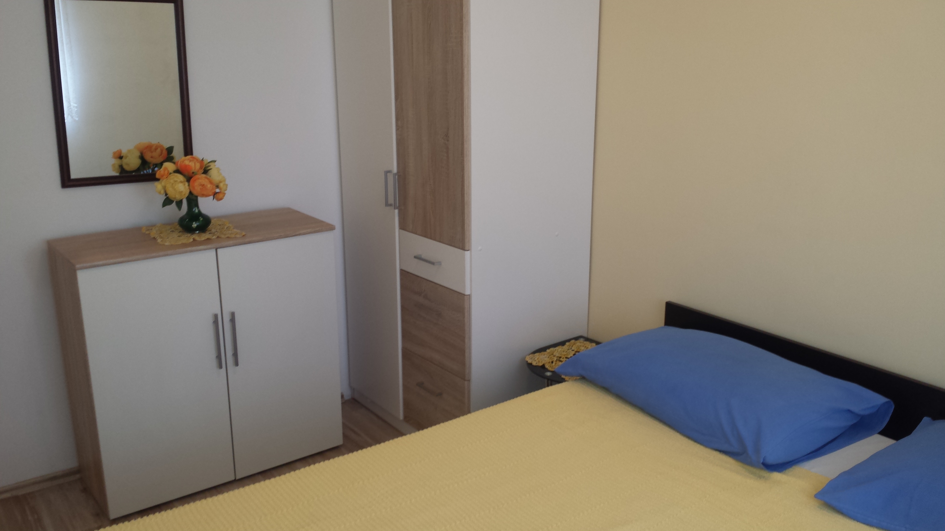Apartment can accommodate 3 guests. Beds are situated in 1 sleeping rooms, but also in the living room, within 31m2. Guests can use a private terrace to enjoy the warm summer evenings. Food can be prepared using barbecue which is shared with other guests too. This accommodation unit welcomes pets at an additional charge. INCLUDED IN THE PRICE: tourist tax, final cleaning, air-conditioning, parking, internet, baby cot, iron, ironing board, hairdryer. OPTIONAL ADDITIONAL COSTS: laundry (€10.00 washing), pets (€10.00 per night), additional bed (€20.00 per night). The availability of additional services for your chosen dates of stay, as well as their prices (if none are listed) must be checked ahead of time. Any additional services not shown in the price calculation are payable directly to the property owner and only if used by the visitor. Discounts to the base price: free day 14=13 (for reservations of 14 or more days you get one free day for the stay until 31122026).