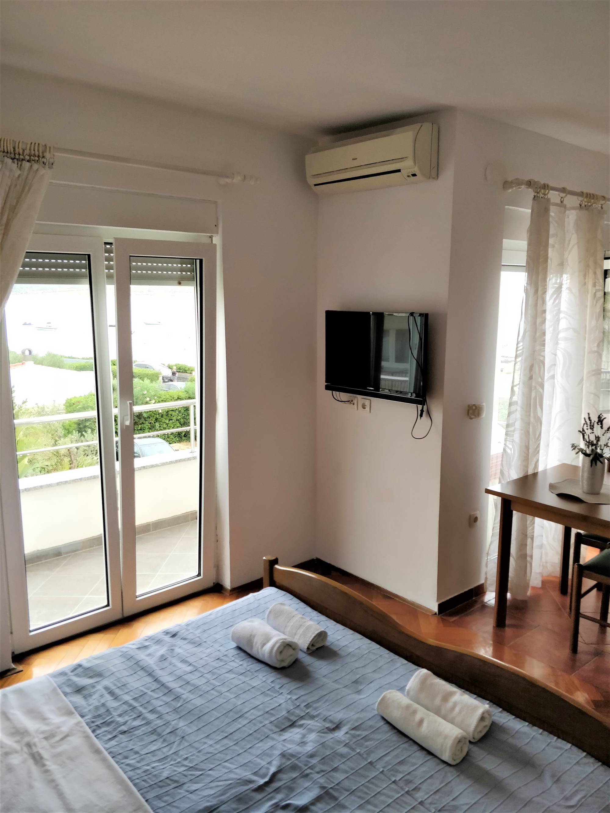 Studio flat can accommodate 2 guests. Beds are situated in 1 sleeping rooms, within 24m2. Guests can use a private balcony to enjoy the warm summer evenings. The studio offers the sea view. For the booked accommodation unit the deposit is paid directly to the owner upon check-in (deposit amount is displayed on the website) INCLUDED IN THE PRICE: tourist tax, final cleaning, air-conditioning, parking, internet, iron, ironing board, hairdryer. OBLIGATORY ADDITIONAL COSTS: deposit (€150.00 one-time payment). The availability of additional services for your chosen dates of stay, as well as their prices (if none are listed) must be checked ahead of time. Any additional services not shown in the price calculation are payable directly to the property owner and only if used by the visitor. Discounts to the base price: free day 14=13 (for reservations of 14 or more days you get one free day for the stay until 31122026).
