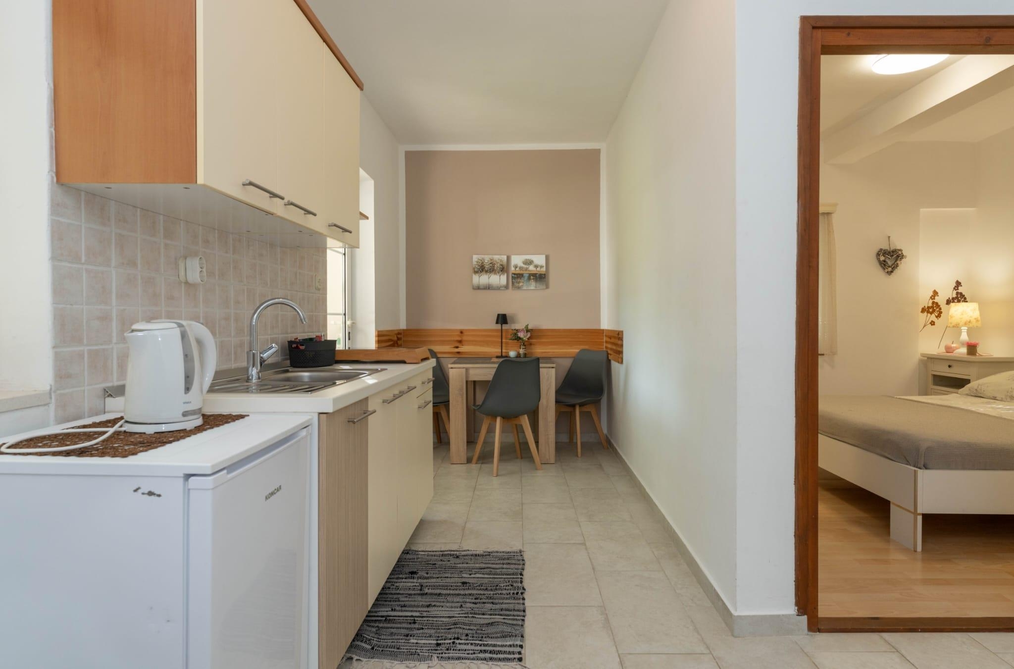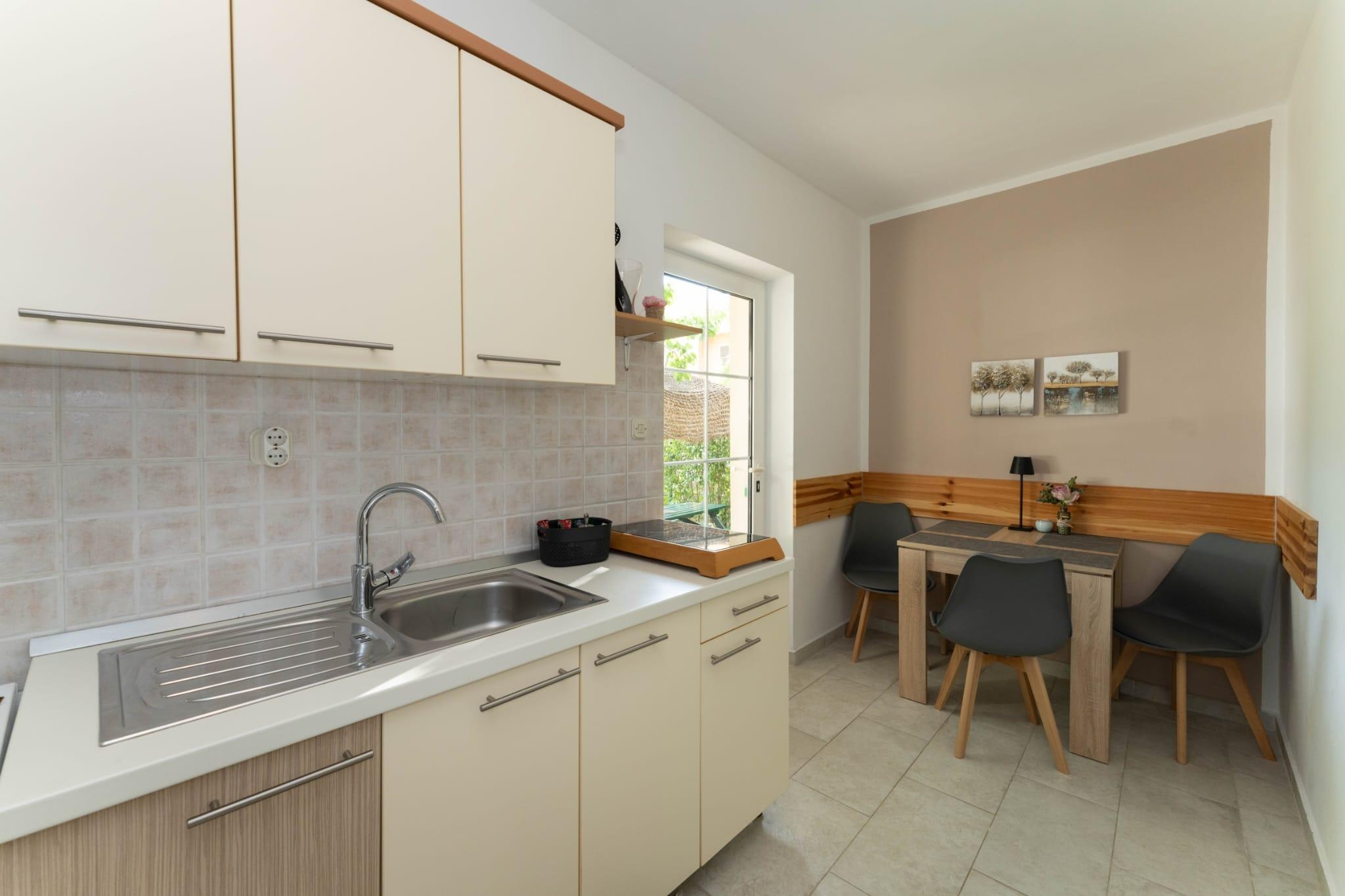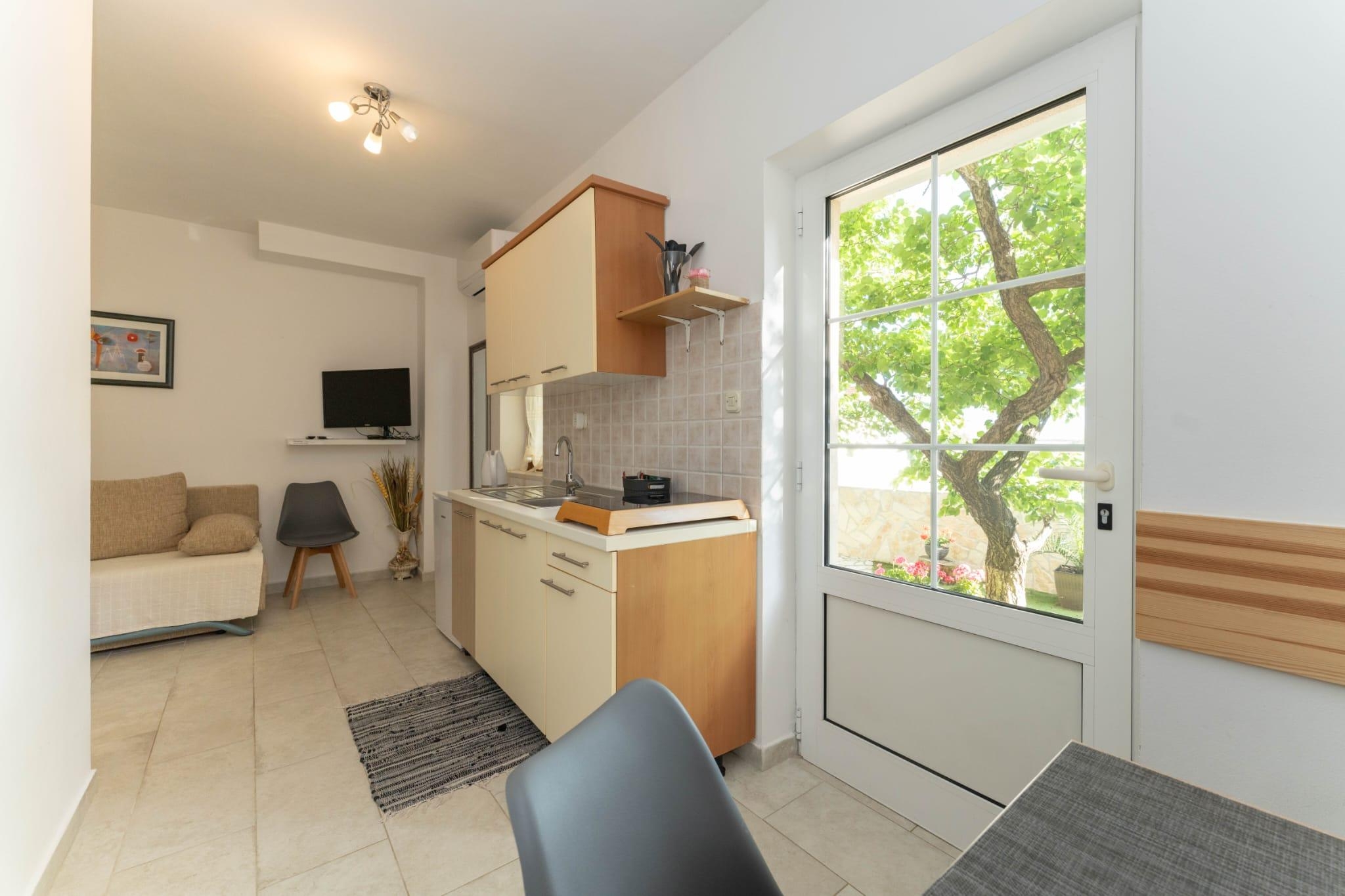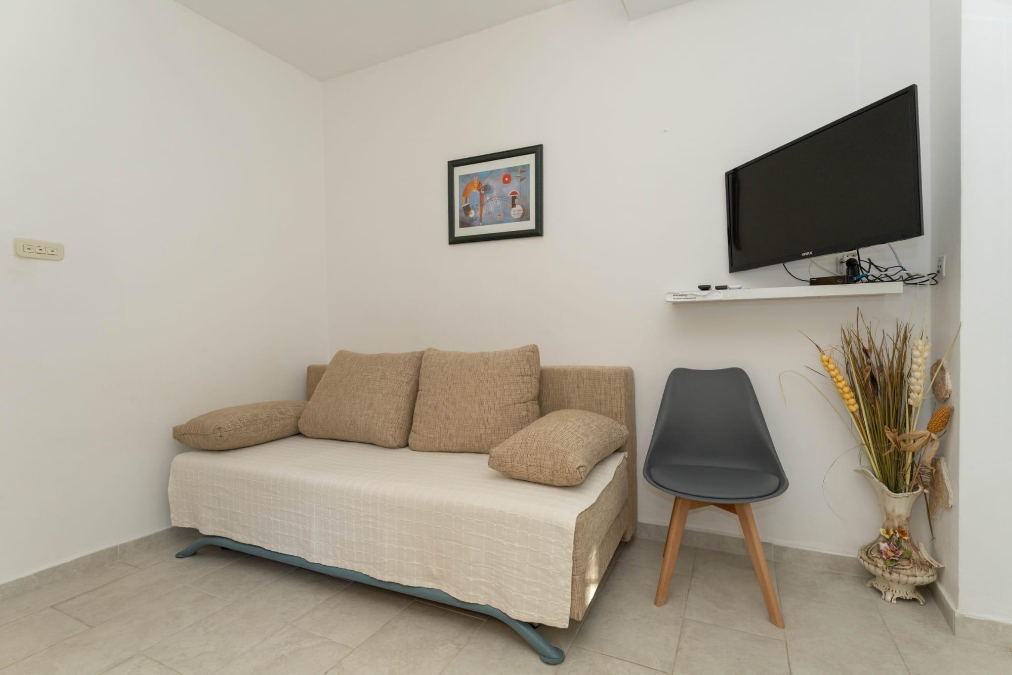 Apartment can accommodate 4 guests. Beds are situated in 1 sleeping rooms, but also in the living room, within 27m2. Guests can use a private terrace to enjoy the warm summer evenings. Food can be prepared using barbecue which is shared with other guests too. INCLUDED IN THE PRICE: tourist tax, final cleaning, air-conditioning, parking, internet, baby cot, ironing board, hairdryer. The availability of additional services for your chosen dates of stay, as well as their prices (if none are listed) must be checked ahead of time. Any additional services not shown in the price calculation are payable directly to the property owner and only if used by the visitor. Discounts to the base price: free day 14=13 (for reservations of 14 or more days you get one free day for the stay until 31122026).