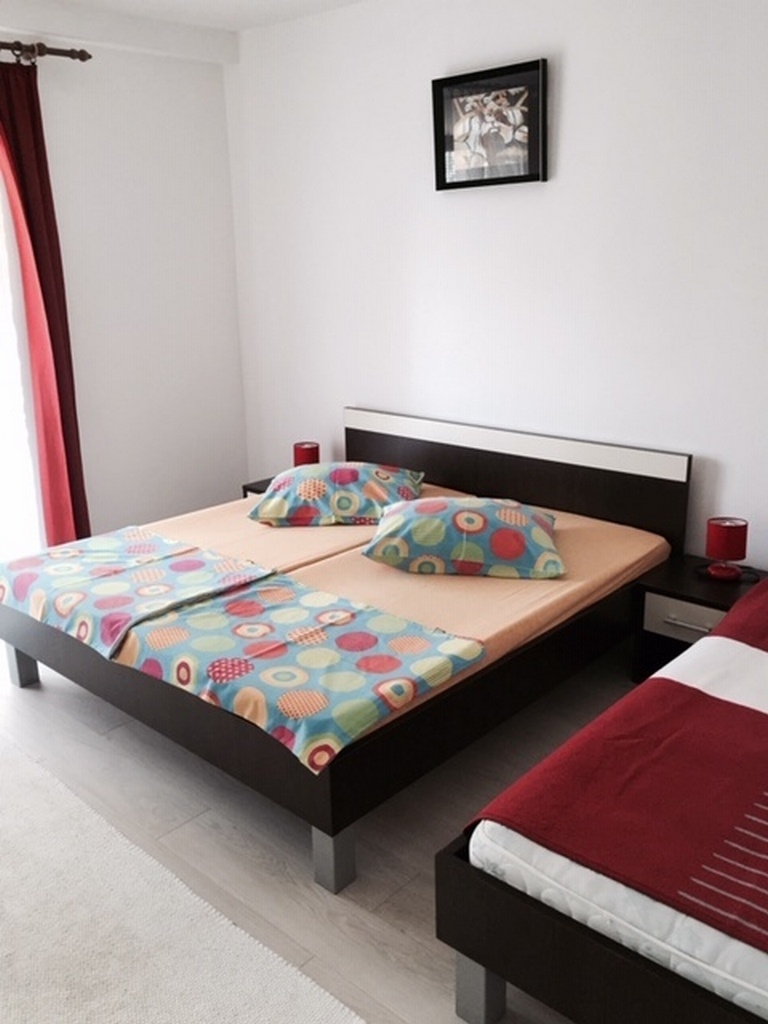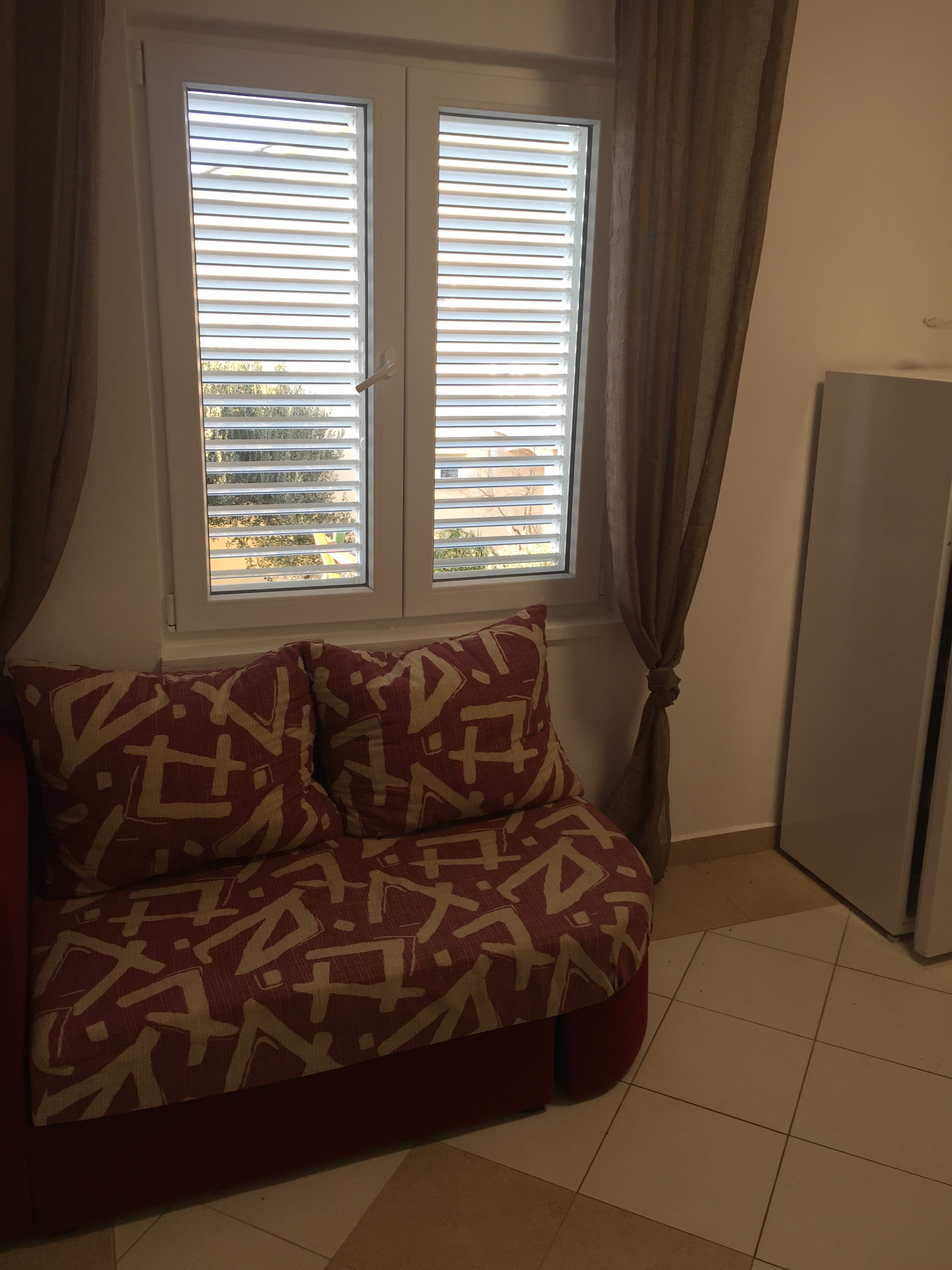 Apartment can accommodate 6 guests. Beds are situated in 2 sleeping rooms, but also in the dining room, within 42m2. Guests can use a private terrace to enjoy the warm summer evenings. The apartment offers the sea view. Food can be prepared using barbecue which is shared with other guests too. This accommodation unit welcomes pets at an additional charge. Some of the rooms of the accommodation unit are not connected with the rest of the unit. INCLUDED IN THE PRICE: tourist tax, final cleaning, parking, internet, boat mooring, hairdryer, sunshade, sunchairs. OBLIGATORY ADDITIONAL COSTS: short stay fee (surcharge depending on a number of booked nights: 30% - 1, 20% - 2, 10% - 3). OPTIONAL ADDITIONAL COSTS: air-conditioning (€5.00 per night), pets (€5.00 per night). The availability of additional services for your chosen dates of stay, as well as their prices (if none are listed) must be checked ahead of time. Any additional services not shown in the price calculation are payable directly to the property owner and only if used by the visitor.