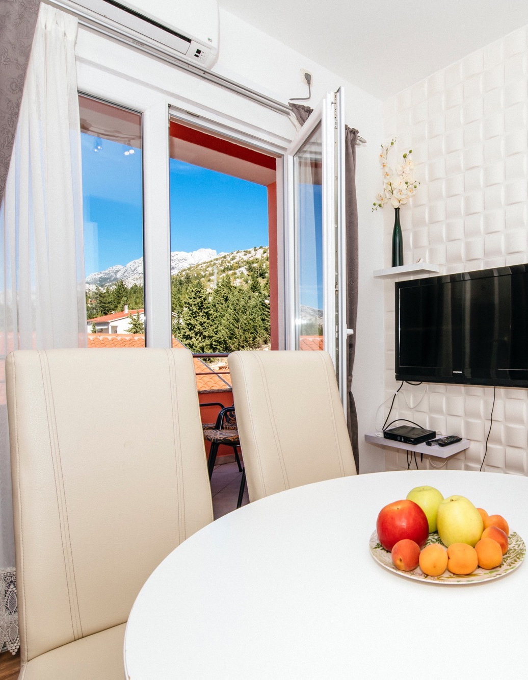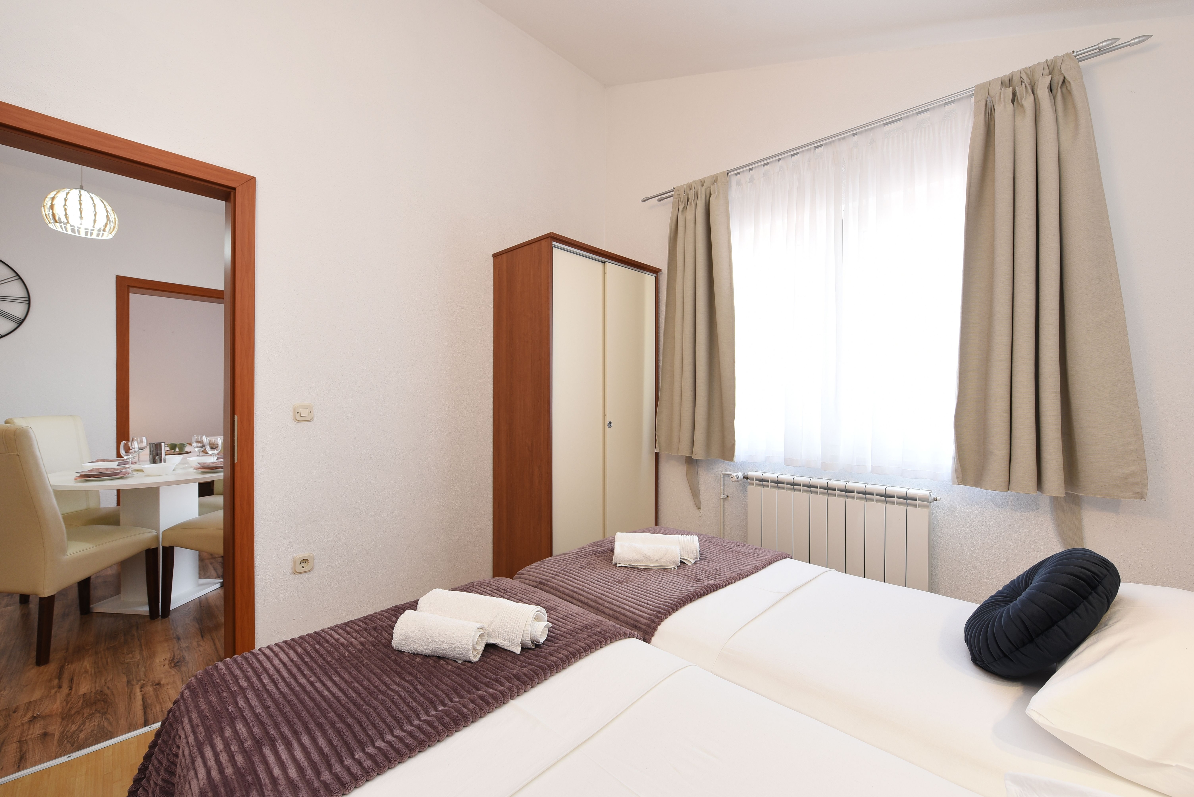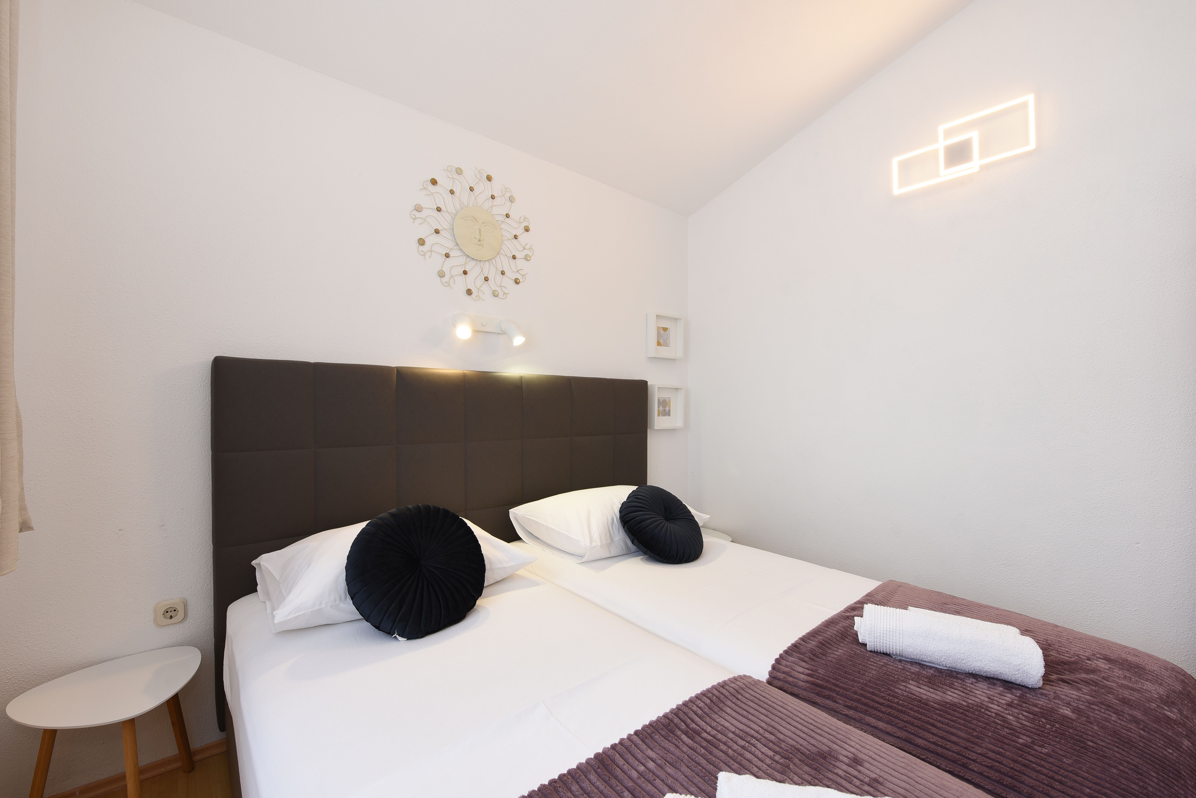 Apartment can accommodate 4 guests. Beds are situated in 2 sleeping rooms, within 41m2. Guests can use a private balcony to enjoy the warm summer evenings. The apartment offers the sea view. For the booked accommodation unit the deposit is paid directly to the owner upon check-in (deposit amount is displayed on the website) INCLUDED IN THE PRICE: tourist tax, final cleaning, air-conditioning, central heating, parking, internet, baby cot, iron, hairdryer. OBLIGATORY ADDITIONAL COSTS: deposit (€200.00 one-time payment), short stay fee (surcharge depending on a number of booked nights: 30% - 1, 20% - 2, 10% - 3). The availability of additional services for your chosen dates of stay, as well as their prices (if none are listed) must be checked ahead of time. Any additional services not shown in the price calculation are payable directly to the property owner and only if used by the visitor.