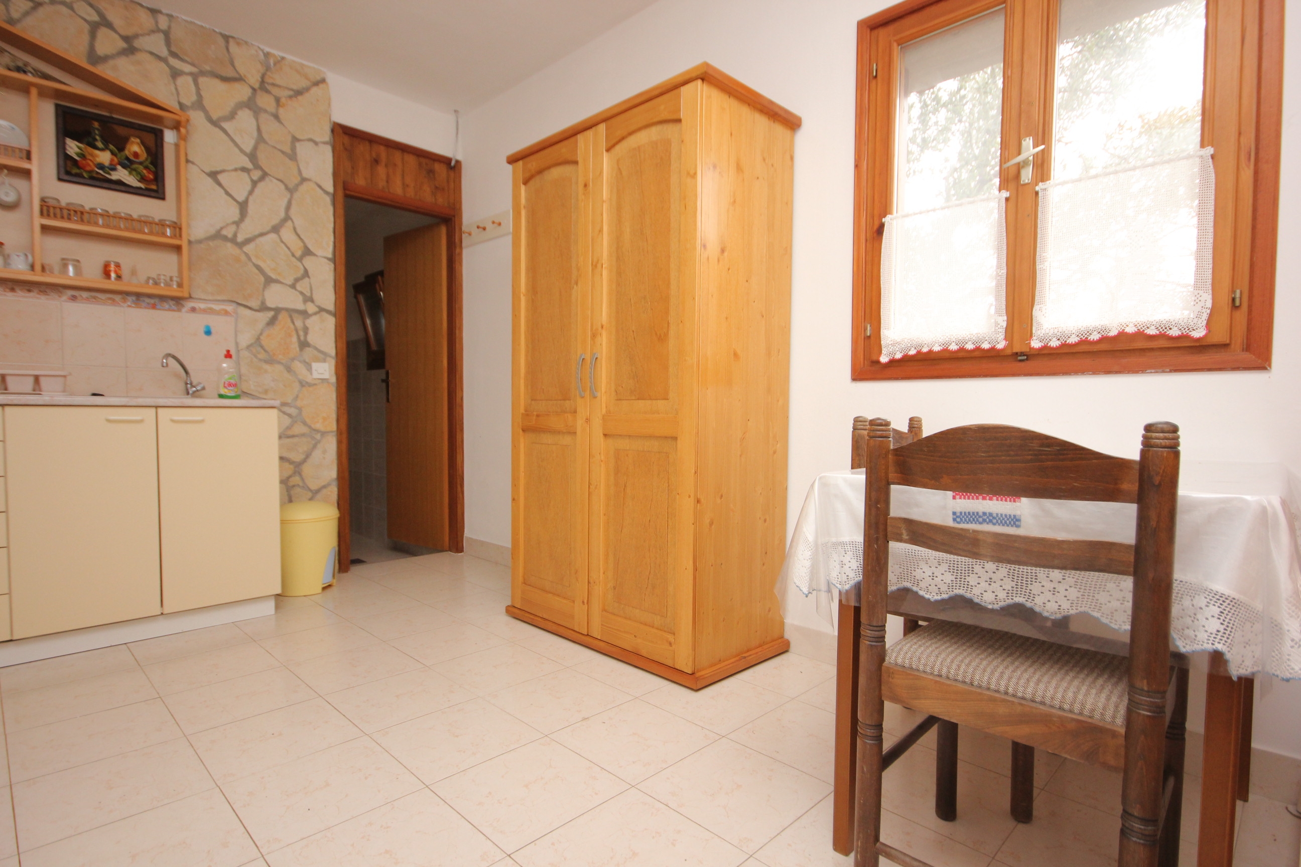 House 8484 in the town of Vitane, Pašman - North Dalmatia is located 30 m from the sea. The nearest beach to this accommodation is a concrete slabs beach. The house is categorized as "Facilities near a beach". You will be the houses only guests during your holiday, as there are no other rooms or apartments. The hosts will not be in the house for the duration of your holiday. This type of accommodation is "Robinson Crusoe style" which means it is situated at a location that is not easily accessible. The infrastructure of these locations is usually very basic, but in return, peace, nature and clean sea are guaranteed. Water must be used rationally andnecessities must be bought prior to arrival since the nearest store is usually far away. Water: From reservoir (rainwater, tank), Not safe to drink. Water - Heating: None, Water tank heated directly by the sun (an outdoor shower). Power Supply: Solar panels (220V). Other: Mobile grocery store, Gas stove. Access: By car, Distance to which you can approach with a vehicle: 500m, Macadam road: 3500m. The house owner is under no obligation to accept additional persons and pets that were not stated in the reservation request and it is necessary to report them in advance.AMENITIES Infield (Well-kept), Courtyard (100m2), Boat mooring (Distance from the house: 30 m, Type of boat berth: shore), Sunshade, Sunchairs LOCATION AND ACCESS The facility is not located near the road There is no road between the property and the beach The property is located by the beach Car access possible: No, Distance to which you can approach with a vehicle: 500 m, Macadam road: 3.5 km The facility is situated in quiet surroundings The property is surrounded by greenery DISTANCES Sea: 30 m Beach: 30 m Center: 7.5 km Shop: 4.5 km Urgent medical care: 37 km Pharmacy: 4.5 km Exchange office: 4.5 km ATMBank machine: 4.5 km Tourist info: 4.5 km Airport: 35 km