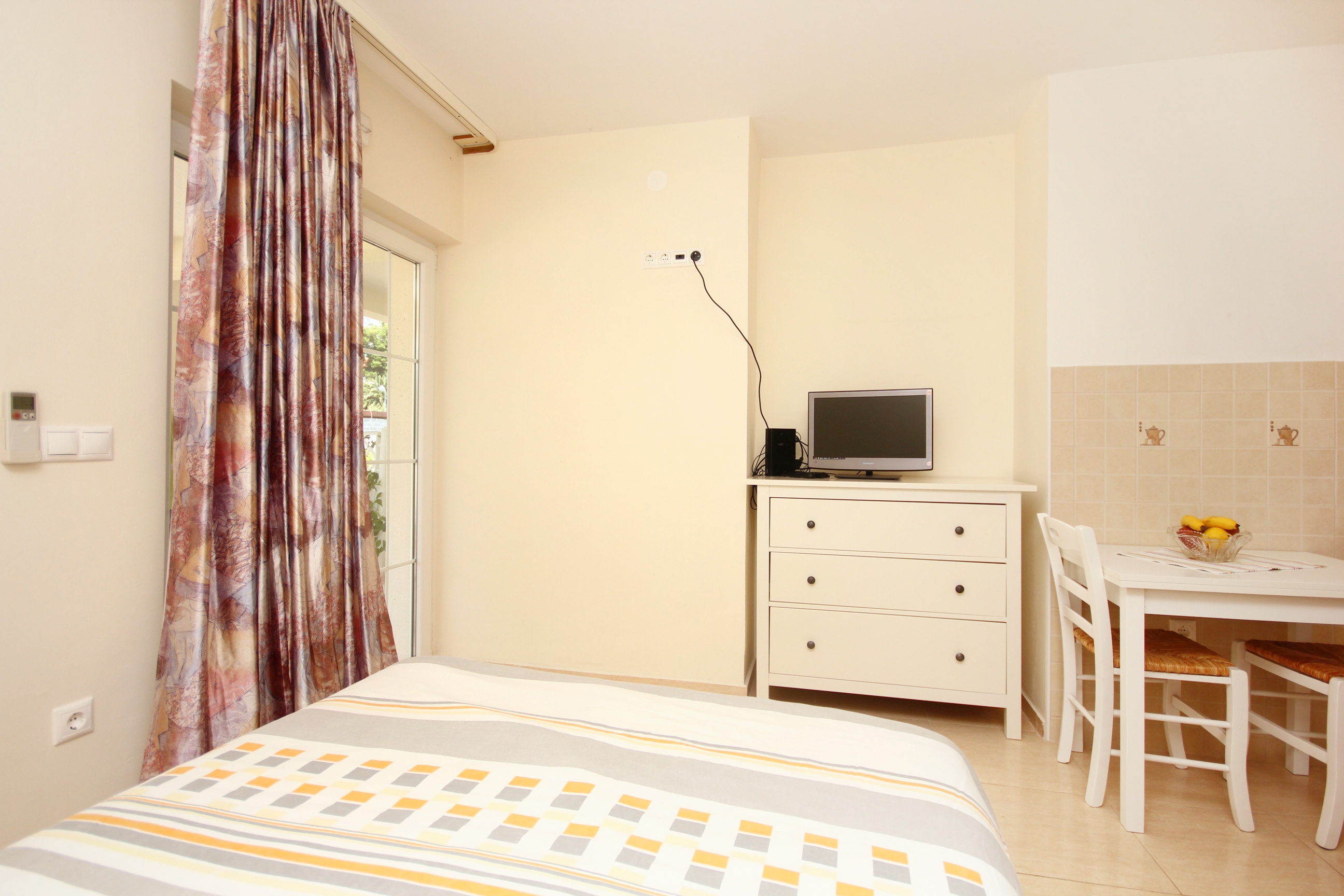 Studio flat can accommodate 2 guests. Beds are situated in 1 sleeping rooms, within 15m2. Guests can use a private terrace to enjoy the warm summer evenings. INCLUDED IN THE PRICE: tourist tax, final cleaning, air-conditioning, parking, internet, baby cot, iron, ironing board, hairdryer. OBLIGATORY ADDITIONAL COSTS: short stay fee (surcharge depending on a number of booked nights: 30% - 1, 20% - 2, 10% - 3). The availability of additional services for your chosen dates of stay, as well as their prices (if none are listed) must be checked ahead of time. Any additional services not shown in the price calculation are payable directly to the property owner and only if used by the visitor. Discounts to the base price: free day 14=13 (for reservations of 14 or more days you get one free day for the stay until 31122026).