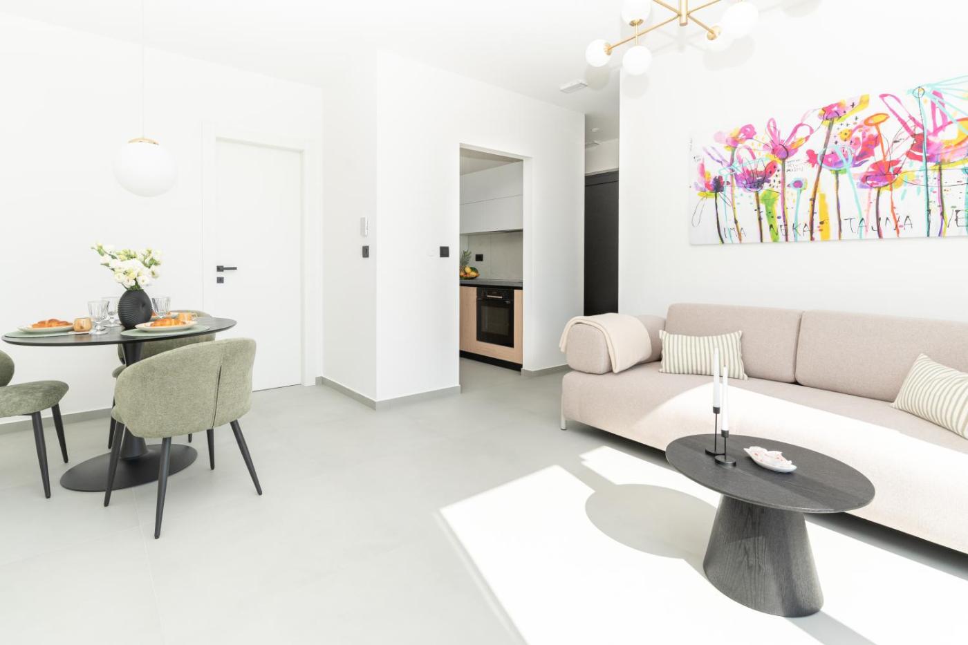 One-Bedroom Apartment. This apartment is comprised of 1 living room, 1 separate bedroom and 1 bathroom with a shower and free toiletries. The well-equipped kitchen features a stovetop, a refrigerator, a dishwasher and kitchenware. Featuring a terrace with sea views, this apartment also offers air conditioning and a flat-screen TV with satellite channels. The unit offers 2 beds.