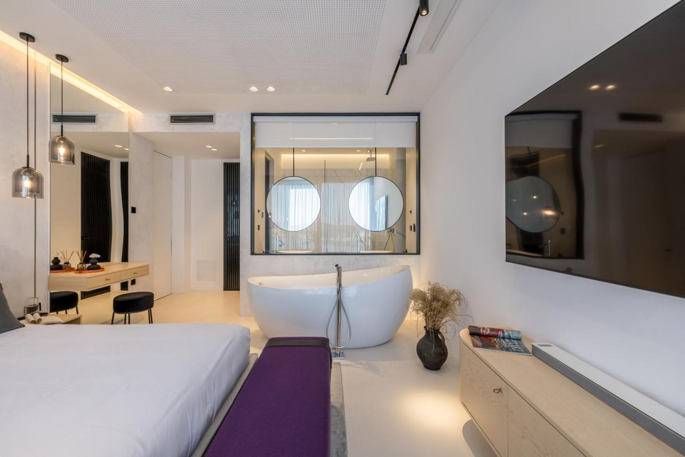 Three-Bedroom Villa. This villa provides a pool with a view. This spacious villa is comprised of 1 living room, 3 separate bedrooms and 4 bathrooms with a walk-in shower and free toiletries. Guests will find a refrigerator, a dishwasher and an oven in the kitchen. The villa also has a barbecue. The air-conditioned villa offers a flat-screen TV with streaming services, a washing machine, a private entrance, a tea and coffee maker as well as sea views. The unit offers 3 beds.