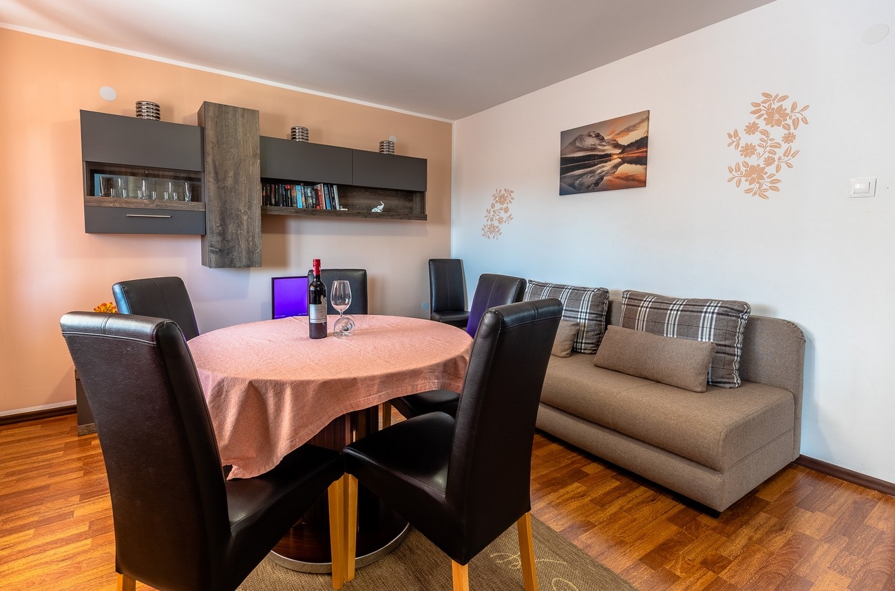 Apartment can accommodate 4 guests. Beds are situated in 2 sleeping rooms, within 64m2. Guests can use a private terrace to enjoy the warm summer evenings. For full enjoyment and relaxation there is a private barbecue for this accommodation guests only. Notthe rooms of the booked accommodation unit are connectedone whole. INCLUDED IN THE PRICE: tourist tax, final cleaning, air-conditioning, central heating, parking, internet, laundry, baby cot, iron, ironing board, hairdryer, portable barbecue. The availability of additional services for your chosen dates of stay, as well as their prices (if none are listed) must be checked ahead of time. Any additional services not shown in the price calculation are payable directly to the property owner and only if used by the visitor. Discounts to the base price: free day 14=13 (for reservations of 14 or more days you get one free day for the stay until 31122026).