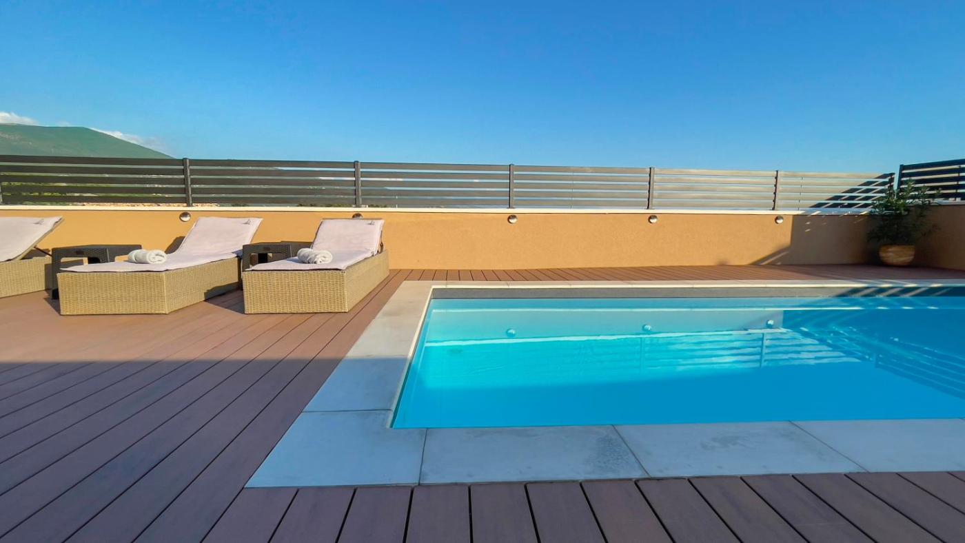 Two-Bedroom Apartment with Terrace and Sea View. This apartments special feature is the pool with a view. Featuring a private entrance, this air-conditioned apartment consists of 1 living room, 2 separate bedrooms and 1 bathroom with a shower and a hairdryer. Guests will find a stovetop, a refrigerator, a dishwasher and kitchenware in the kitchen. The apartment also offers a barbecue. The spacious apartment provides a washing machine, soundproof walls, a tea and coffee maker, a flat-screen TV with streaming services, as well as sea views. The unit offers 3 beds. ;