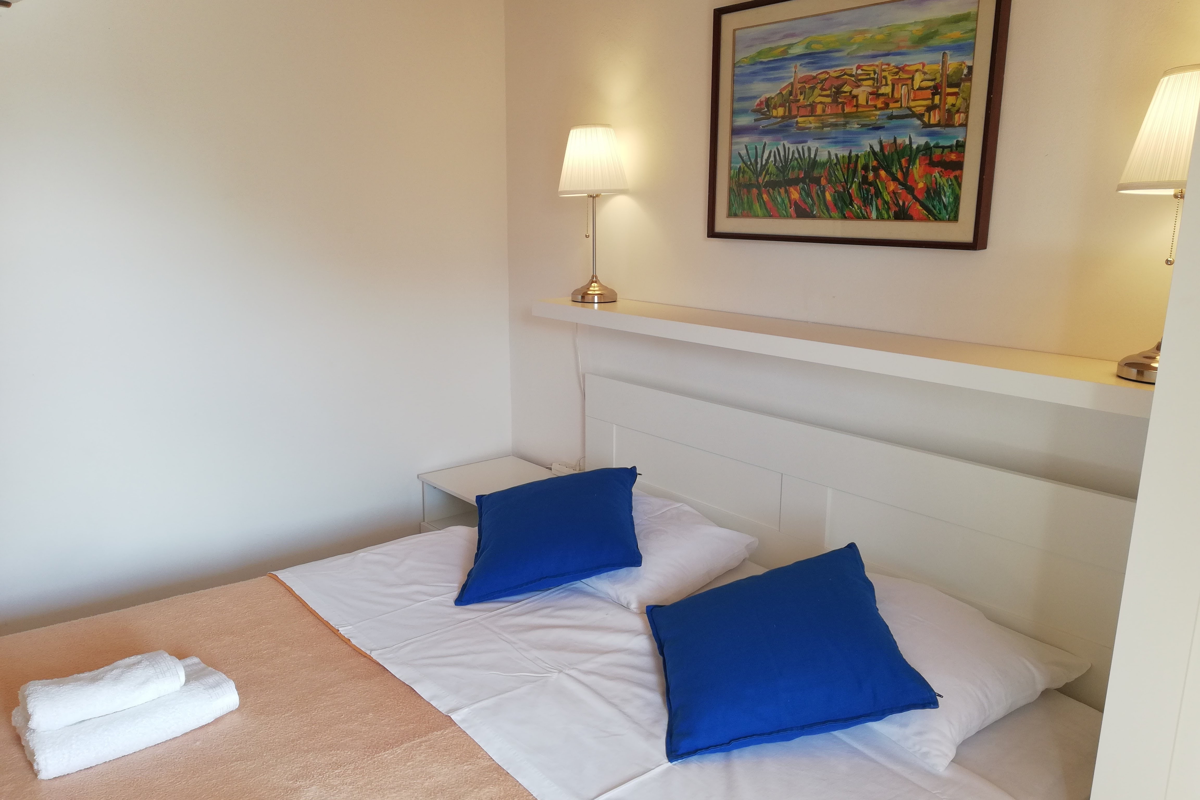 Apartment can accommodate 5 guests. Beds are situated in 2 sleeping rooms, but also in the living room, within 61m2. Guests can use a private terrace to enjoy the warm summer evenings. The apartment offers the sea view. Food can be prepared using barbecue which is shared with other guests too. This accommodation unit welcomes pets at an additional charge. INCLUDED IN THE PRICE: tourist tax, final cleaning, air-conditioning, parking, internet, laundry, baby cot, iron, ironing board, hairdryer, sunshade, sunchairs. OPTIONAL ADDITIONAL COSTS: breakfast (€15.00, a 50% discount for children aged 4 to 12 years, Children up to age 4 free of charge), boat (€150.00 per night), boat mooring (€15.00 per night), pets (€15.00 per night). The availability of additional services for your chosen dates of stay, as well as their prices (if none are listed) must be checked ahead of time. Any additional services not shown in the price calculation are payable directly to the property owner and only if used by the visitor.