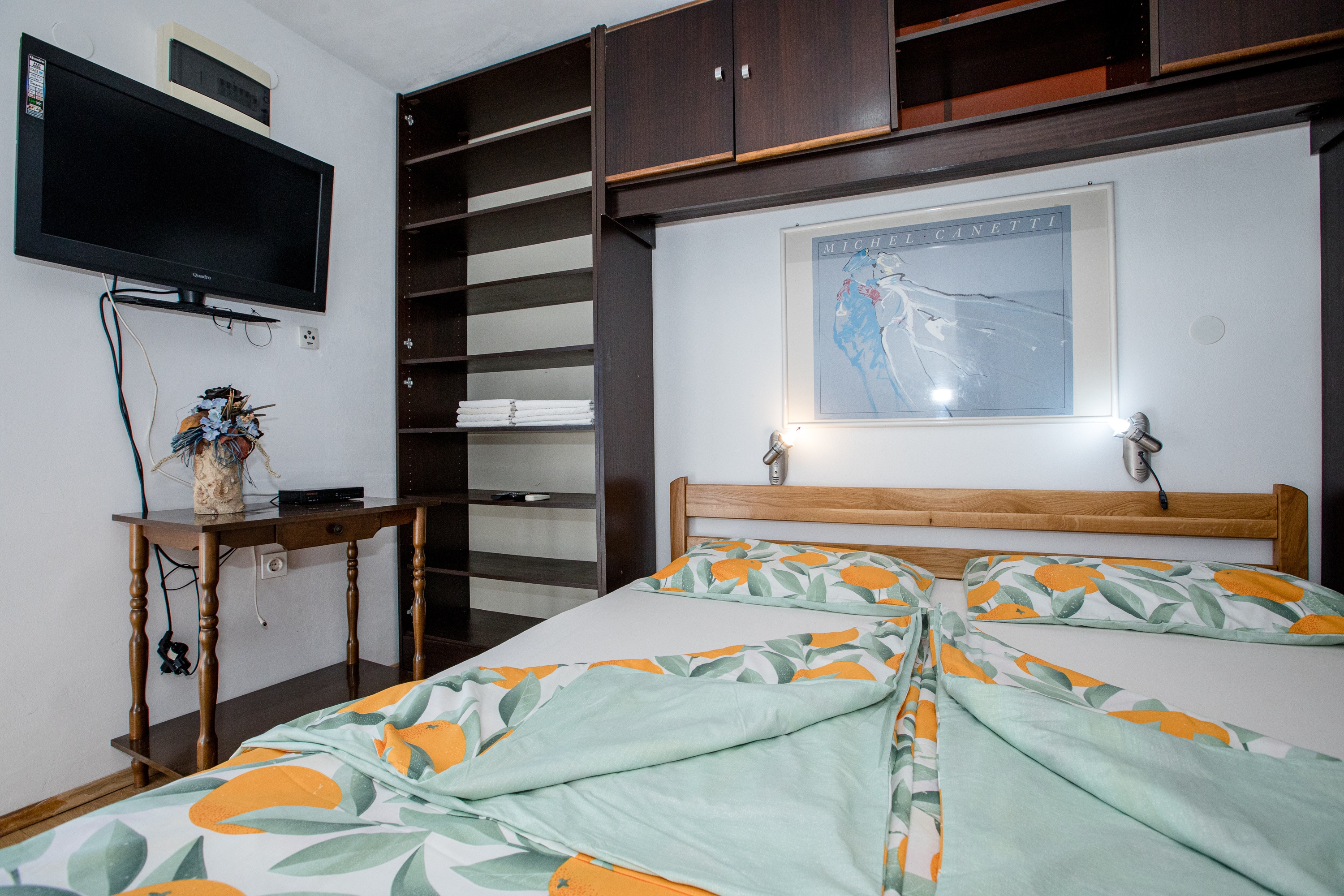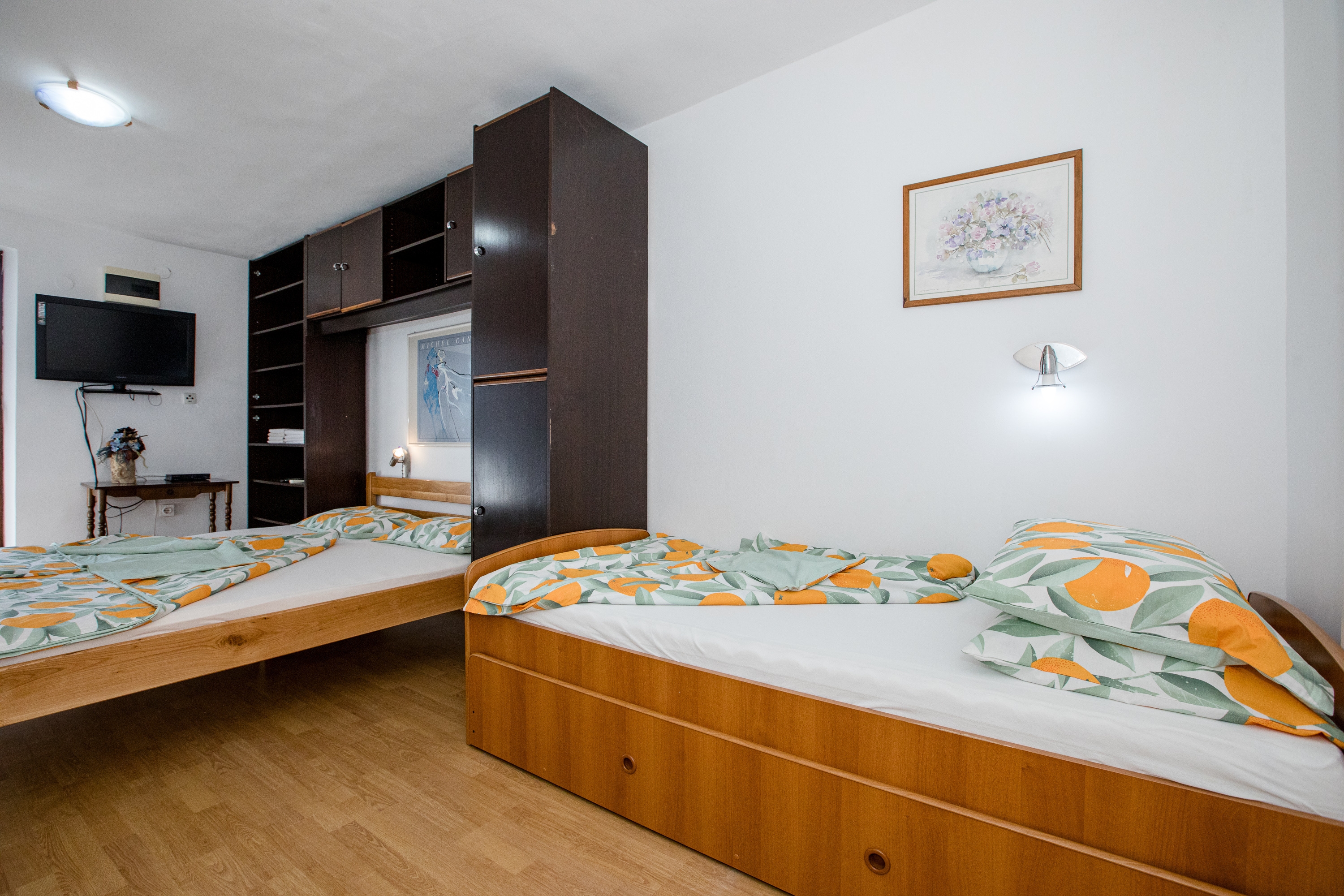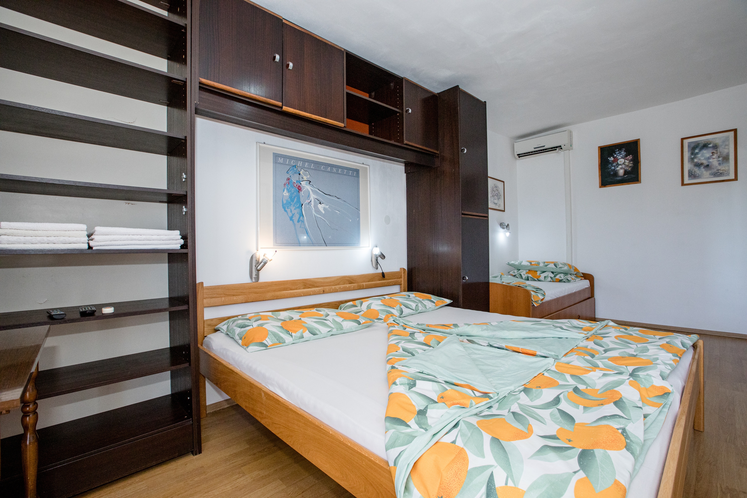 Apartment can accommodate 4 guests. Beds are situated in 1 sleeping rooms, within 28m2. The apartment offers the sea view. Food can be prepared using barbecue which is shared with other guests too. This accommodation unit welcomes pets at an additional charge. Reserved accommodation unit has a shared balcony. INCLUDED IN THE PRICE: tourist tax, final cleaning, air-conditioning, parking, internet. OPTIONAL ADDITIONAL COSTS: pets (€5.00 per night). The availability of additional services for your chosen dates of stay, as well as their prices (if none are listed) must be checked ahead of time. Any additional services not shown in the price calculation are payable directly to the property owner and only if used by the visitor. Discounts to the base price: free day 14=13 (for reservations of 14 or more days you get one free day for the stay until 31122026).