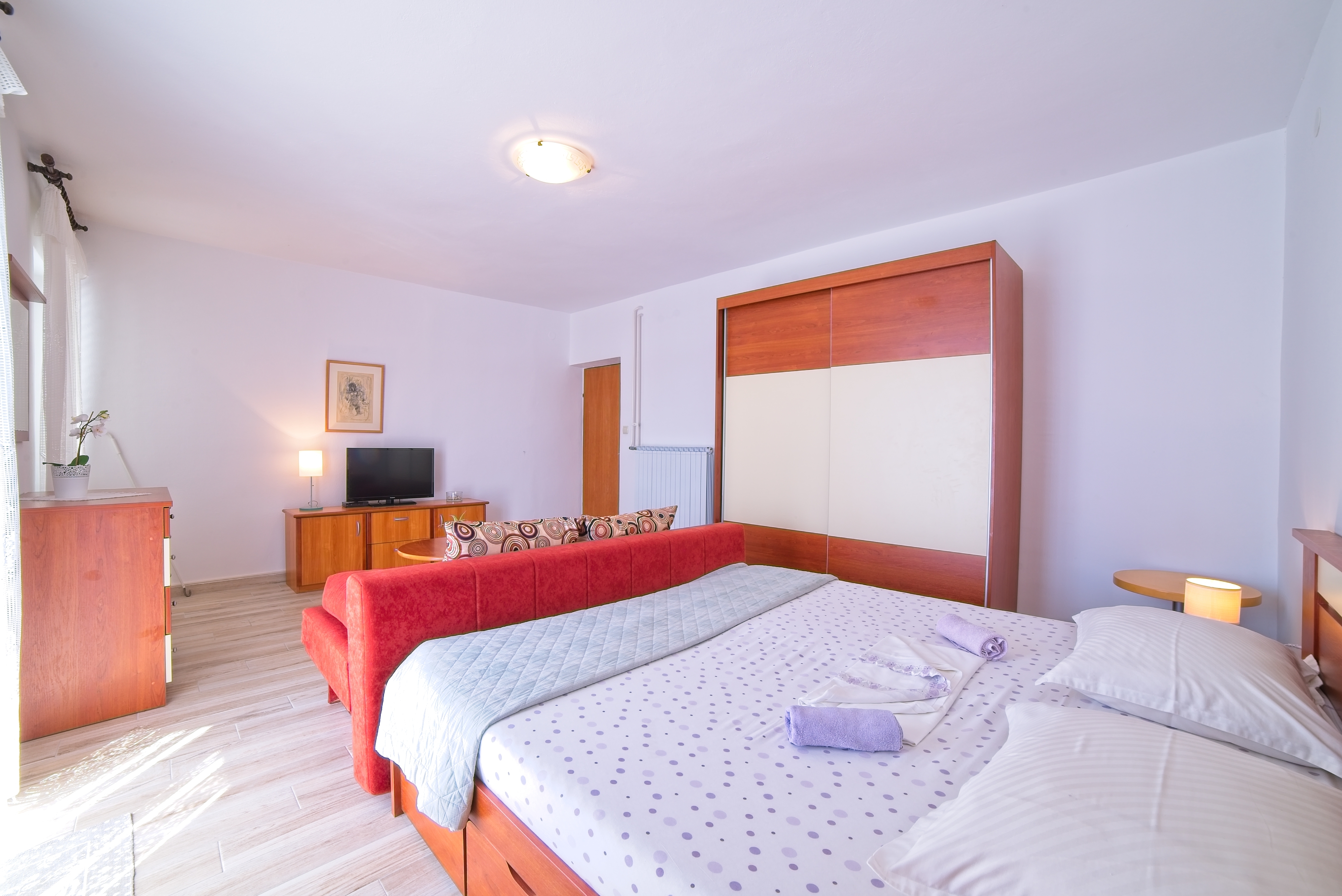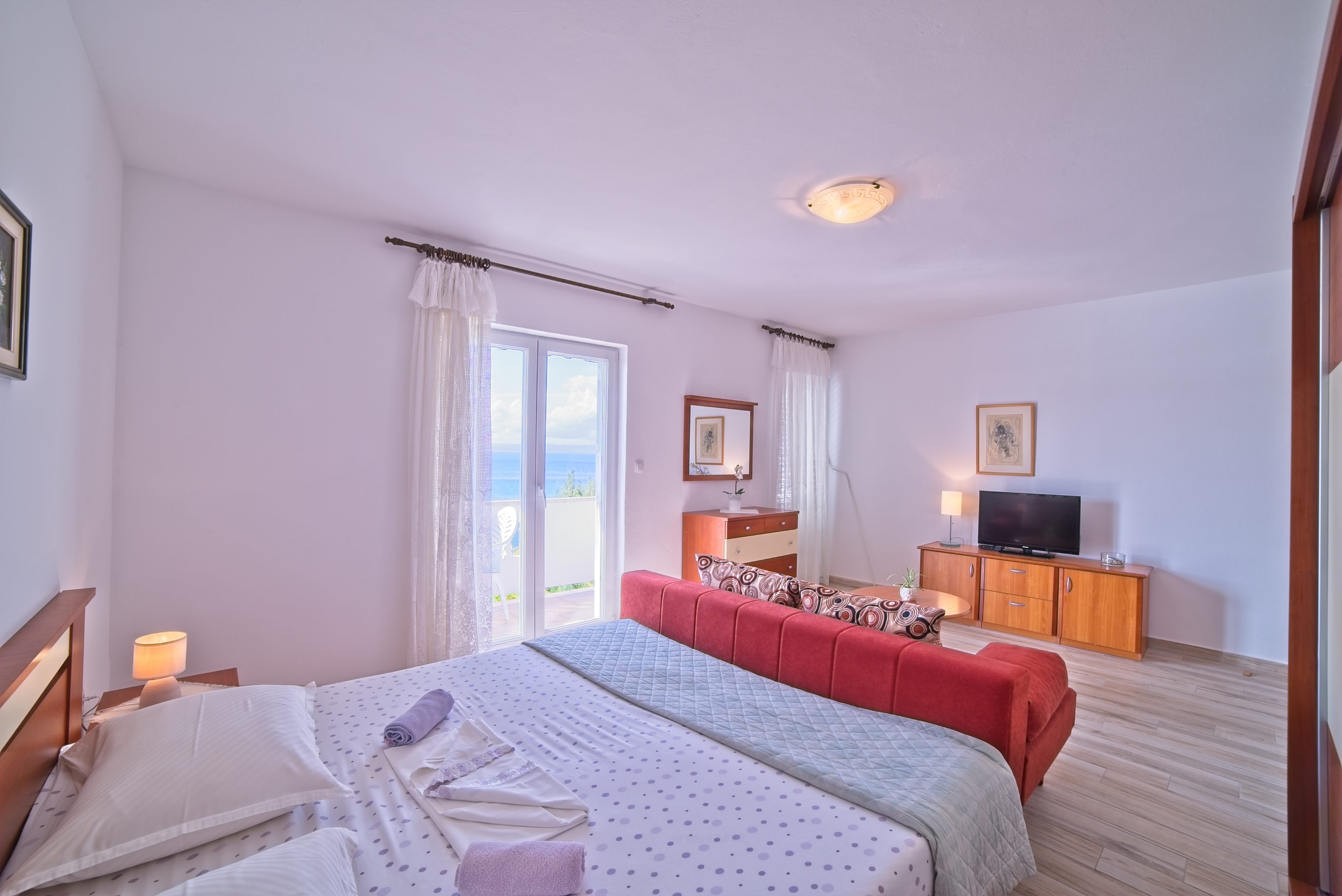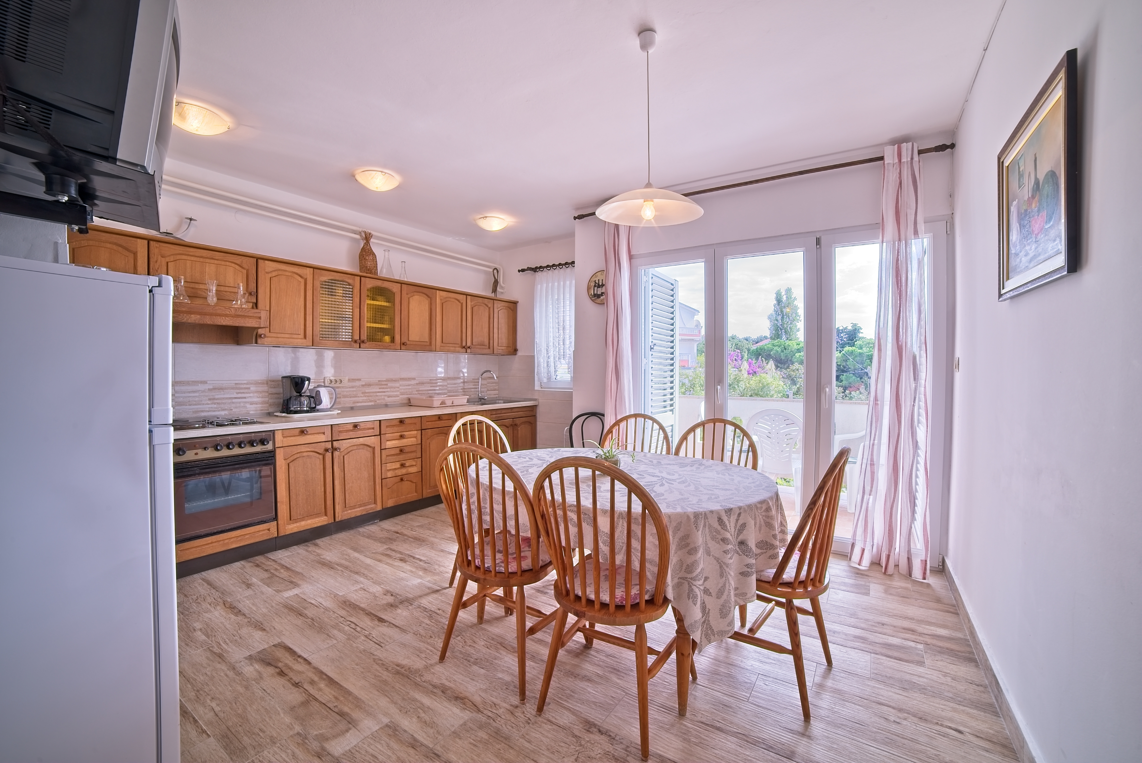 Apartment can accommodate 5 guests. Beds are situated in 2 sleeping rooms, within 46m2. Guests can use a private balcony to enjoy the warm summer evenings. The apartment offers the sea view. Food can be prepared using barbecue which is shared with other guests too. INCLUDED IN THE PRICE: tourist tax, final cleaning, air-conditioning, parking, internet, boat mooring, sunchairs. OBLIGATORY ADDITIONAL COSTS: short stay fee (surcharge depending on a number of booked nights: 30% - 1, 20% - 2, 10% - 3). OPTIONAL ADDITIONAL COSTS: laundry (€5.00 washing). The availability of additional services for your chosen dates of stay, as well as their prices (if none are listed) must be checked ahead of time. Any additional services not shown in the price calculation are payable directly to the property owner and only if used by the visitor. Discounts to the base price: free day 14=13 (for reservations of 14 or more days you get one free day for the stay until 31122026).