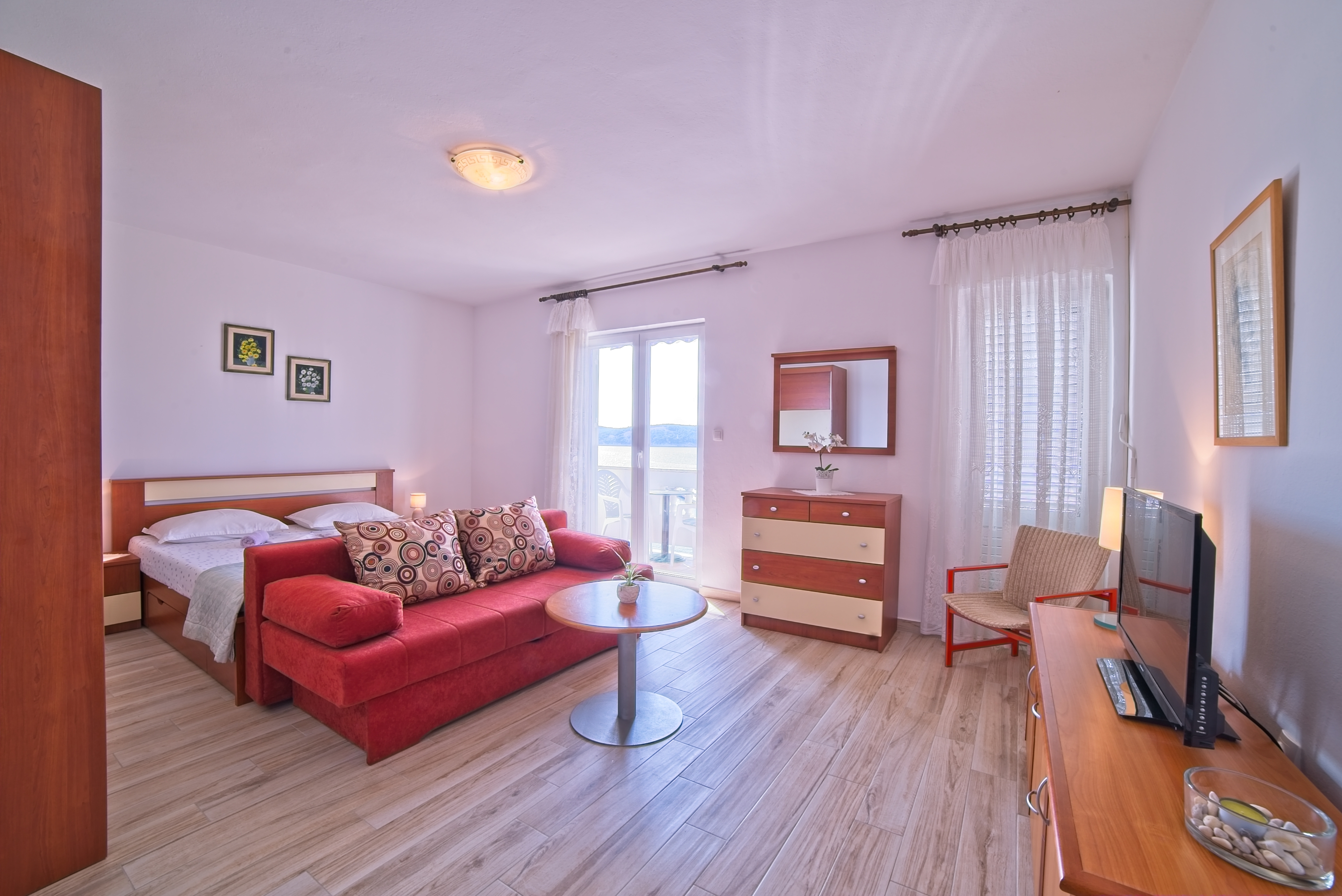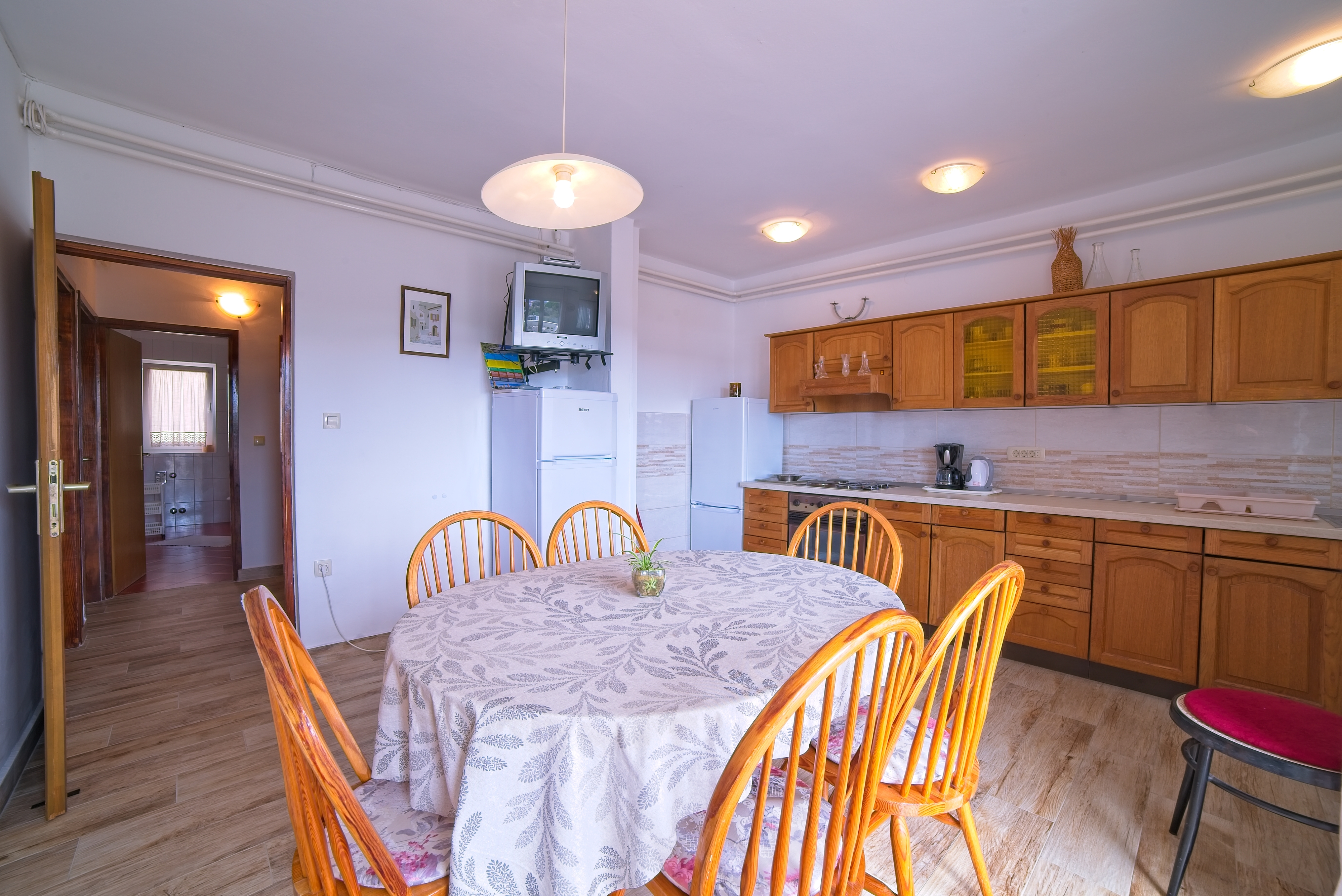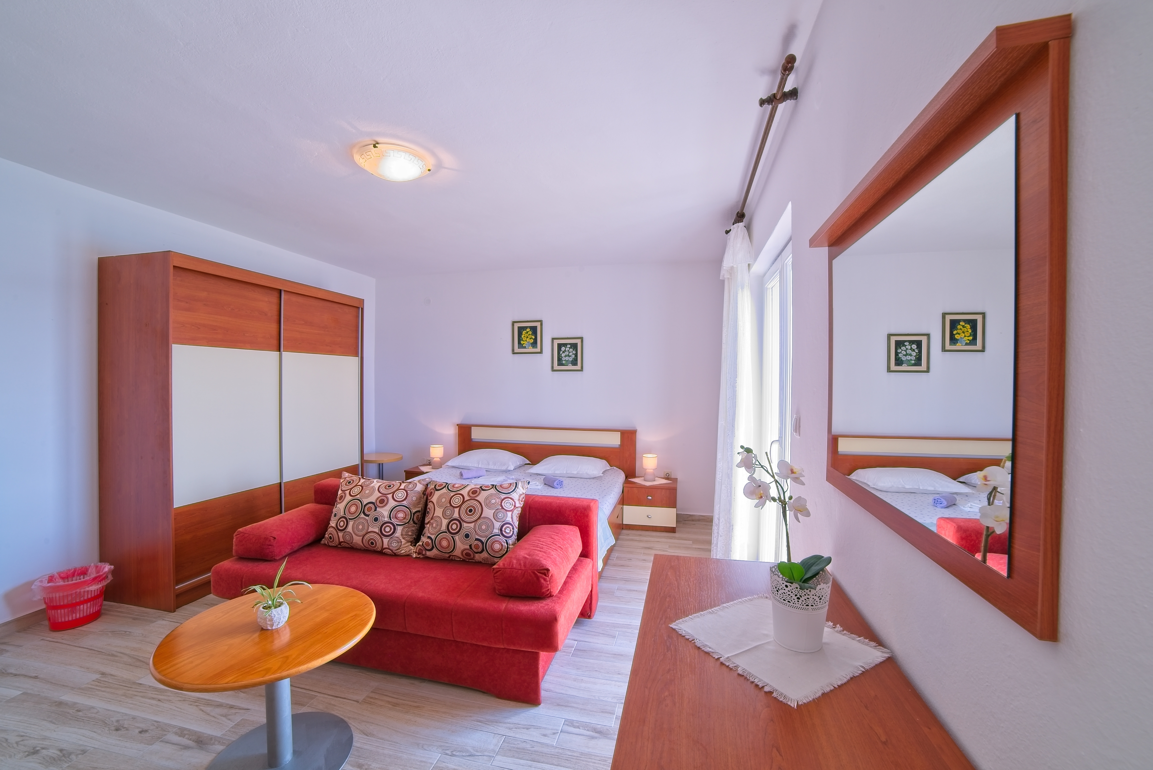 Apartment can accommodate 5 guests. Beds are situated in 2 sleeping rooms, within 46m2. Guests can use a private balcony to enjoy the warm summer evenings. The apartment offers the sea view. Food can be prepared using barbecue which is shared with other guests too. INCLUDED IN THE PRICE: tourist tax, final cleaning, air-conditioning, parking, internet, boat mooring, sunchairs. OBLIGATORY ADDITIONAL COSTS: short stay fee (surcharge depending on a number of booked nights: 30% - 1, 20% - 2, 10% - 3). OPTIONAL ADDITIONAL COSTS: laundry (€5.00 washing). The availability of additional services for your chosen dates of stay, as well as their prices (if none are listed) must be checked ahead of time. Any additional services not shown in the price calculation are payable directly to the property owner and only if used by the visitor. Discounts to the base price: free day 14=13 (for reservations of 14 or more days you get one free day for the stay until 31122026).