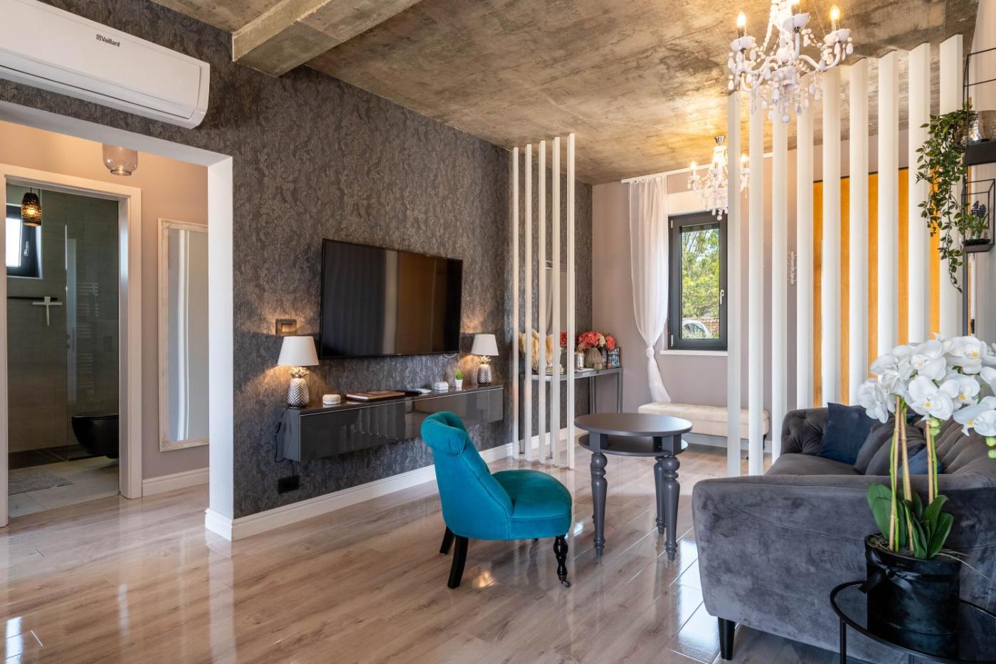 Set in Radmani, 27 km from Aquapark Istralandia and 35 km from Cathedral St. Eufemia Rovinj, NoaMio Homestay with Heated Swimming Pool & Sauna offers air conditioning. This apartment has a private pool, a garden, barbecue facilities, free WiFi and free private parking. The property is non-smoking and is situated 8.3 km from The Euphrasian Basilica.
